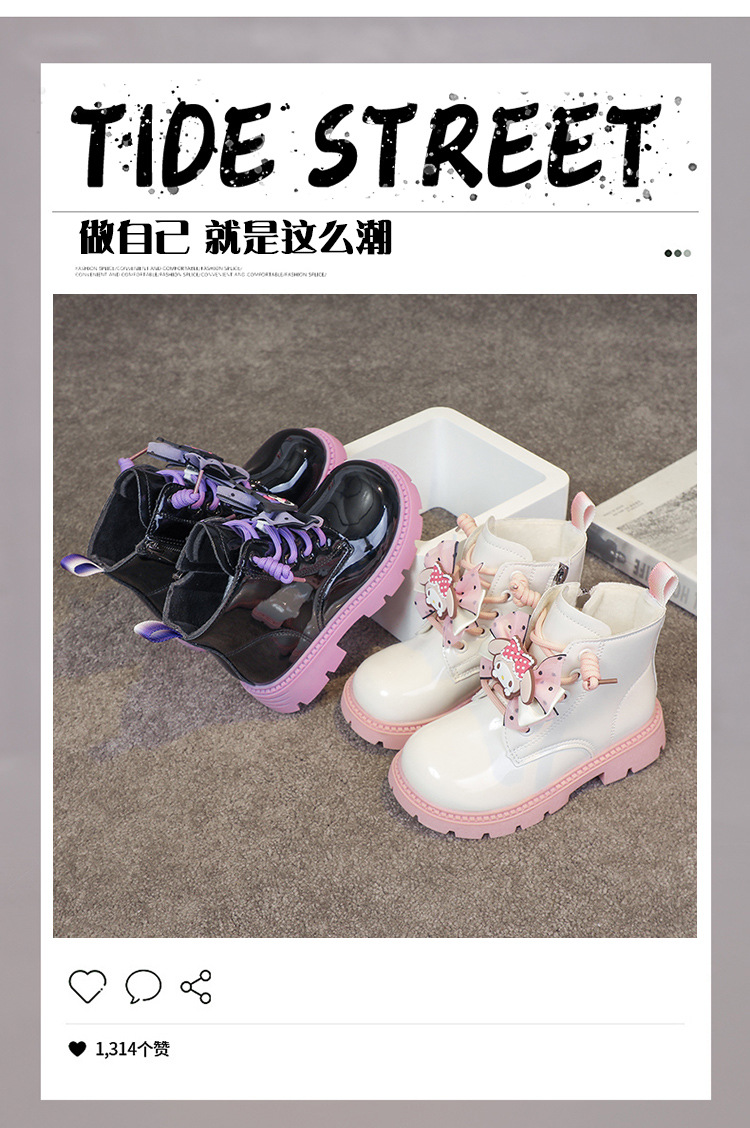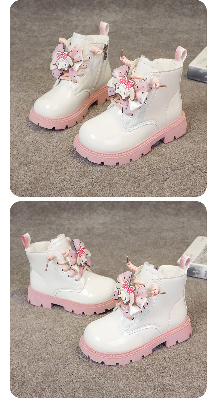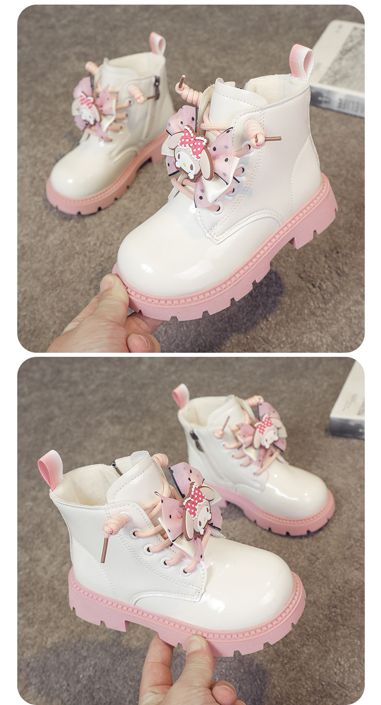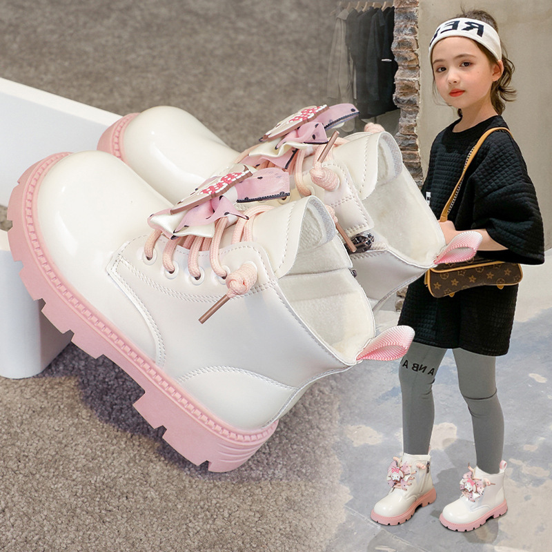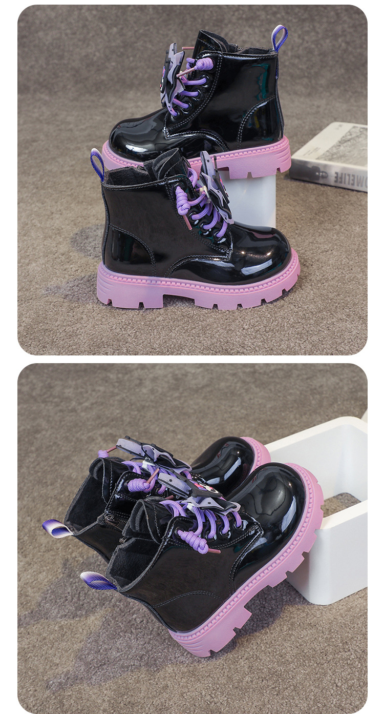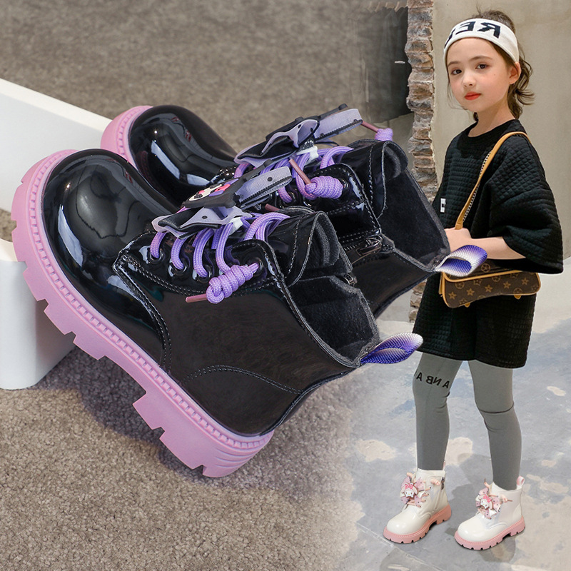 여아용 마틴 부츠 한국 스타일 어린 소녀 가죽 부츠 미끄럼 방지 플러스 벨벳 패션 숏부츠 2024 가을 겨울 신상 패션 다용도스토어 가기