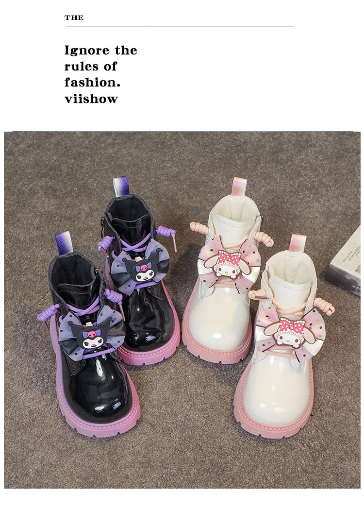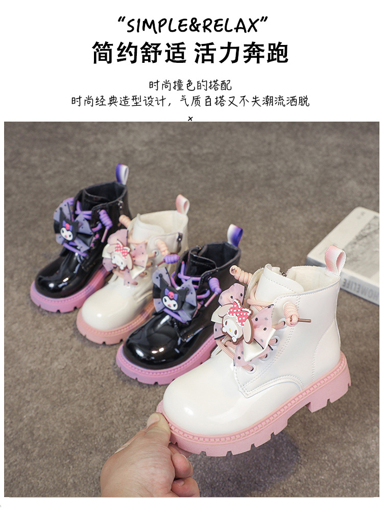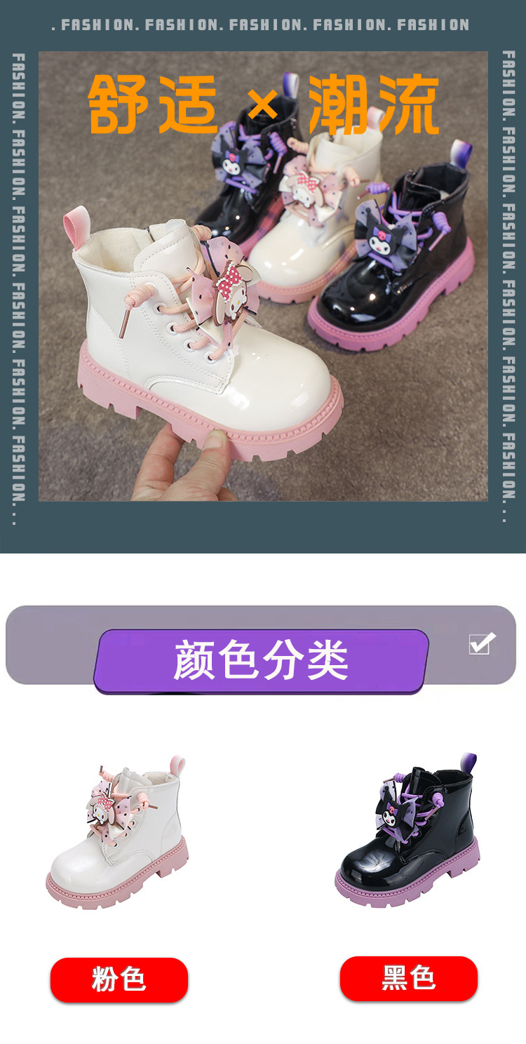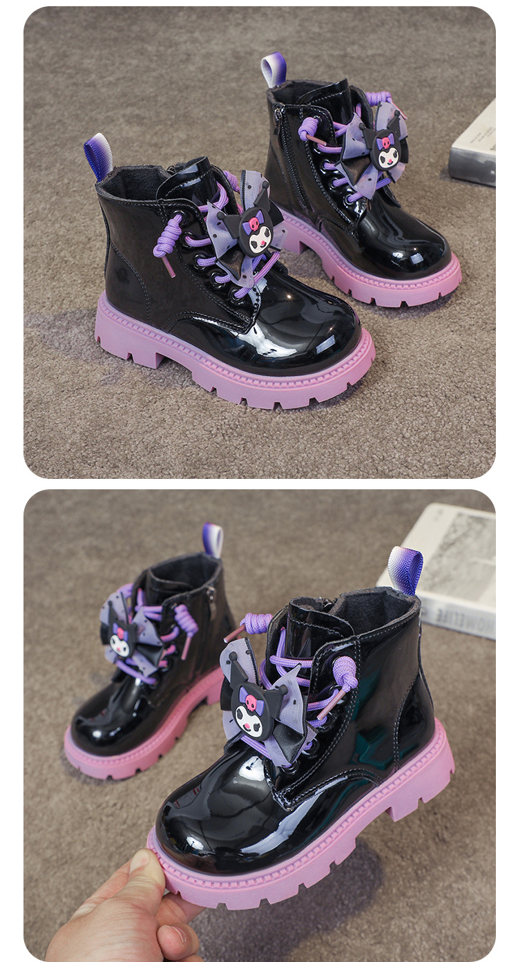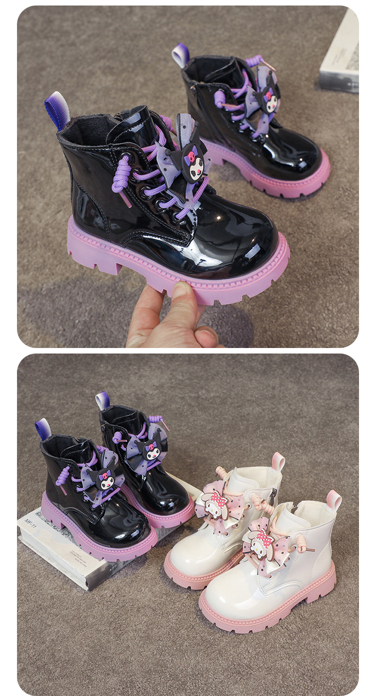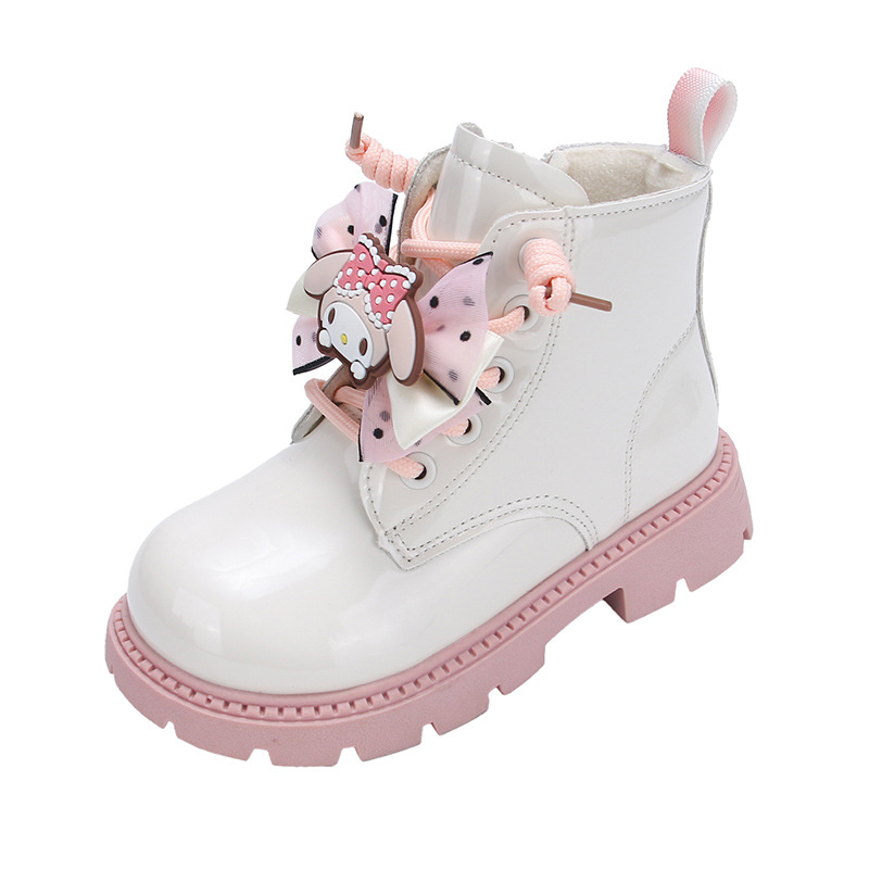 여아용 마틴 부츠 한국 스타일 어린 소녀 가죽 부츠 미끄럼 방지 플러스 벨벳 패션 숏부츠 2024 가을 겨울 신상 패션 다용도스토어 가기