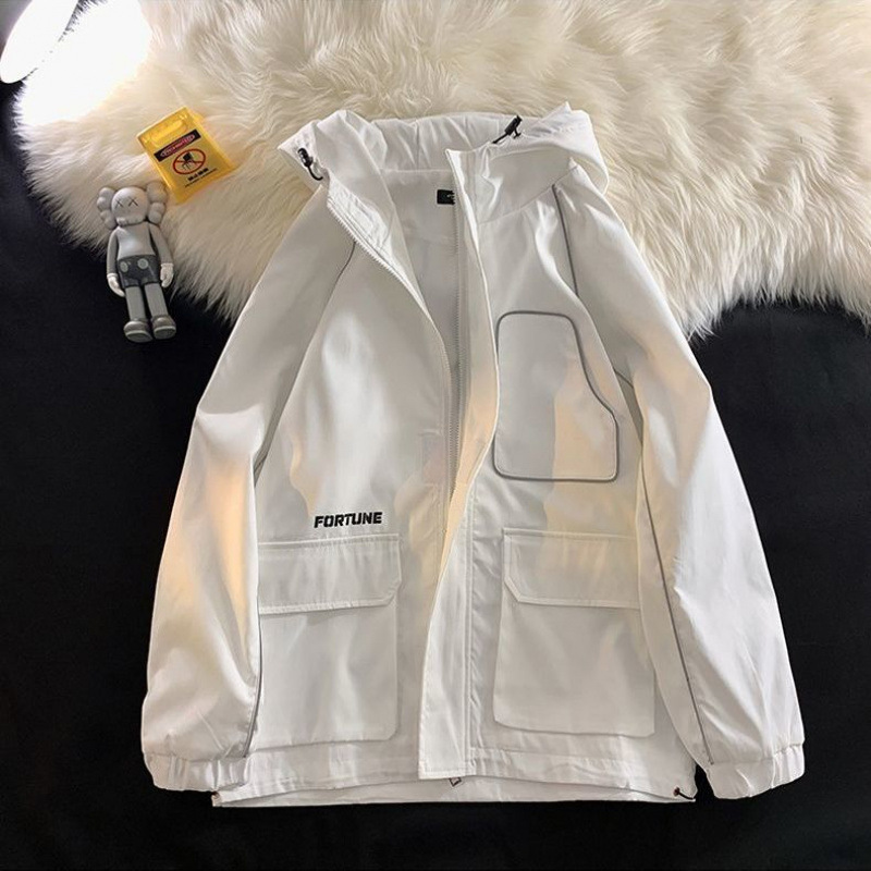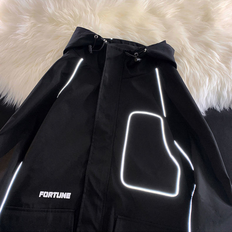 반사 스트립 재킷 여성의 가을 느슨한 작업복 커플의 캐주얼 재킷 코트 후드 트렌디 탑스토어 가기