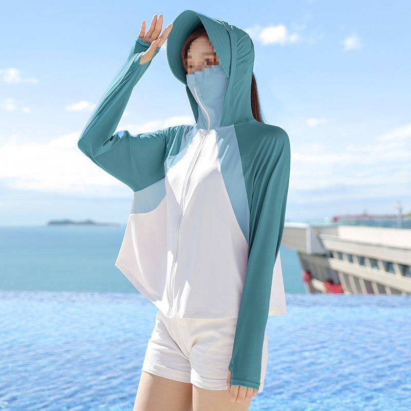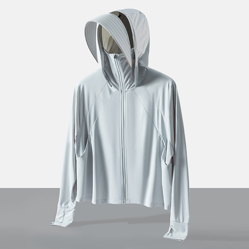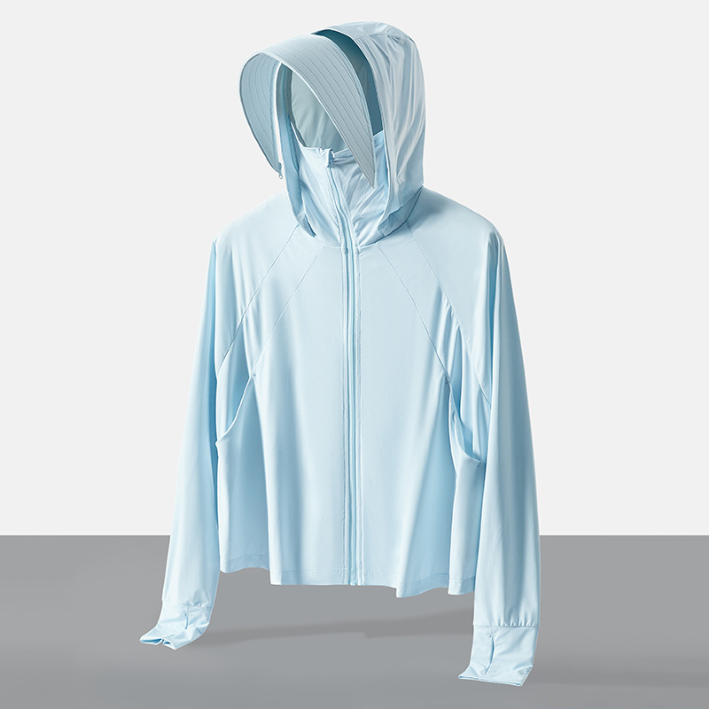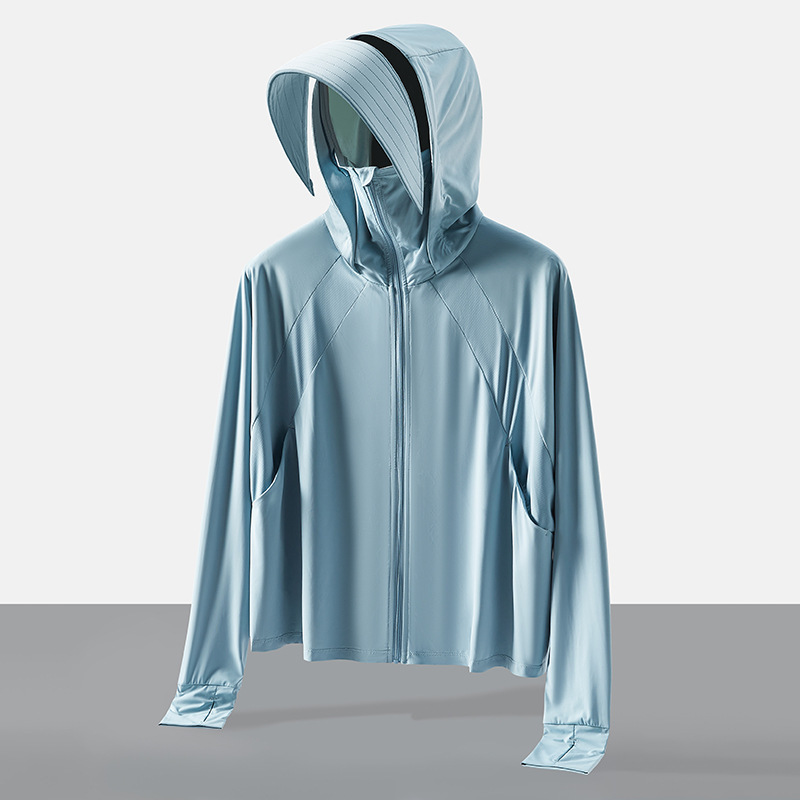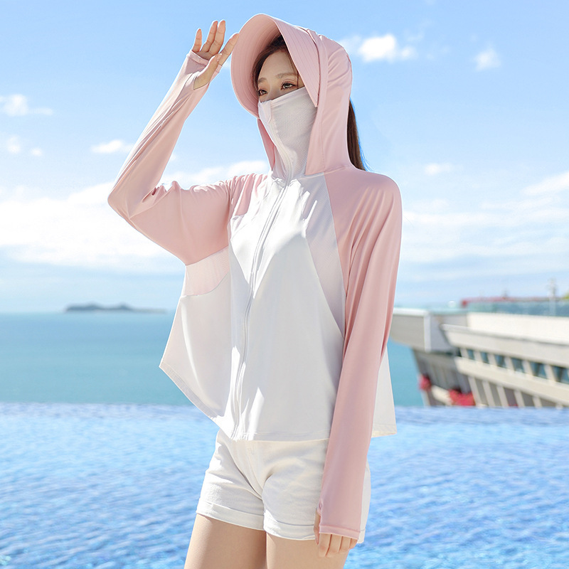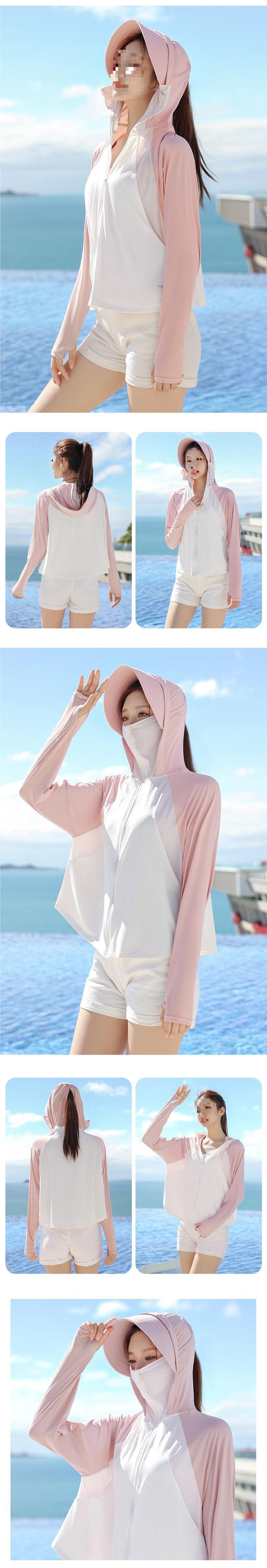 BANANAUNDER 같은 스타일의 목도리 선 스크린 의류 여성의 여름 안티 자외선 큰 모자 브림 차양 외투 통기성 코트 아이스 실크 의류 스킨 의류