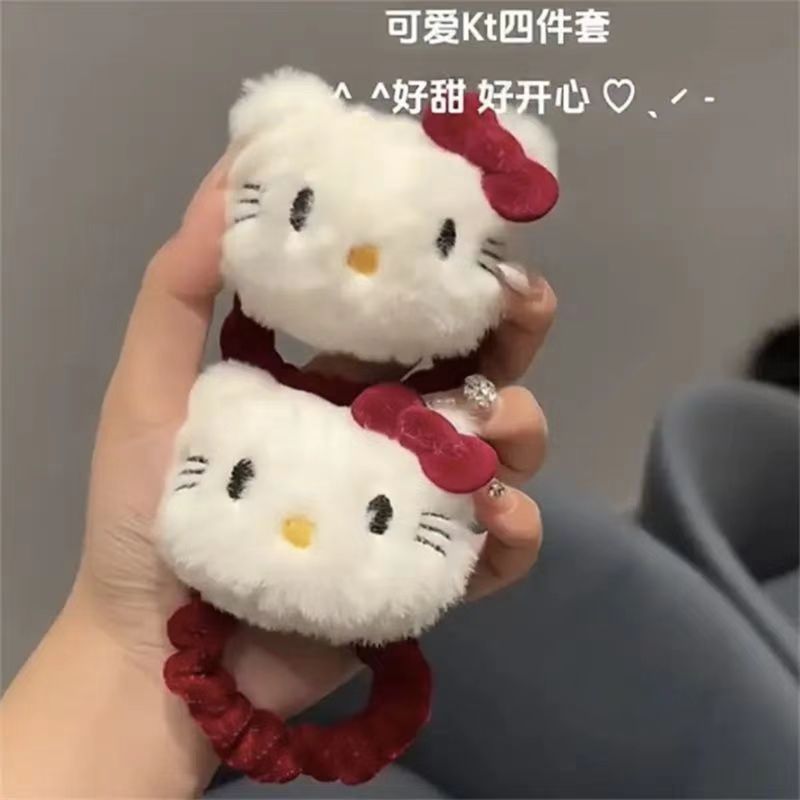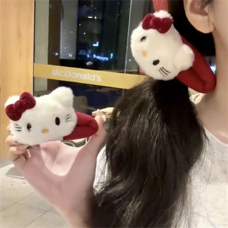 귀여운 만화 KT 고양이 헤어핀 여성의 2024 새로운 봉제 헤어핀 사이드 뱅 털 BB 클립 헤드웨어스토어 가기