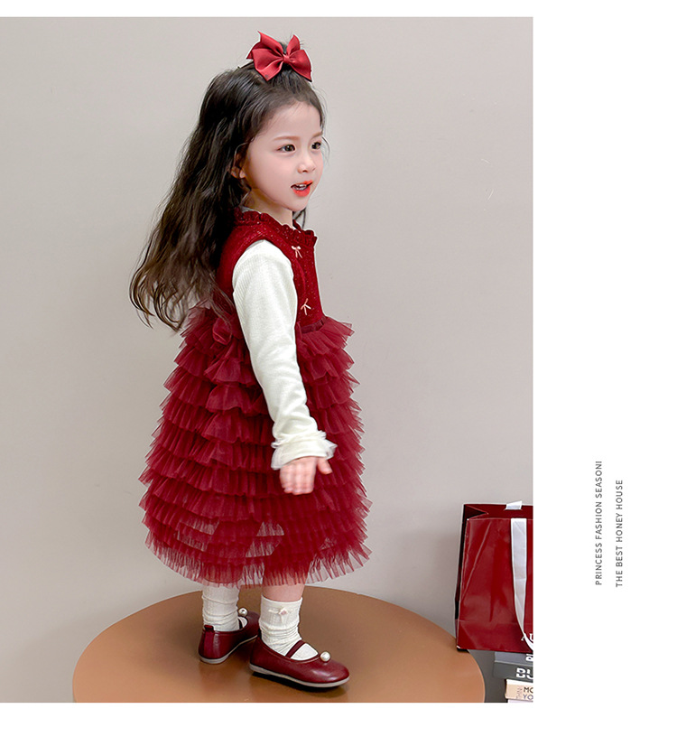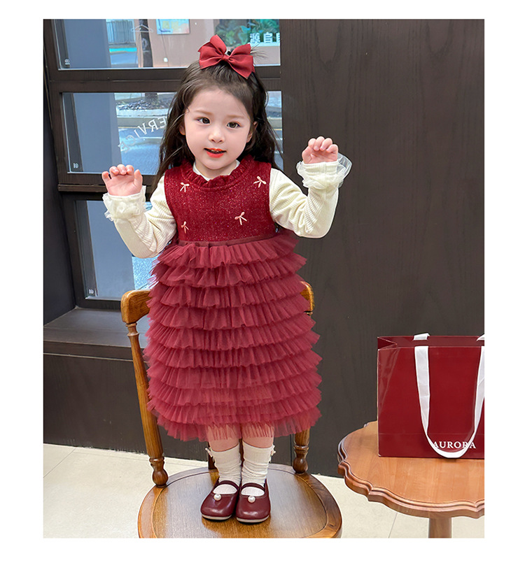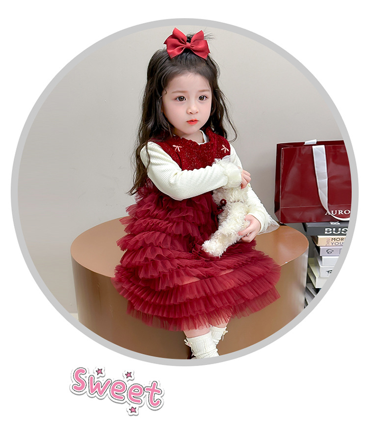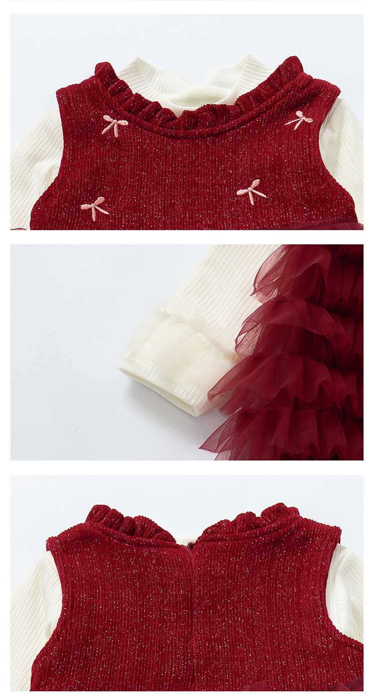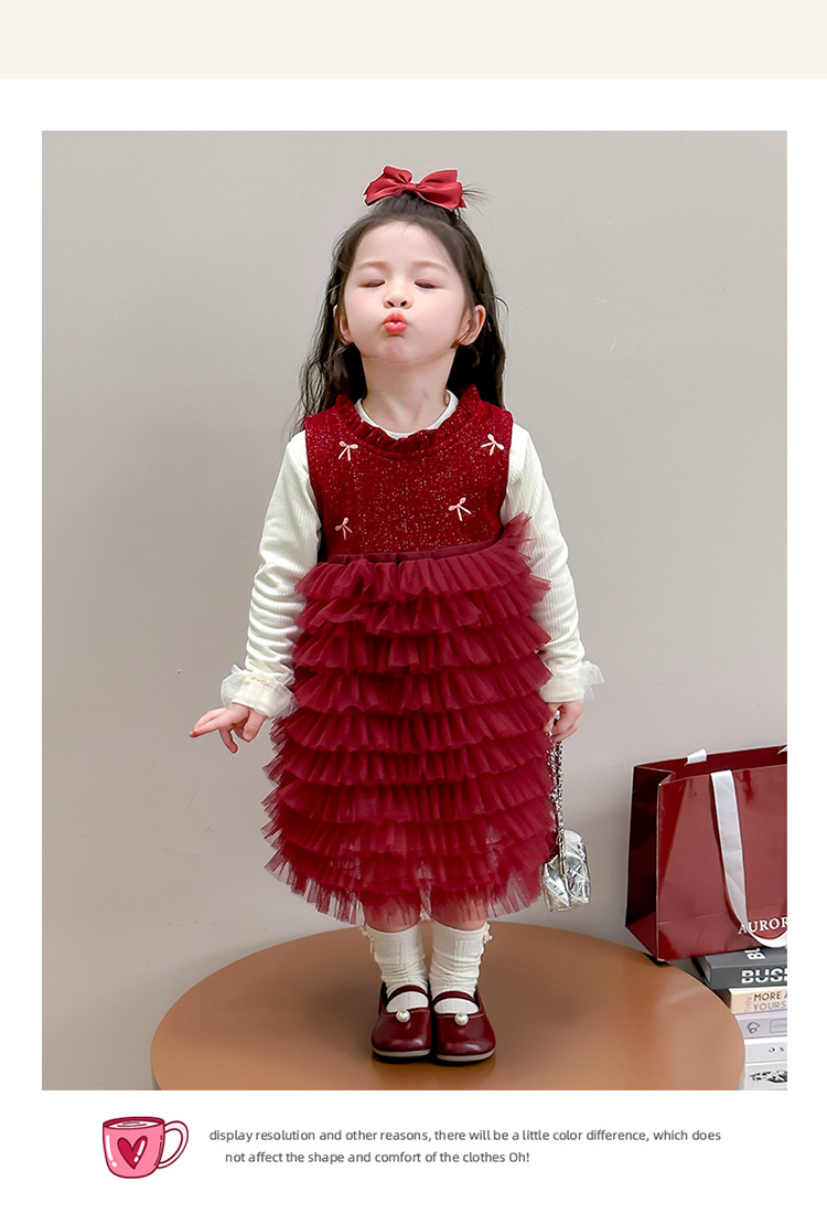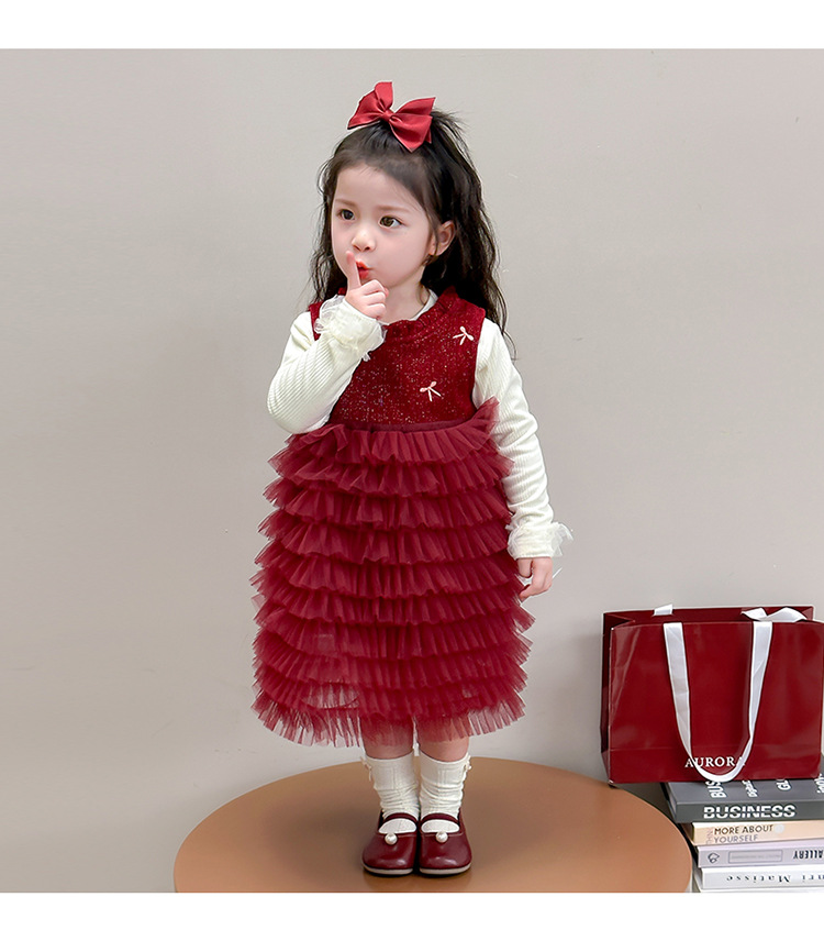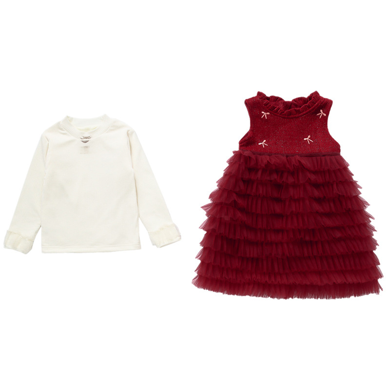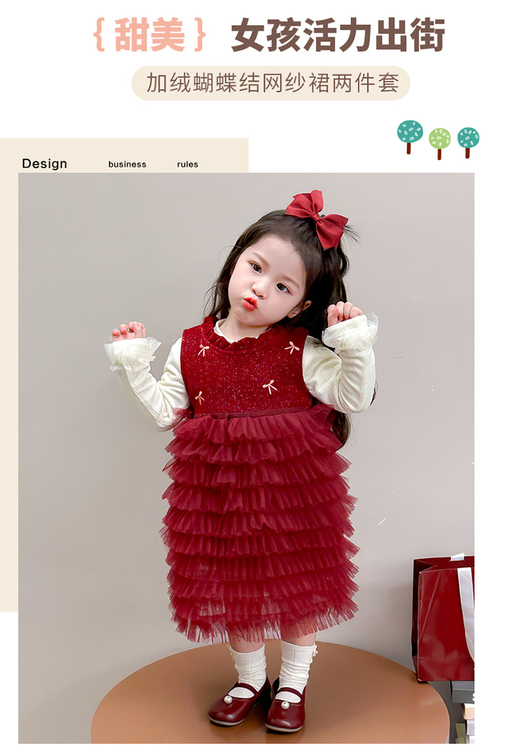 소녀의 겨울 옷 세트 아기의 겨울 기모 두꺼운 베일 스커트 투피스 세트 어린이 겨울 서양식 유행 년 원피스