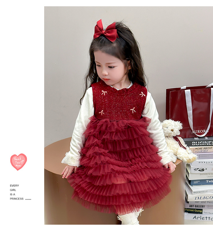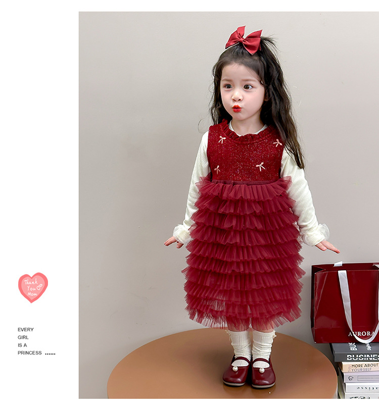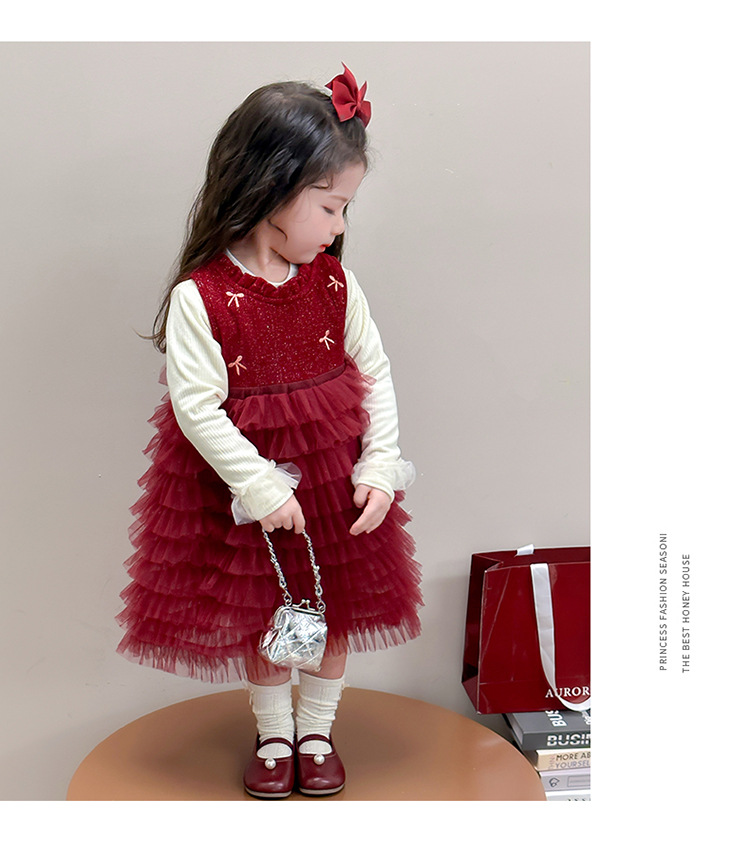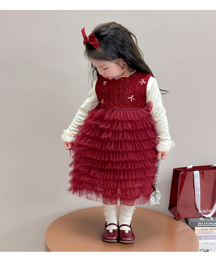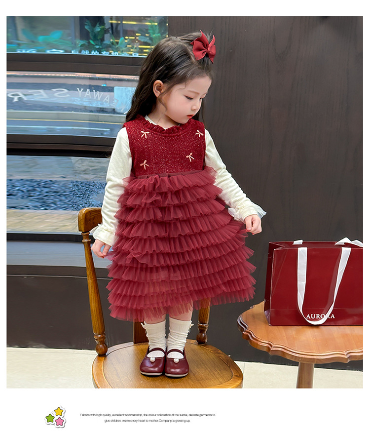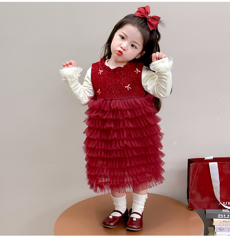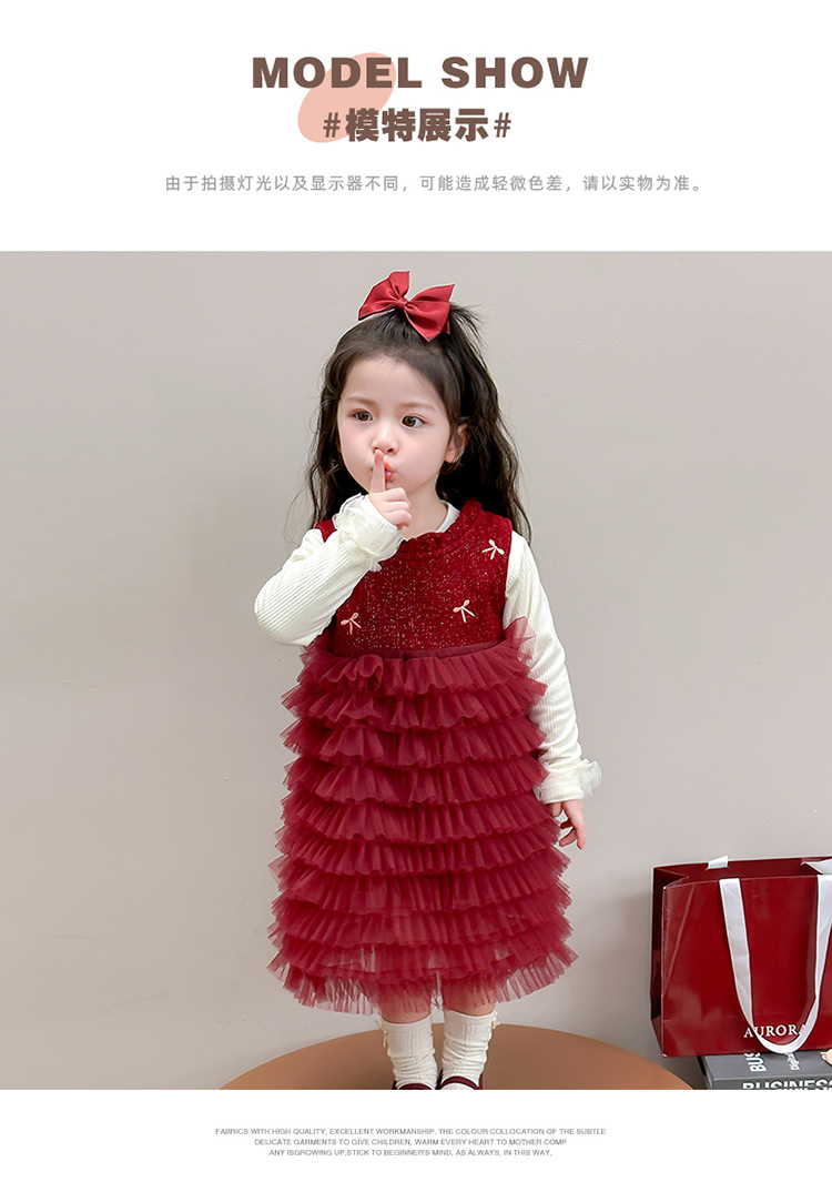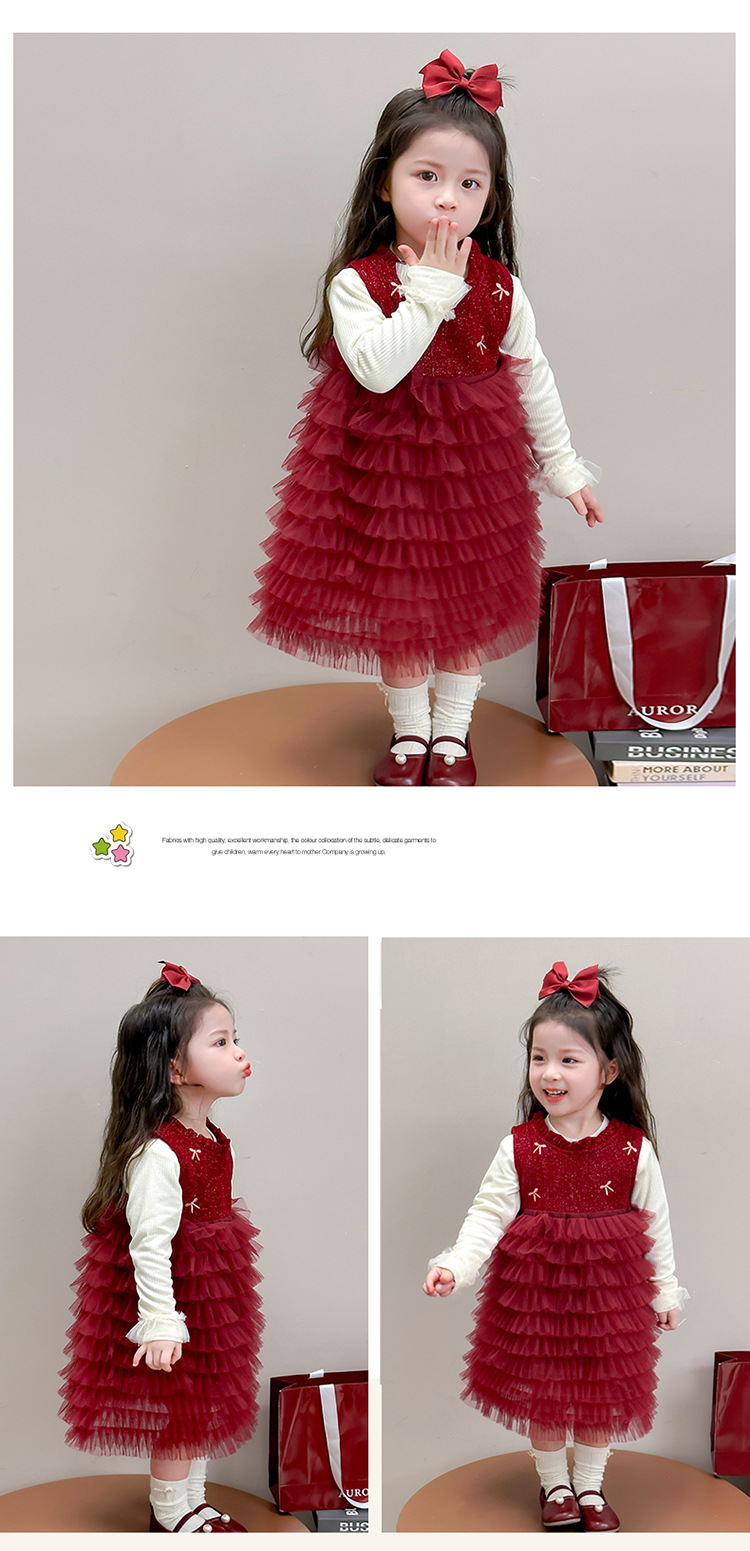 소녀의 겨울 옷 세트 아기의 겨울 기모 두꺼운 베일 스커트 투피스 세트 어린이 겨울 서양식 유행 년 원피스