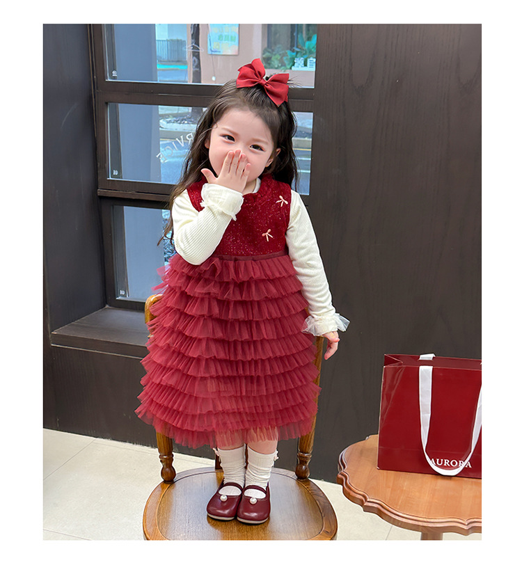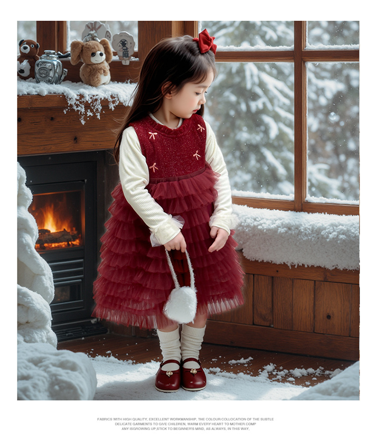 소녀의 겨울 옷 세트 아기의 겨울 기모 두꺼운 베일 스커트 투피스 세트 어린이 겨울 서양식 유행 년 원피스스토어 가기