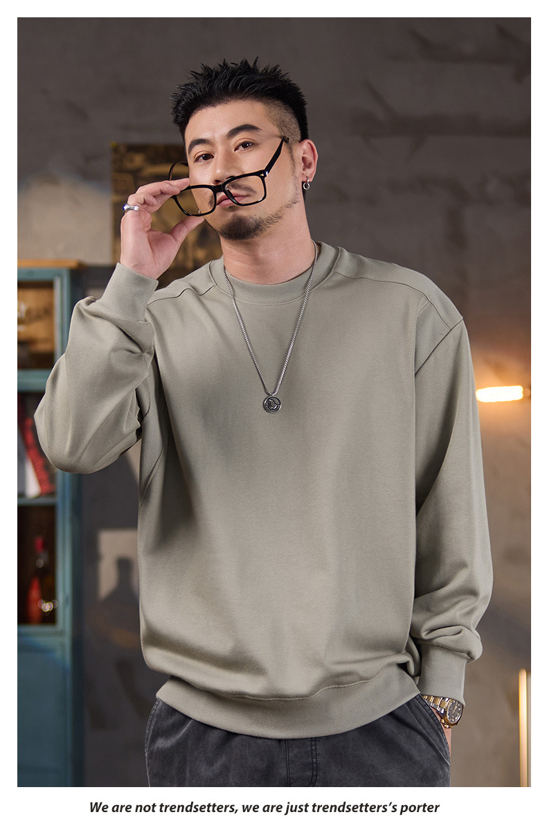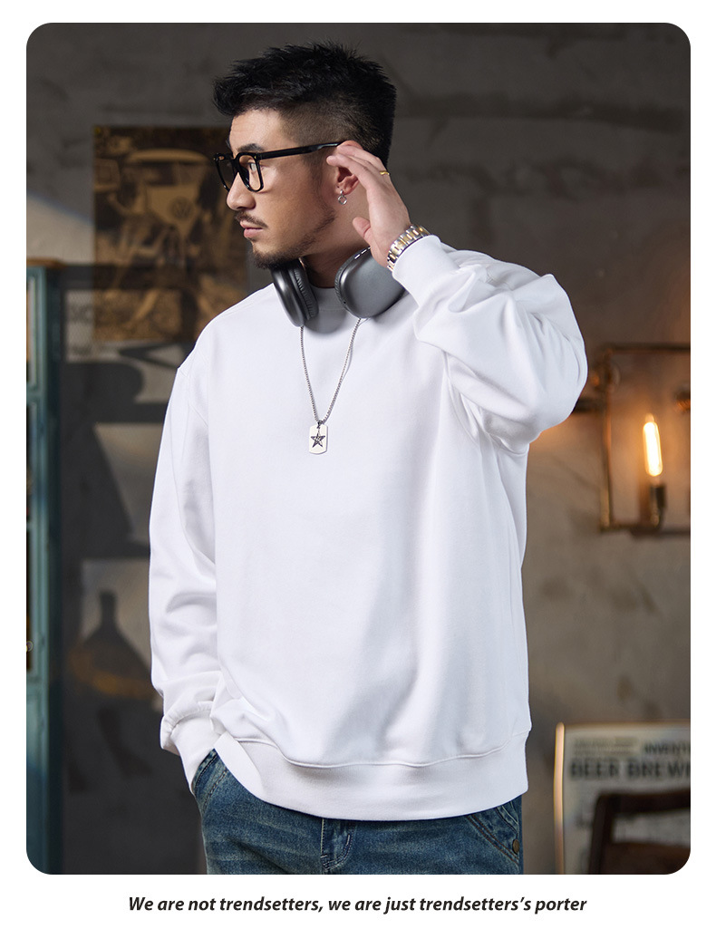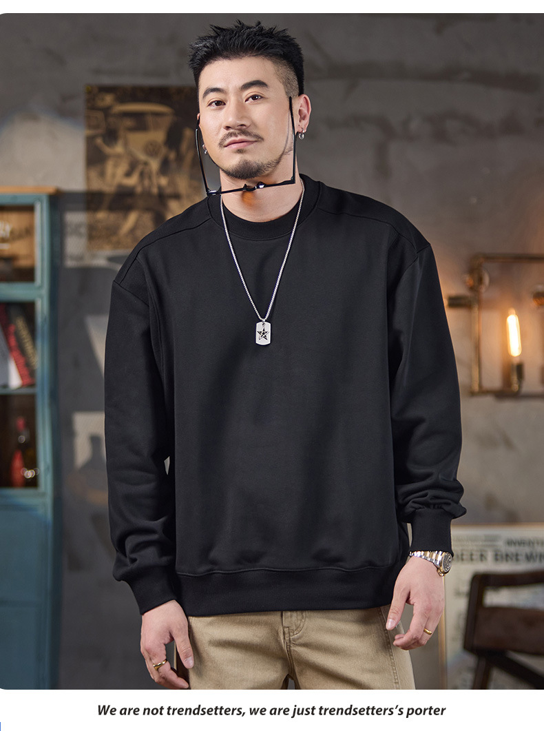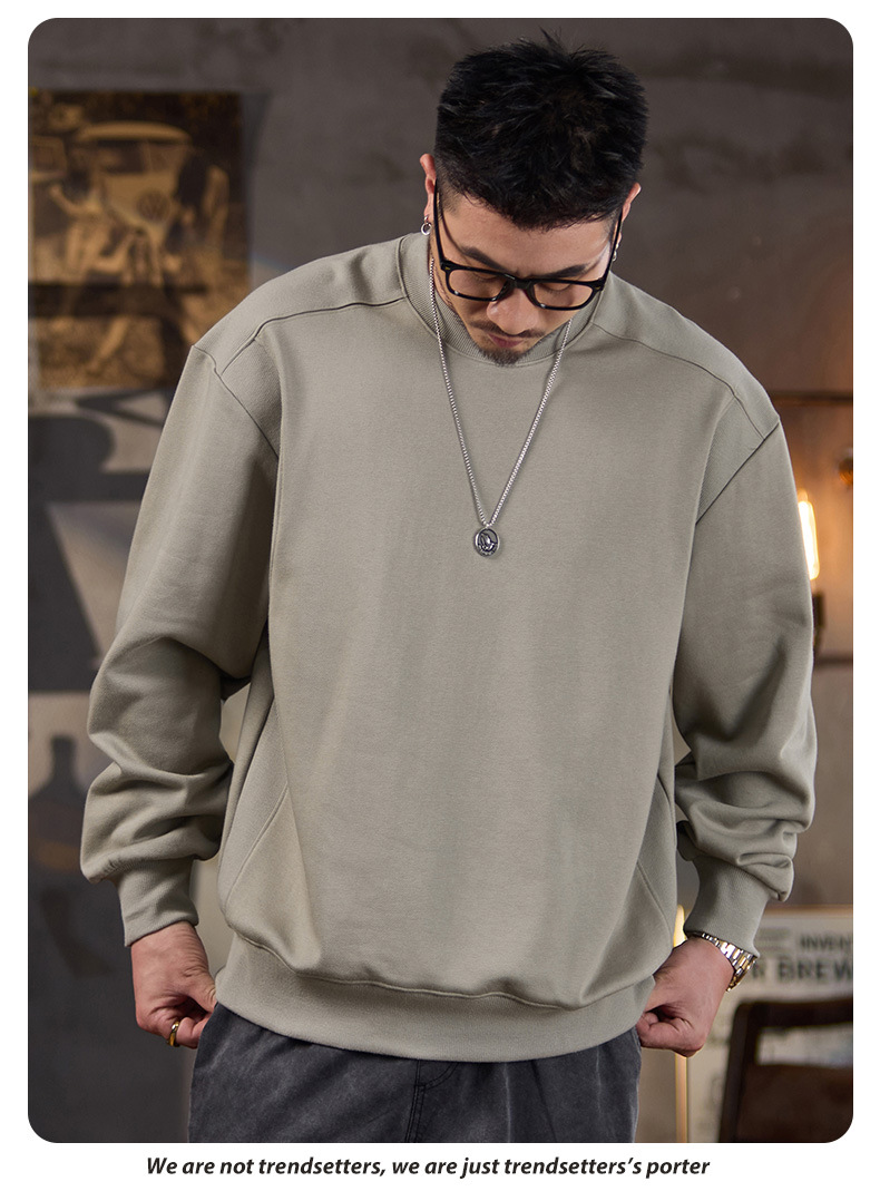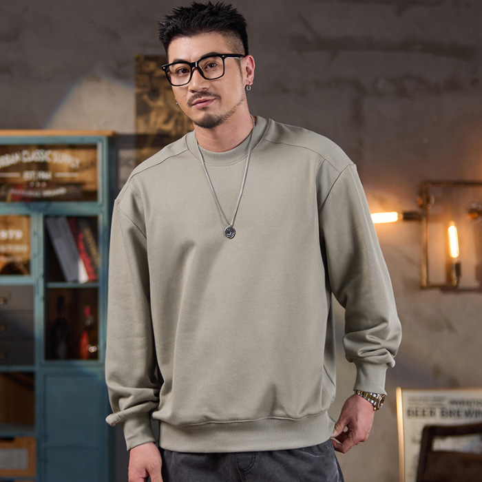 미국식 캐주얼 레트로 라운드넥 스웨트셔츠 남성용 루즈핏 헤비 코튼 골지 배색 워싱 긴팔 상의 460g 일본 스타일