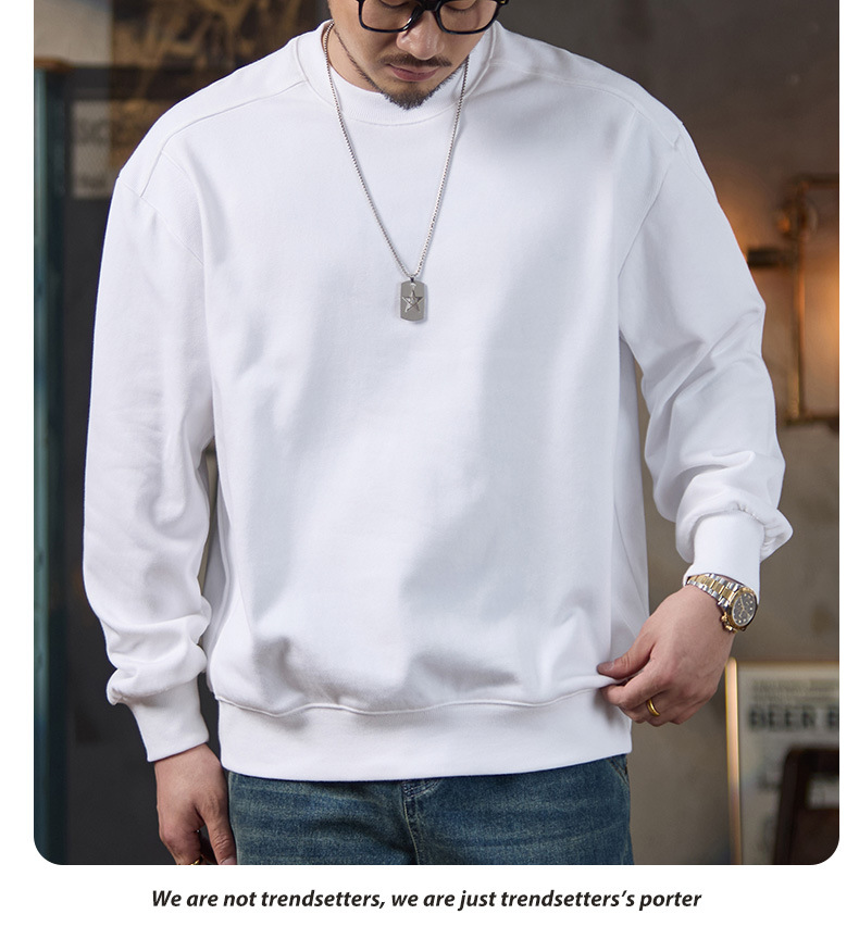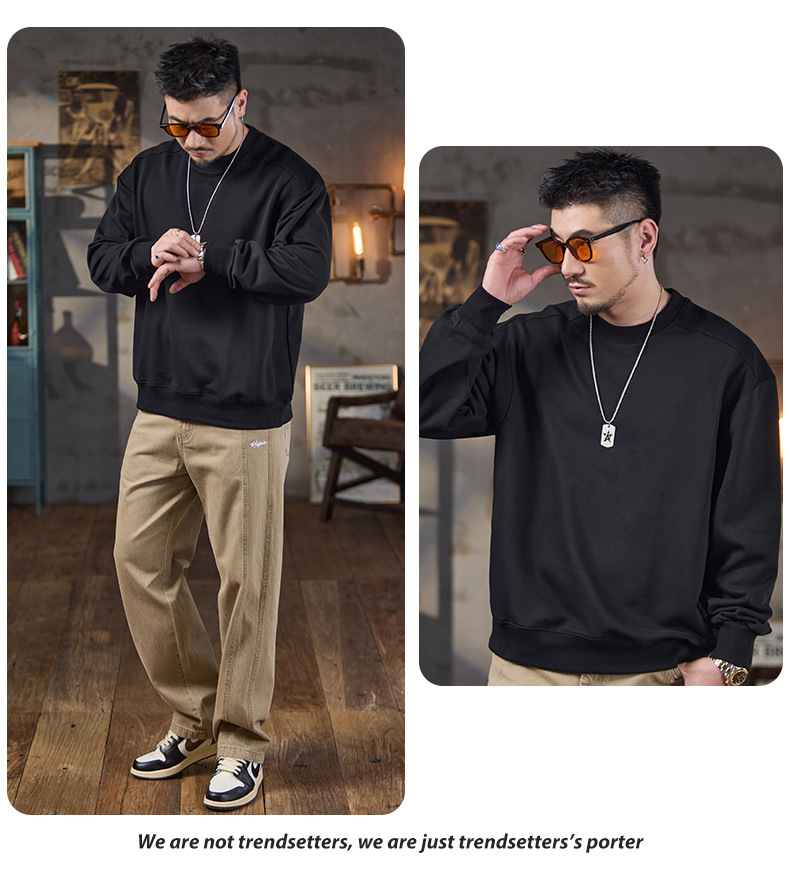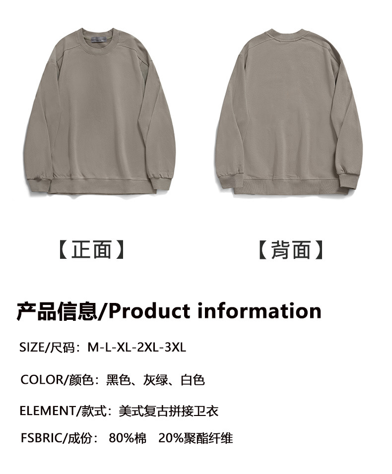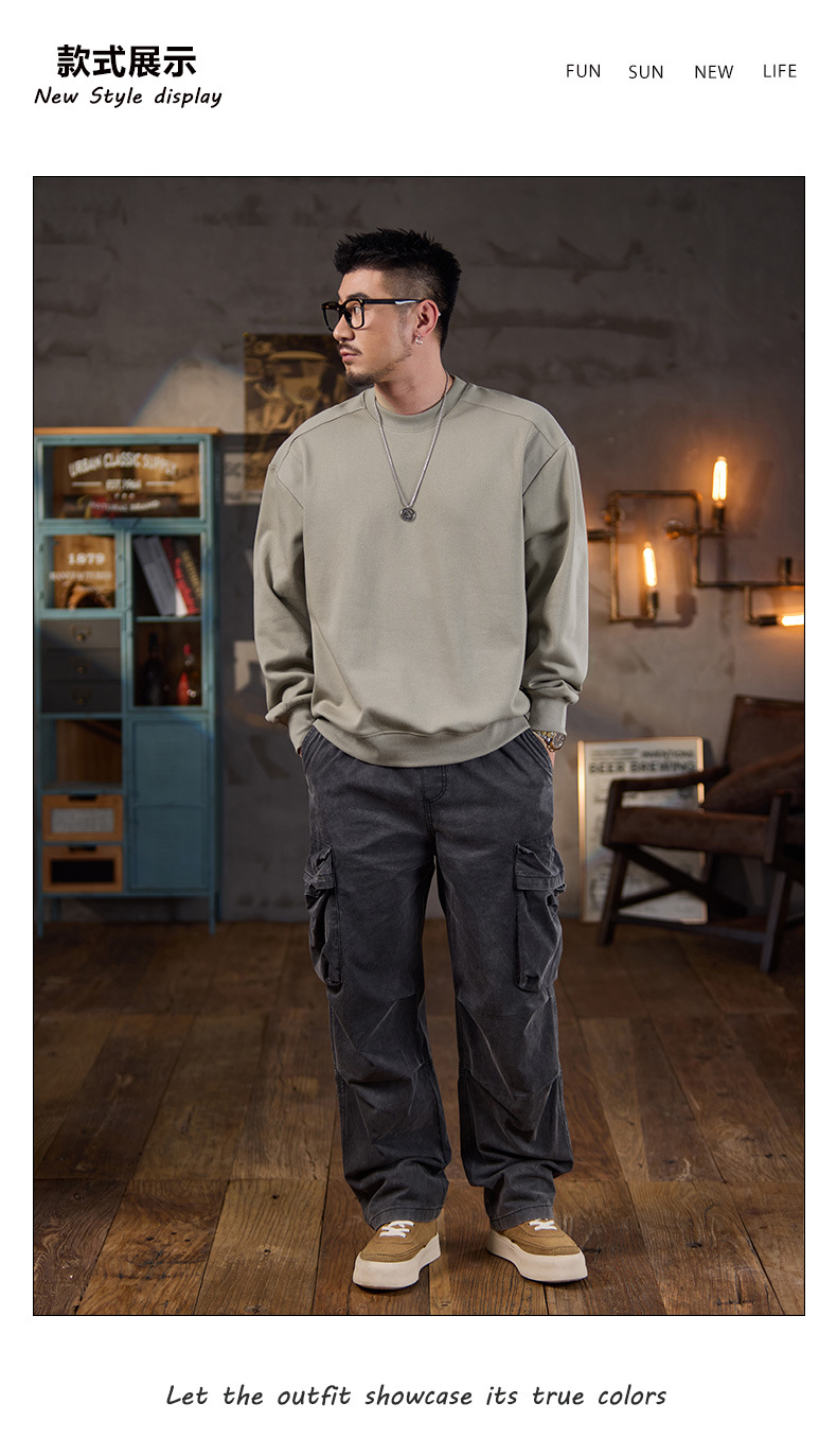 미국식 캐주얼 레트로 라운드넥 스웨트셔츠 남성용 루즈핏 헤비 코튼 골지 배색 워싱 긴팔 상의 460g 일본 스타일스토어 가기