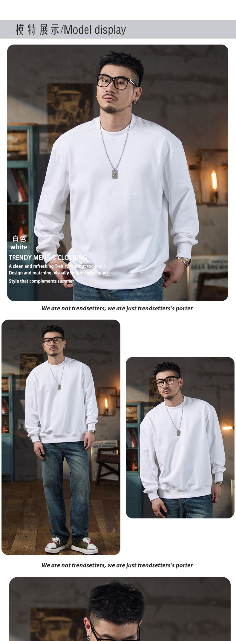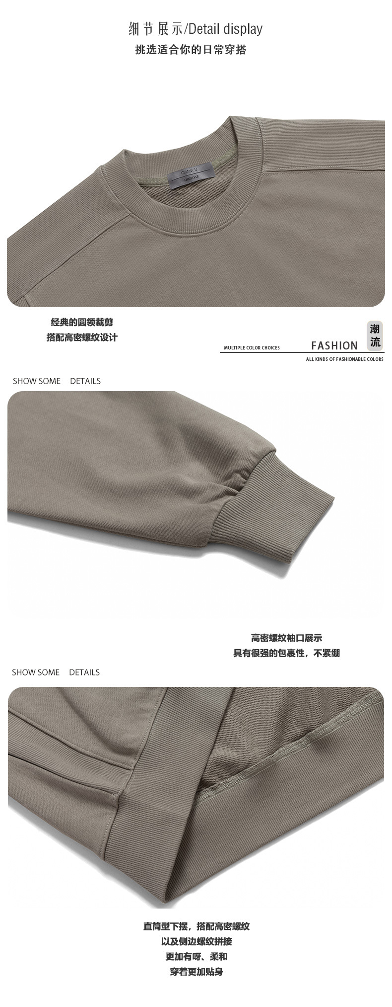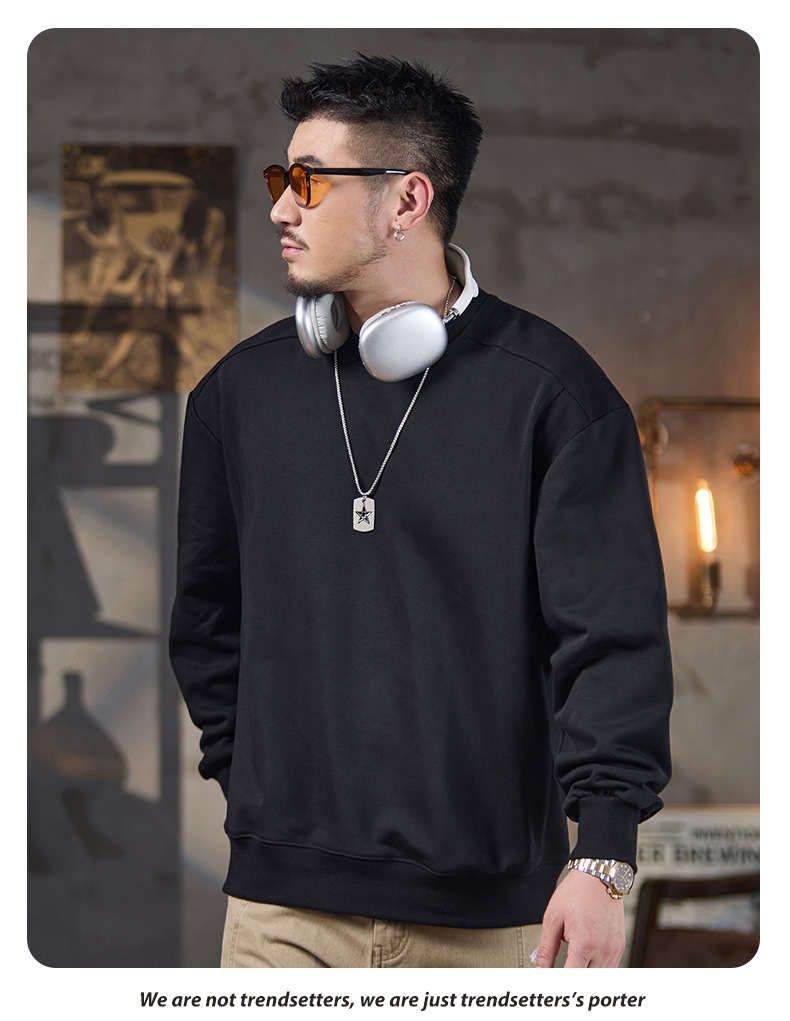 미국식 캐주얼 레트로 라운드넥 스웨트셔츠 남성용 루즈핏 헤비 코튼 골지 배색 워싱 긴팔 상의 460g 일본 스타일스토어 가기