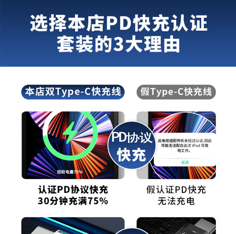 60W 듀얼 헤드 type-cPD 고속 충전 케이블 - Xiaomi 및 Huawei 휴대폰 충전 케이블 플래시 충전에 적합한 데이터 케이블스토어 가기