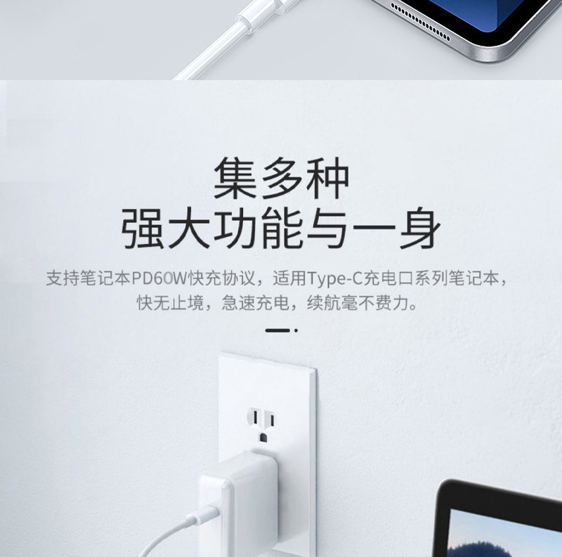 60W 듀얼 헤드 type-cPD 고속 충전 케이블 - Xiaomi 및 Huawei 휴대폰 충전 케이블 플래시 충전에 적합한 데이터 케이블
