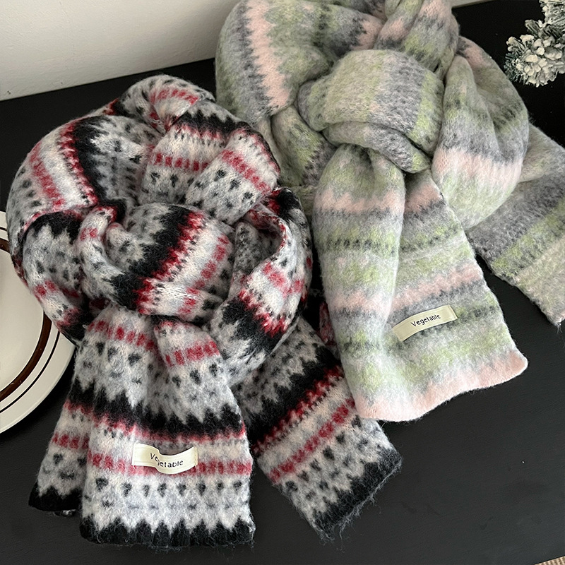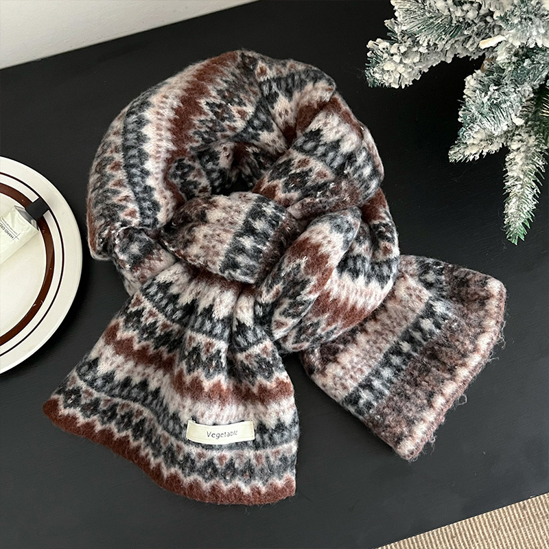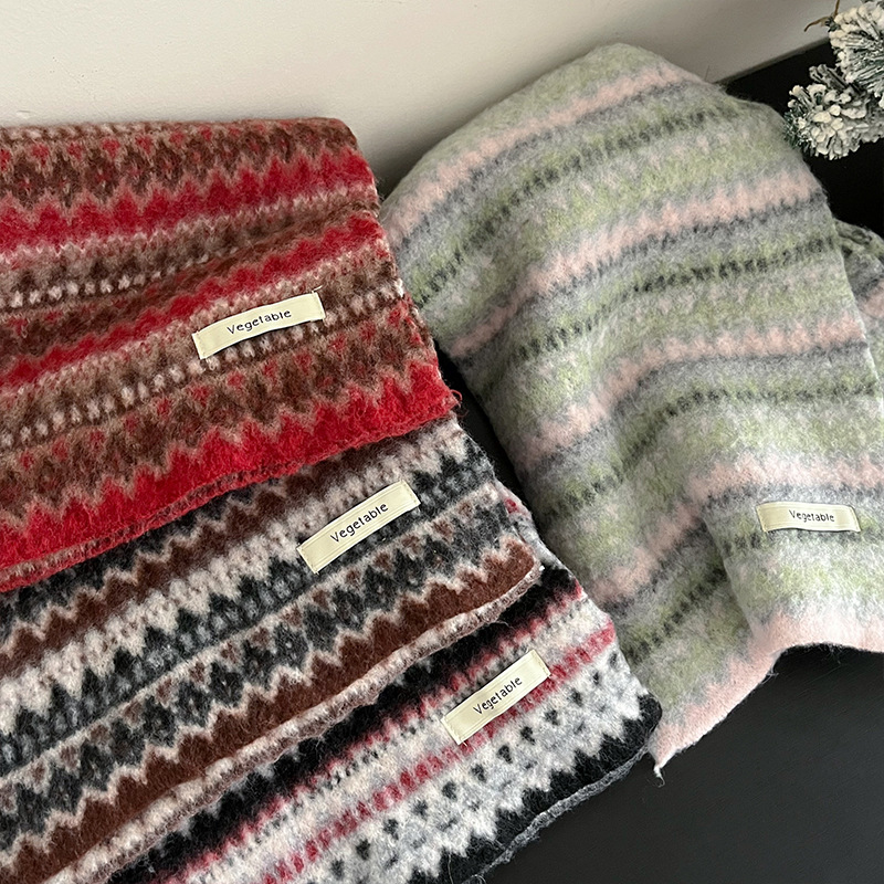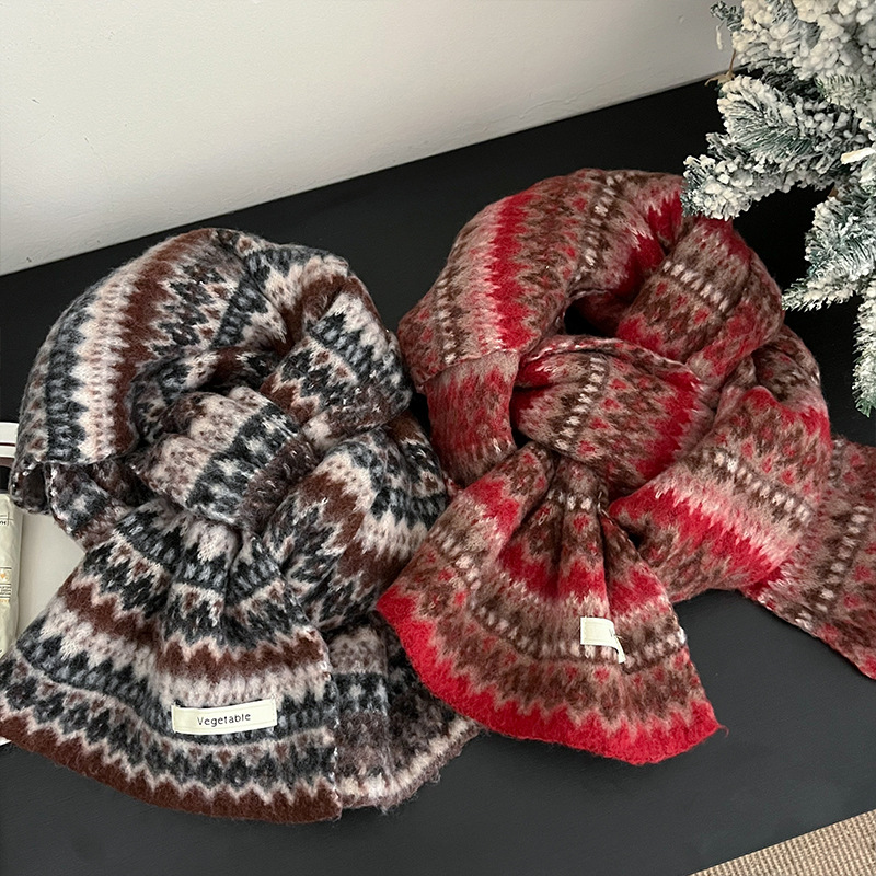 한국 스타일 새로운 가을 겨울 대비 컬러 레트로 스카프 여성 올매치 우아한 두꺼운 따뜻한 민족 스타일 스카프 유행 목도리스토어 가기