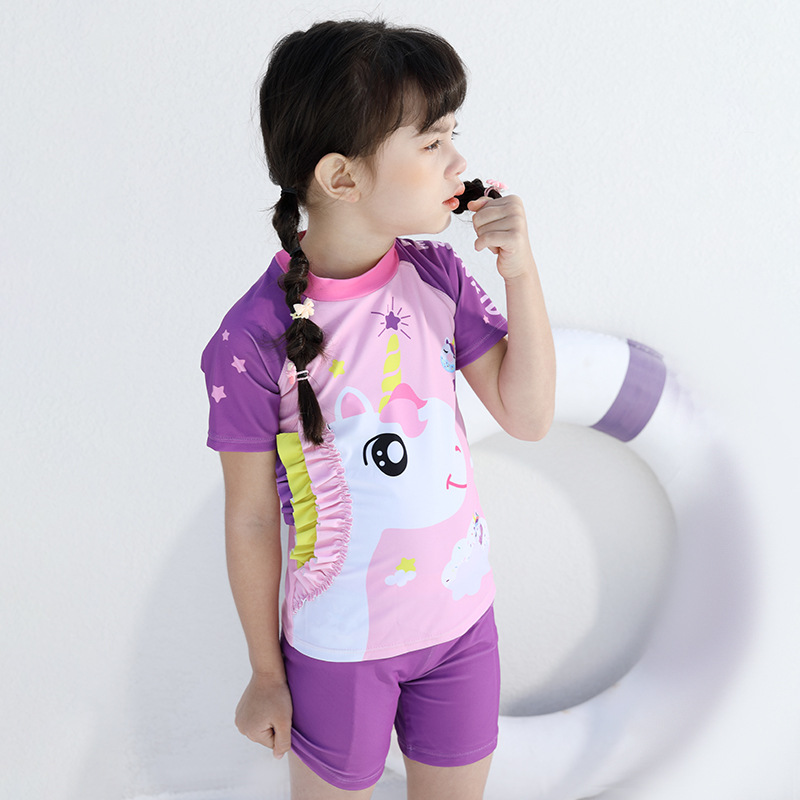 2024 년 어린이 여자 수영복 레인보우 말 스포츠 분할 세트 선 스크린 아기 소녀 수영복 모자