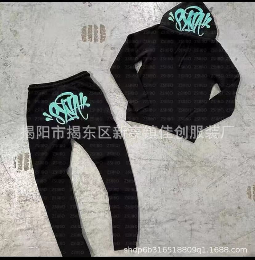 SynaWord高街时尚潮牌套装男ins潮流嘻哈连帽衫syna印花卫衣套装