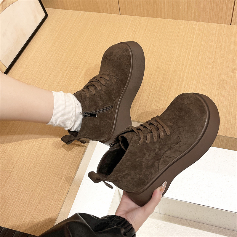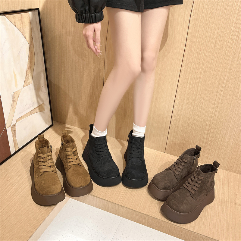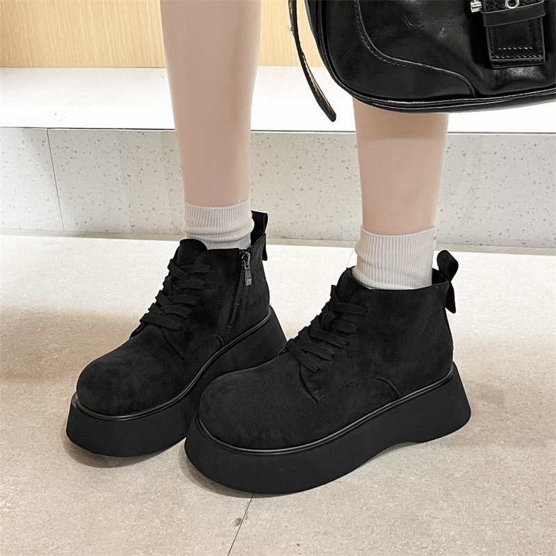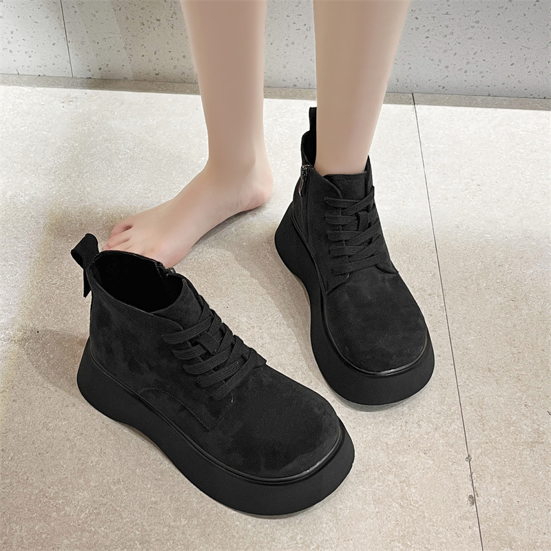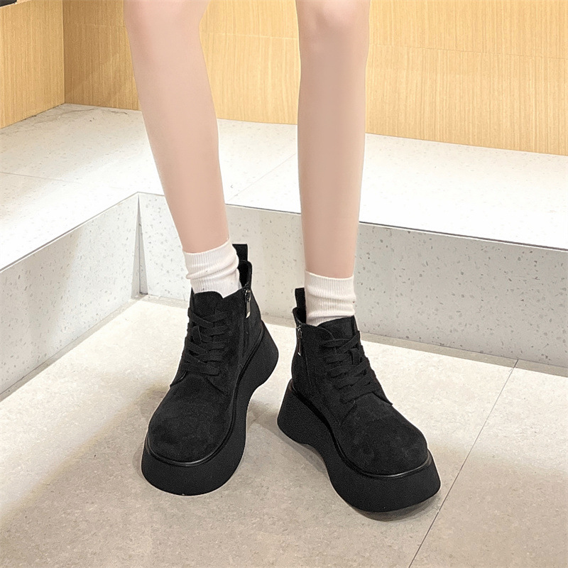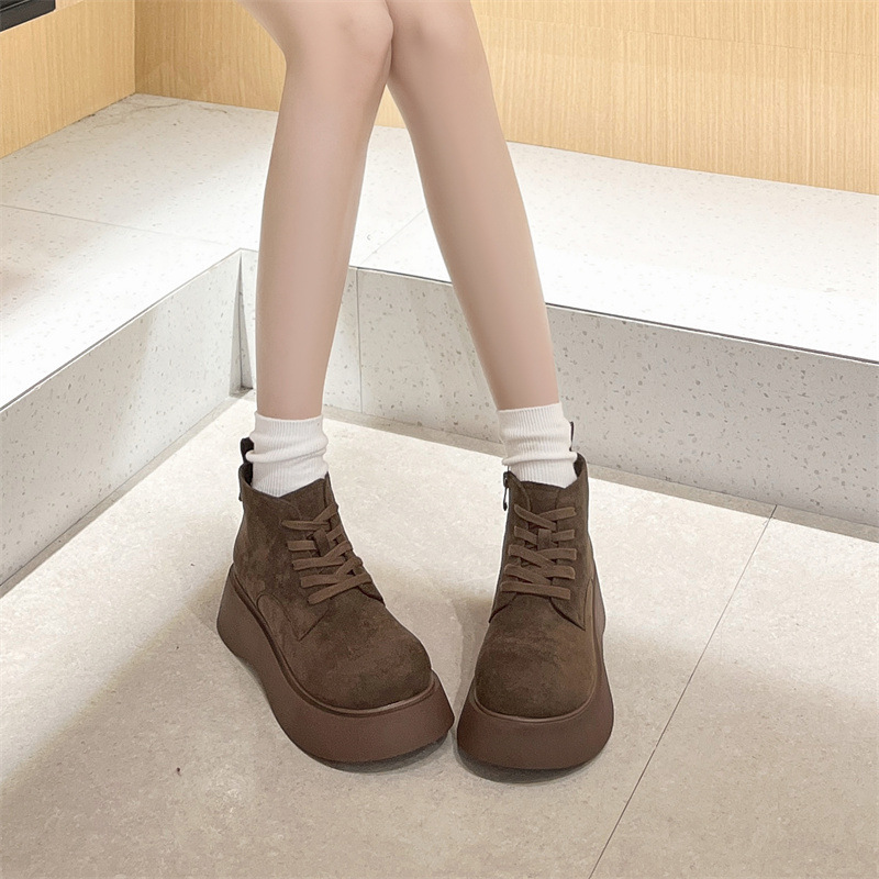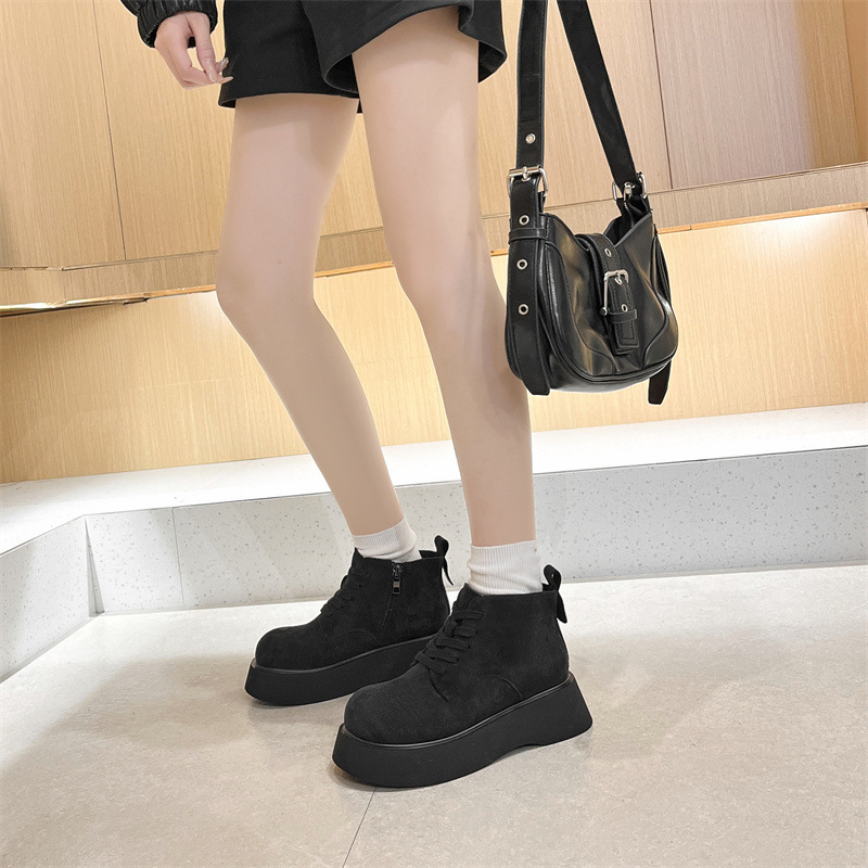 Butterfly Australia 2024 가을 새로운 큰 머리 짧은 부츠 여성용 얇은 부츠 빈티지 프로스트 Cowhide 레이스 업 마틴 신발 트렌디스토어 가기