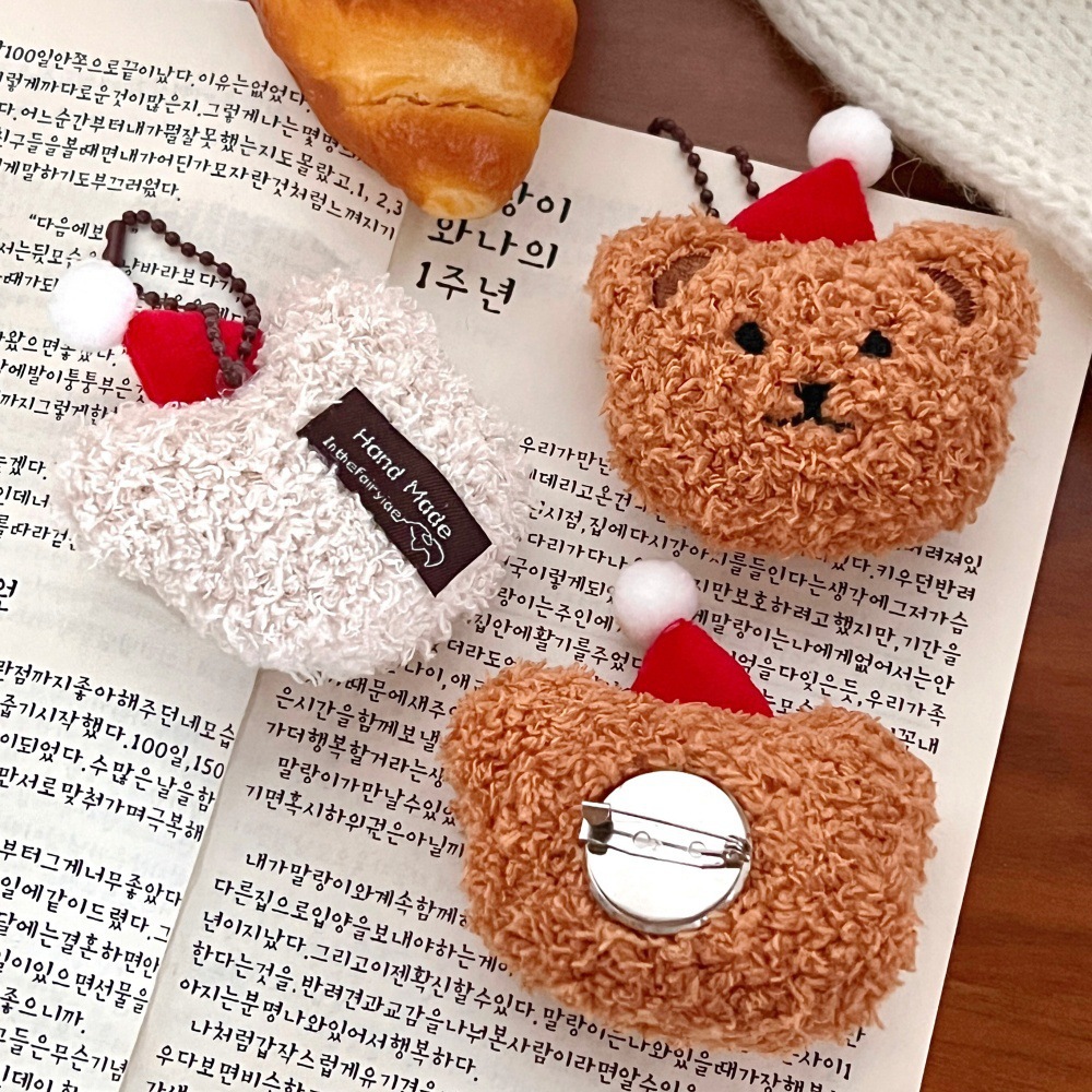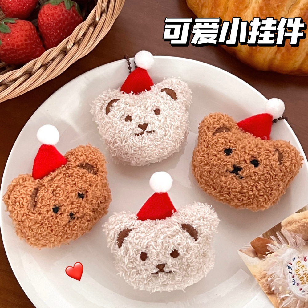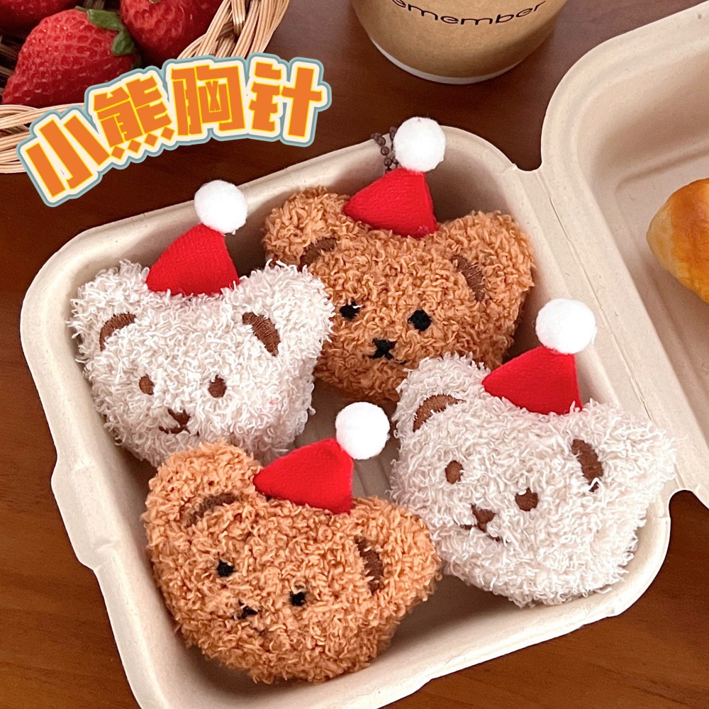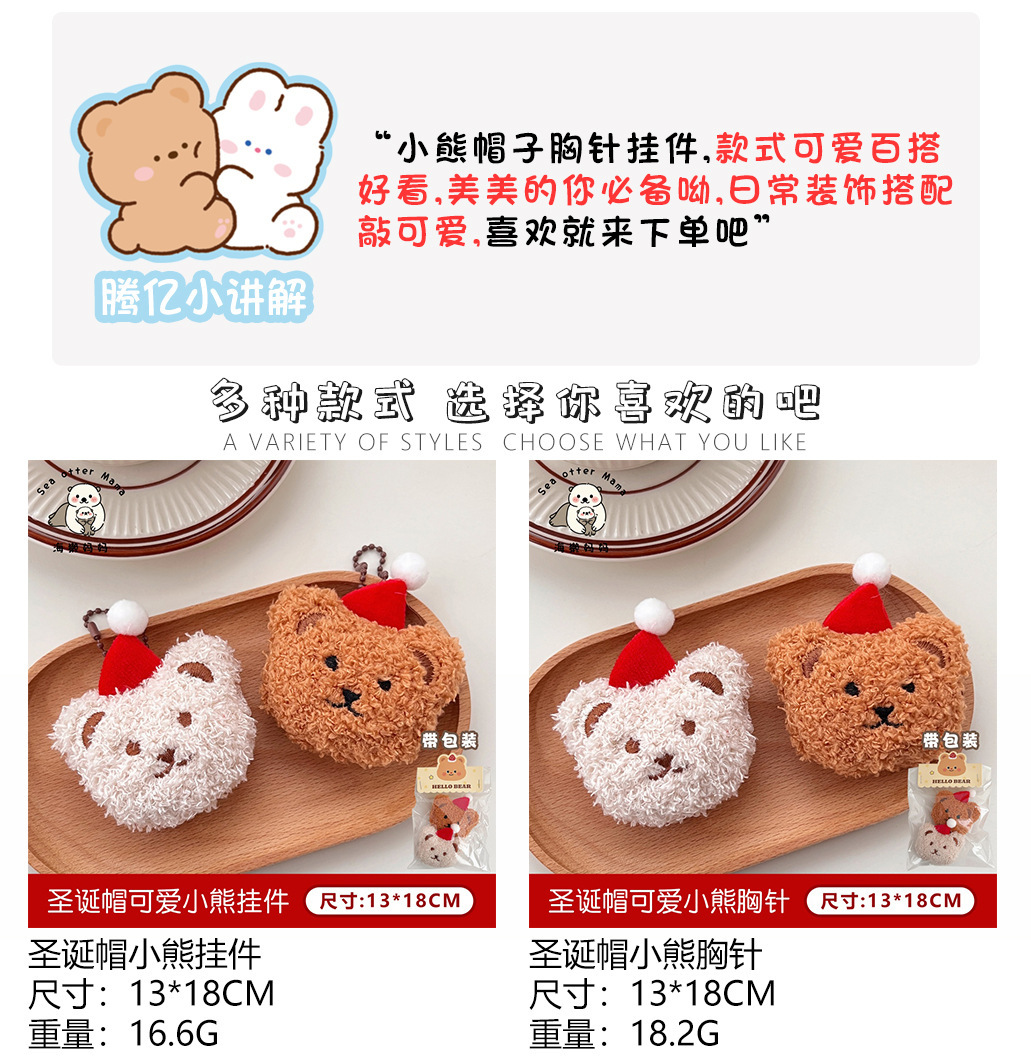 새로운 크리스마스 모자 곰 귀여운 펜던트 브로치 소녀 심장 모든 경기 작은 보석 키 체인 배낭 장식 펜던트스토어 가기
