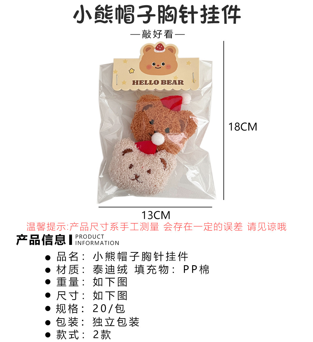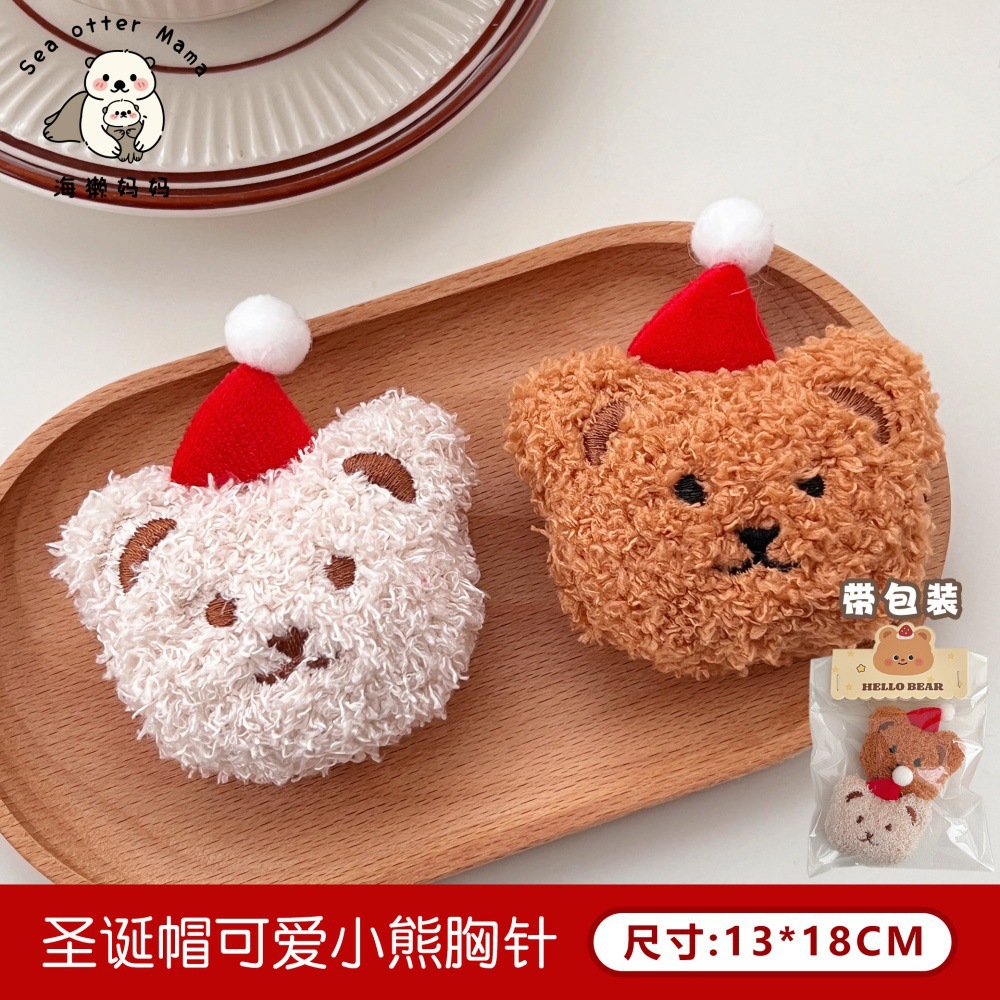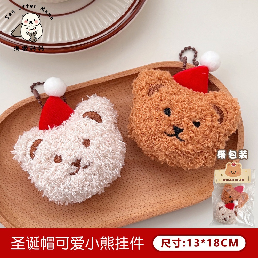 새로운 크리스마스 모자 곰 귀여운 펜던트 브로치 소녀 심장 모든 경기 작은 보석 키 체인 배낭 장식 펜던트스토어 가기