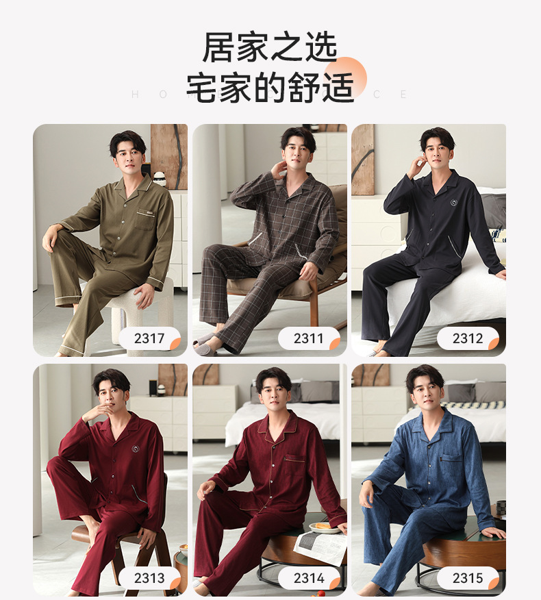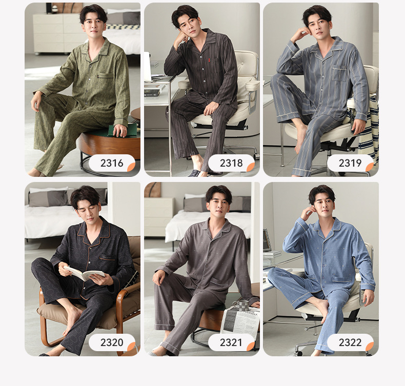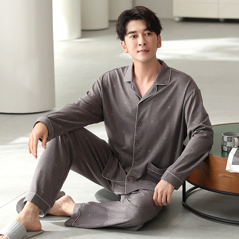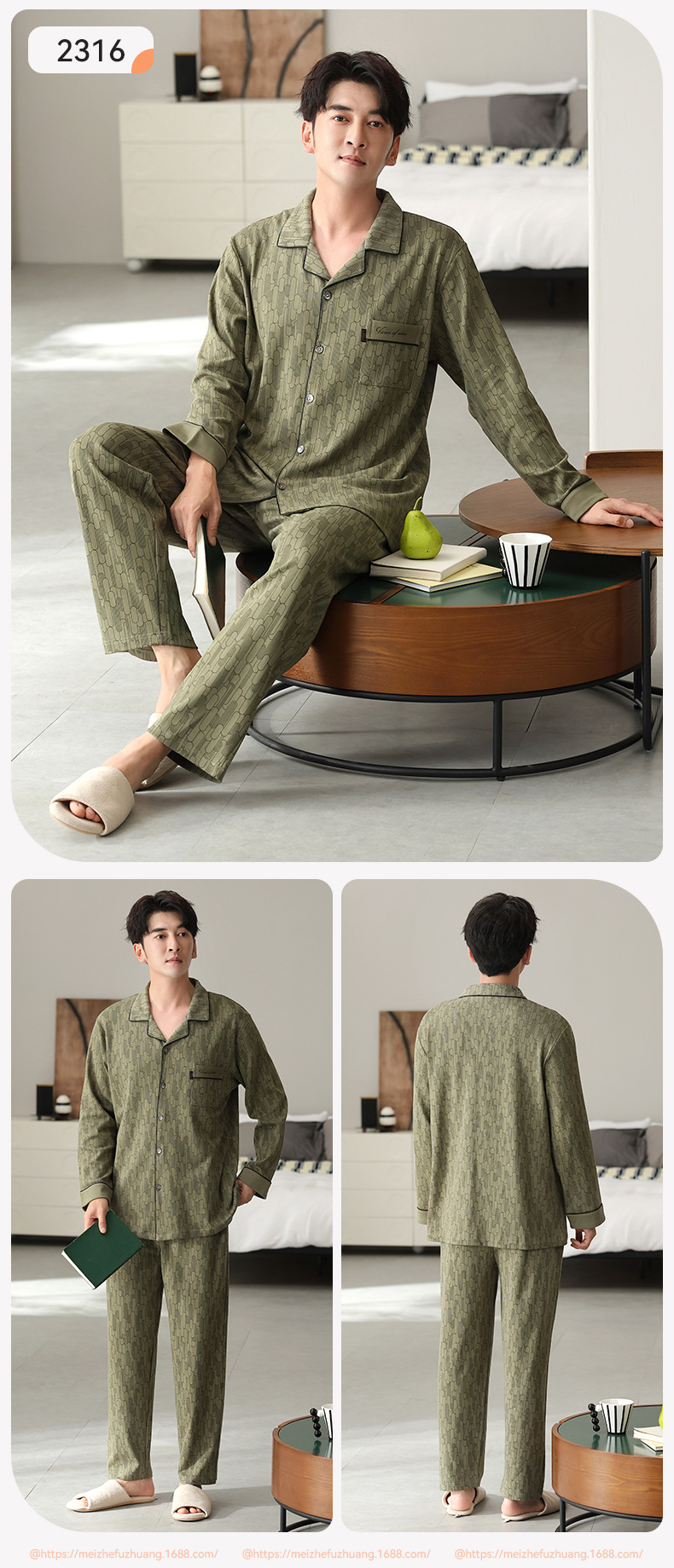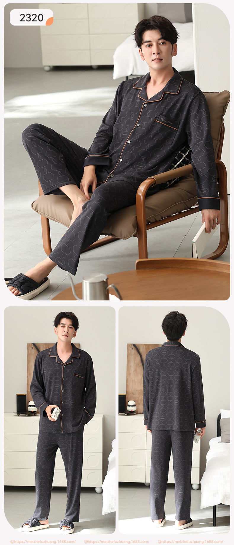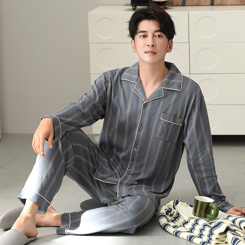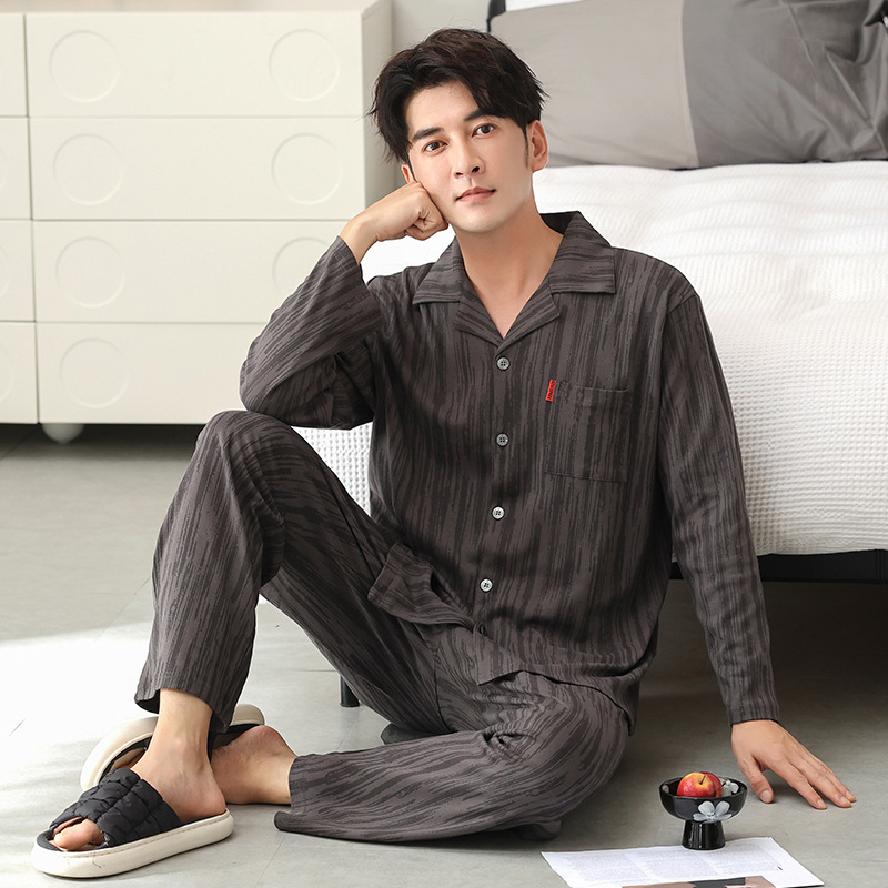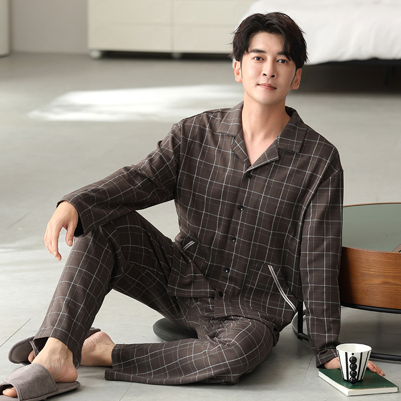 새로운 도착 순면 잠옷 남성 가을과 겨울 간단한 패션 옷깃 카디건 남성 홈 의류 세트 외부에서 착용 할 수 있습니다.스토어 가기