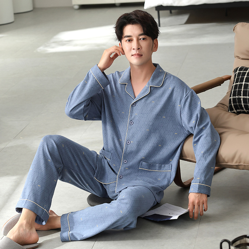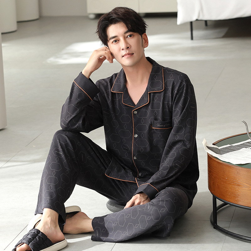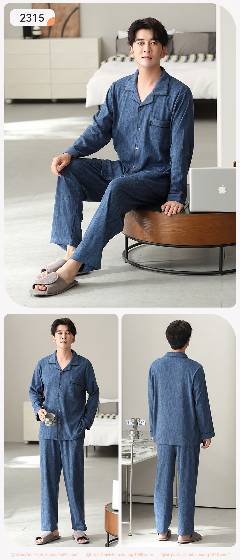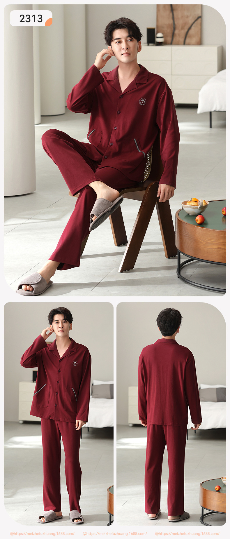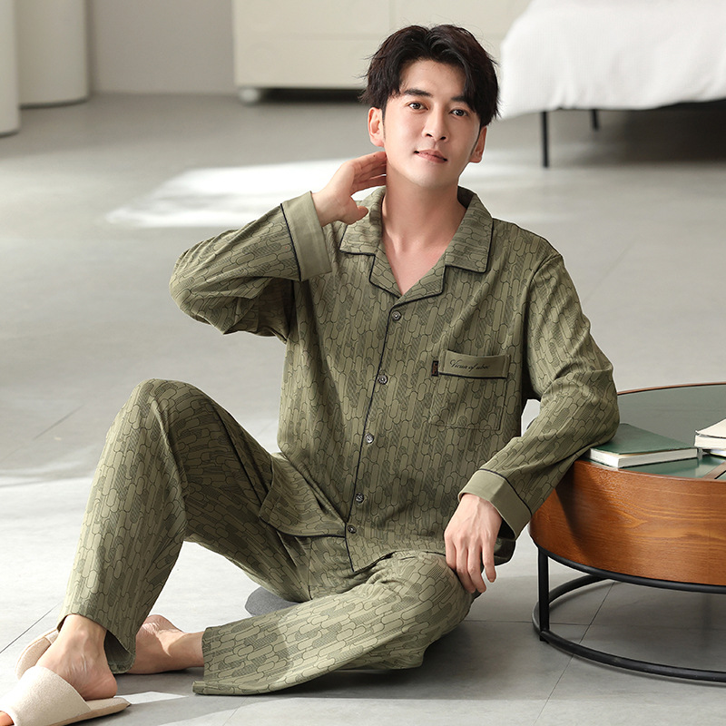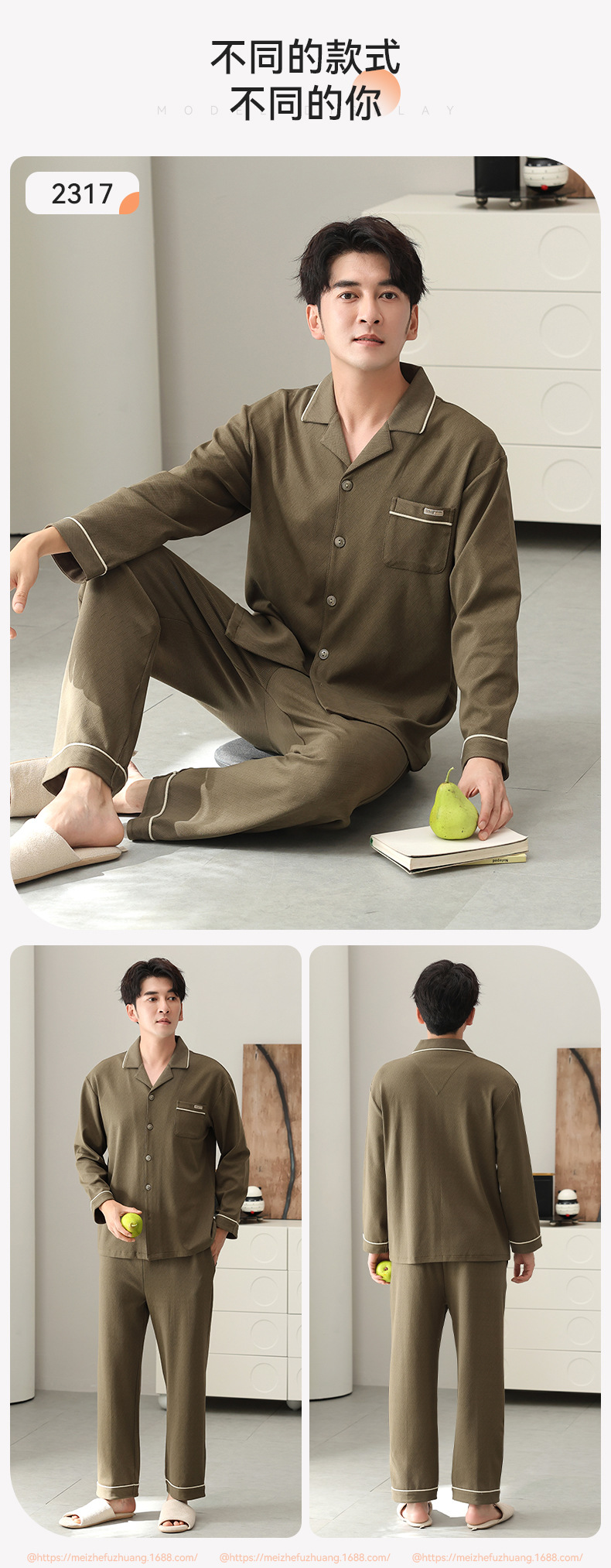 새로운 도착 순면 잠옷 남성 가을과 겨울 간단한 패션 옷깃 카디건 남성 홈 의류 세트 외부에서 착용 할 수 있습니다.스토어 가기
