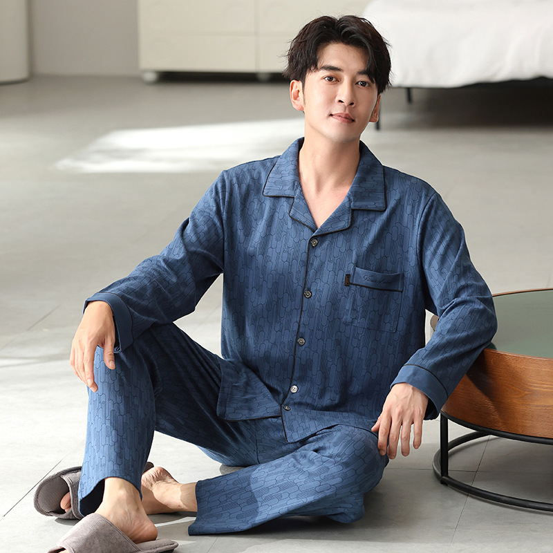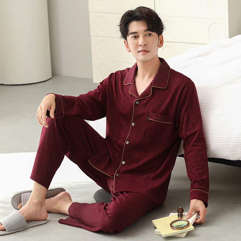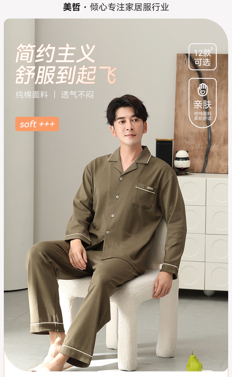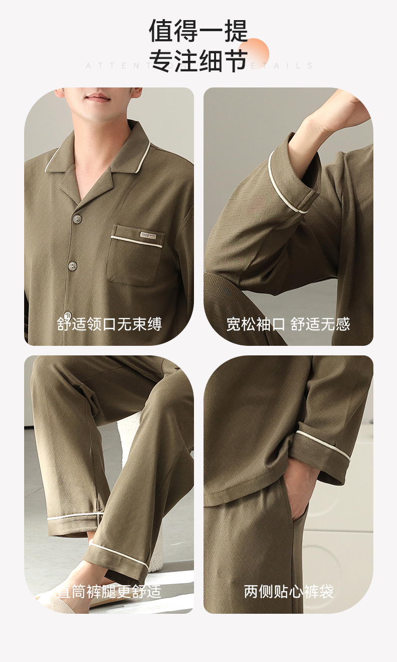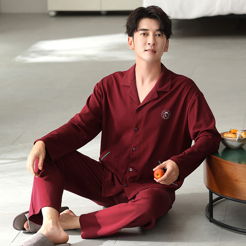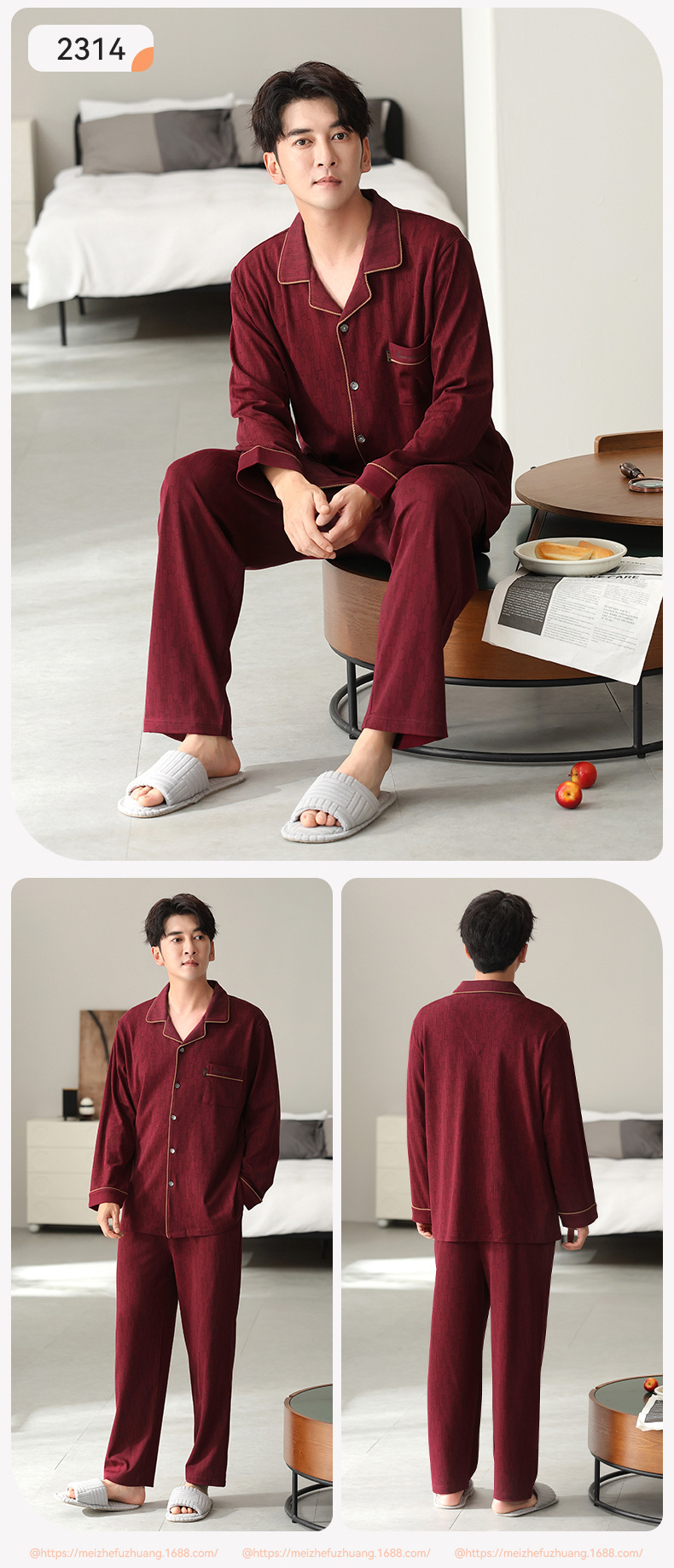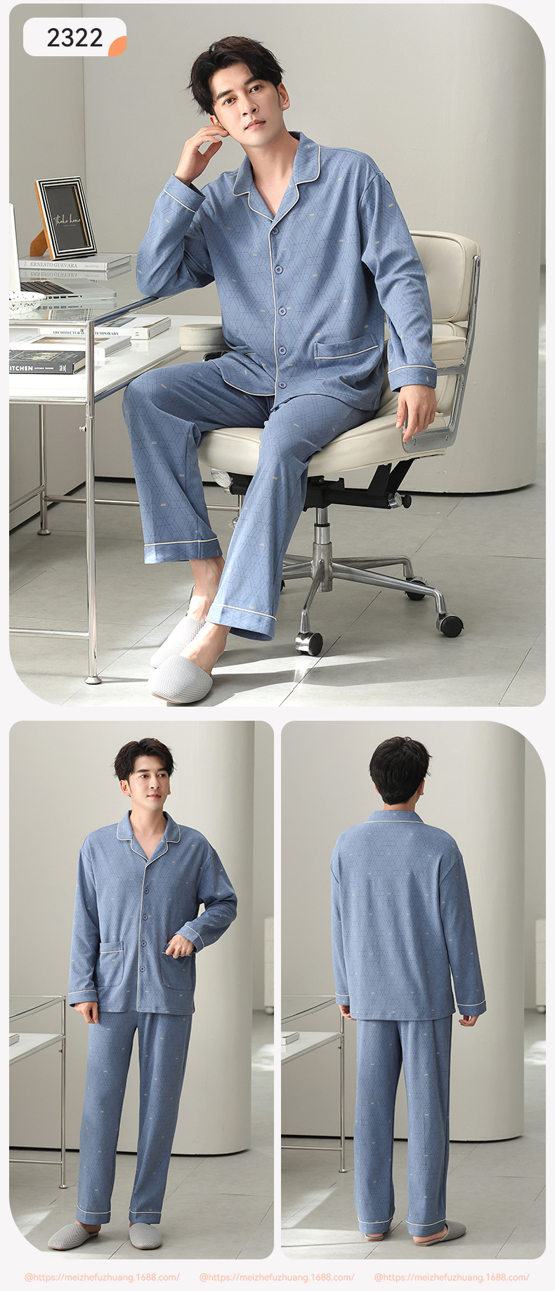 새로운 도착 순면 잠옷 남성 가을과 겨울 간단한 패션 옷깃 카디건 남성 홈 의류 세트 외부에서 착용 할 수 있습니다.스토어 가기
