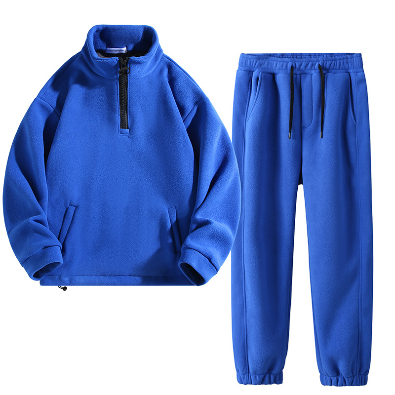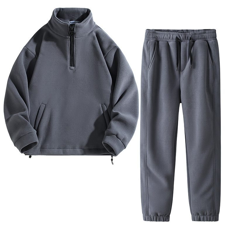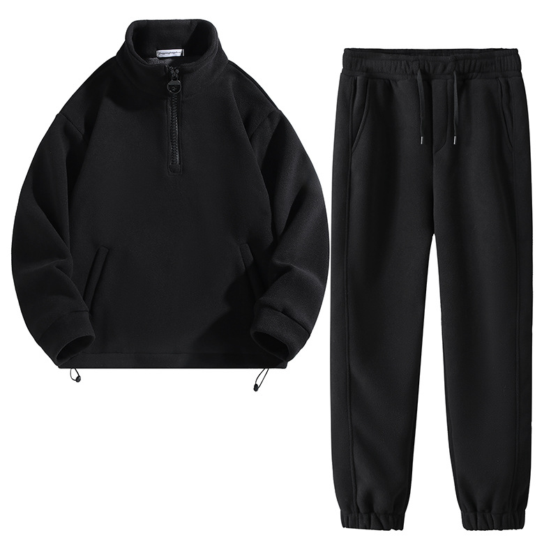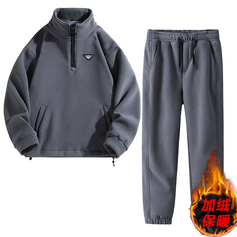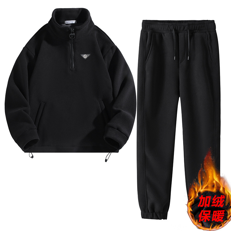 450kg 반 오픈 폴라 플리스 레저 스포츠 세트 양털과 비료 플러스 사이즈 2 피스 세트 두껍게 트렌디 한 남성용 바지