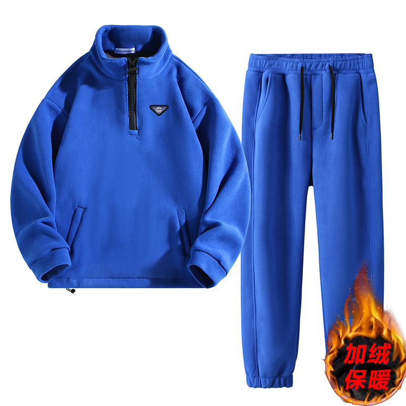 450kg 반 오픈 폴라 플리스 레저 스포츠 세트 양털과 비료 플러스 사이즈 2 피스 세트 두껍게 트렌디 한 남성용 바지스토어 가기