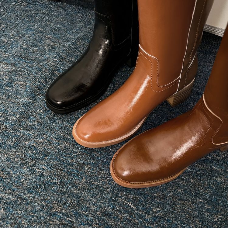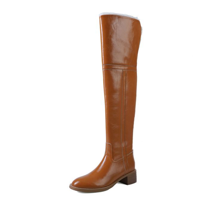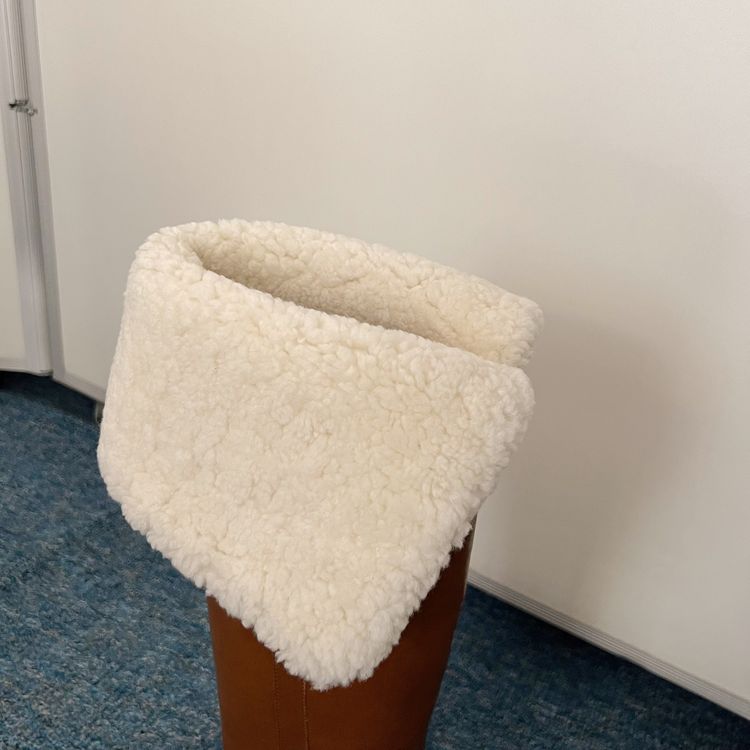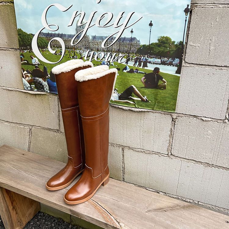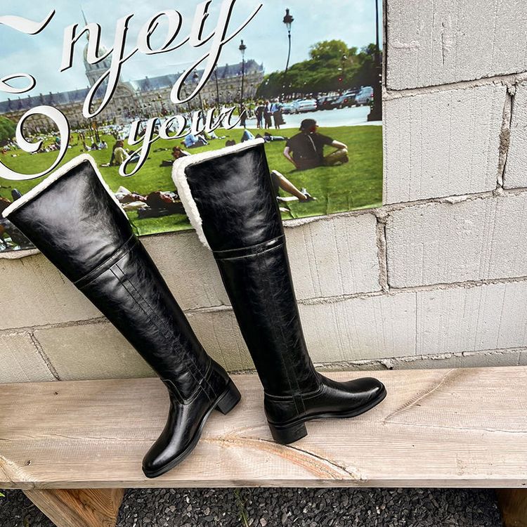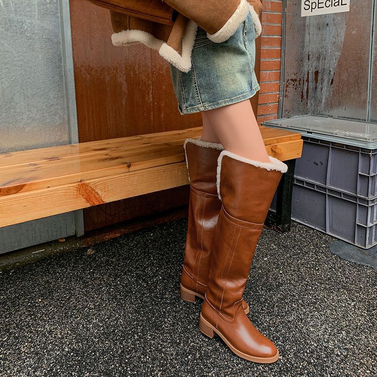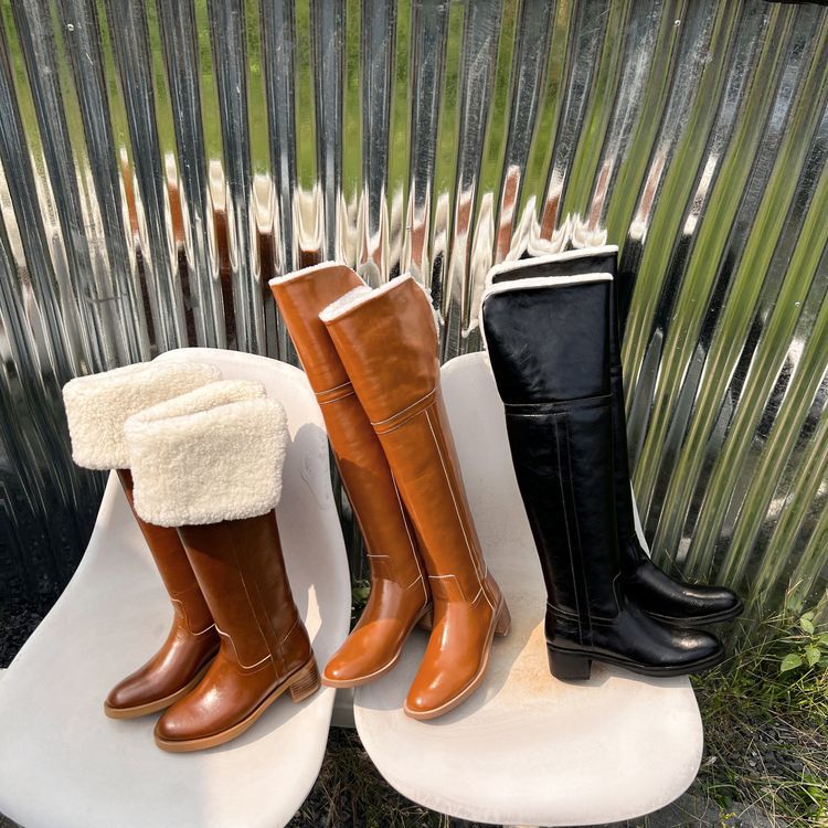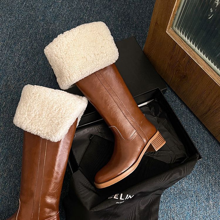 2024 가을과 겨울 두꺼운 무릎 위 여성용 롱 부츠 마오 마오 턴 업 양방향 롱 부츠 미드 힐 하이 기모 두꺼운 코튼 슈즈스토어 가기