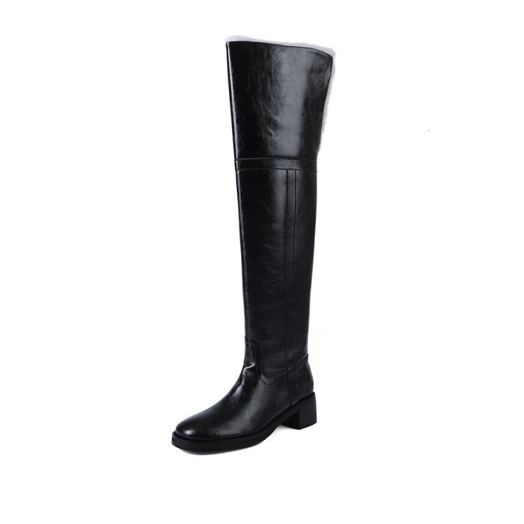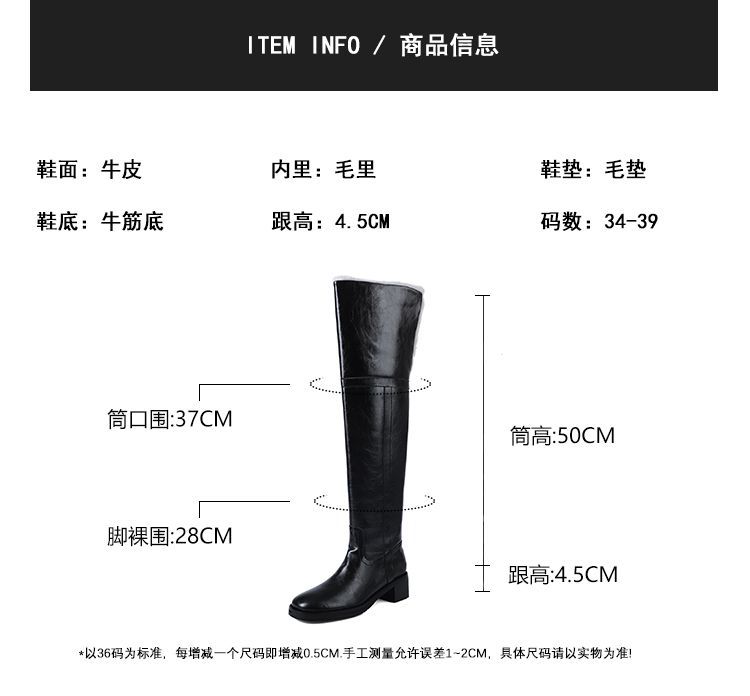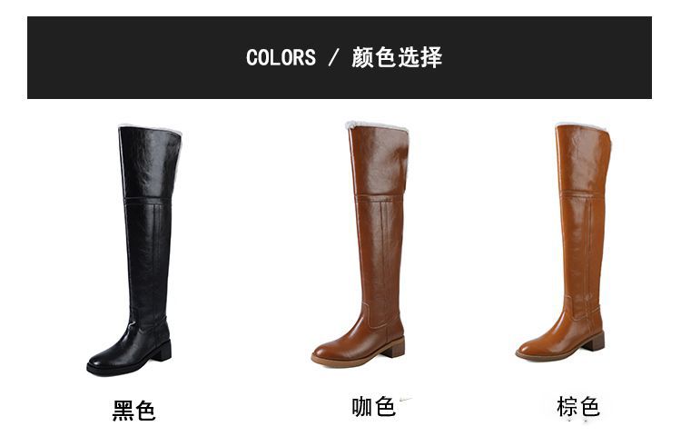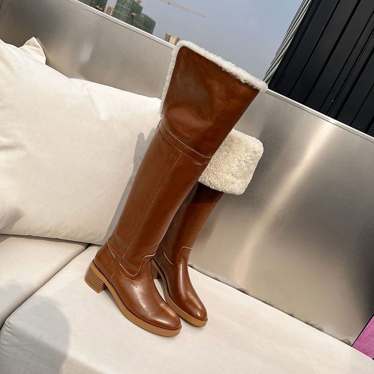 2024 가을과 겨울 두꺼운 무릎 위 여성용 롱 부츠 마오 마오 턴 업 양방향 롱 부츠 미드 힐 하이 기모 두꺼운 코튼 슈즈