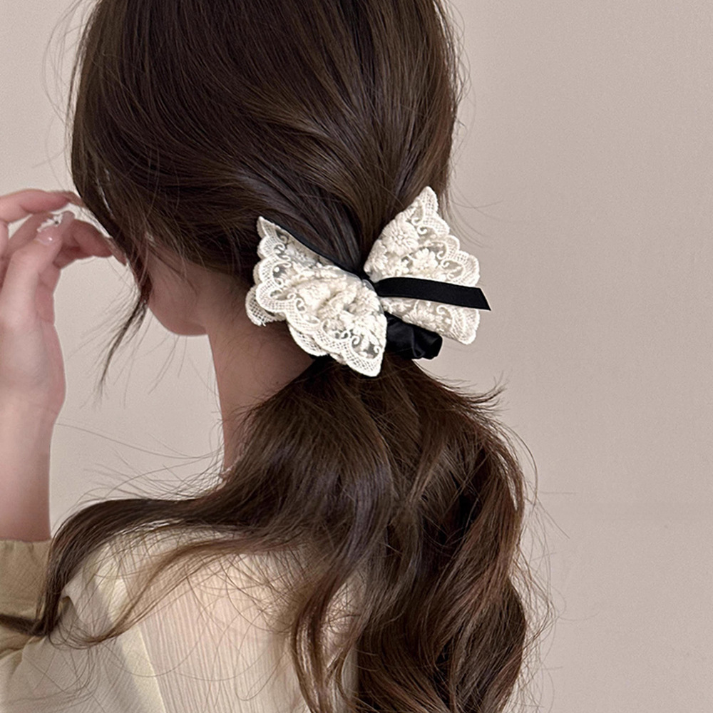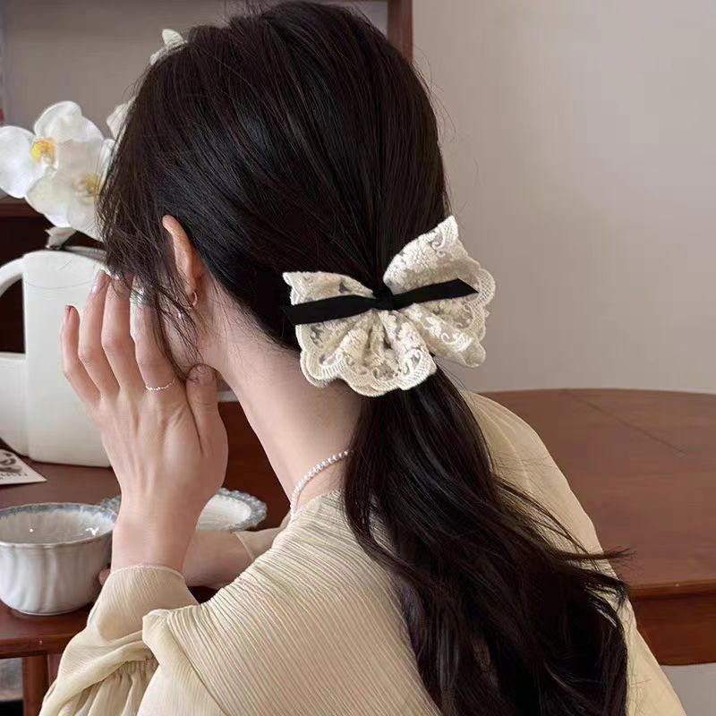 프랑스 복고풍 레이스 활 대장 헤어 링 그물 레드 2024 새로운 헤어 로프 헤어 액세서리 도매스토어 가기