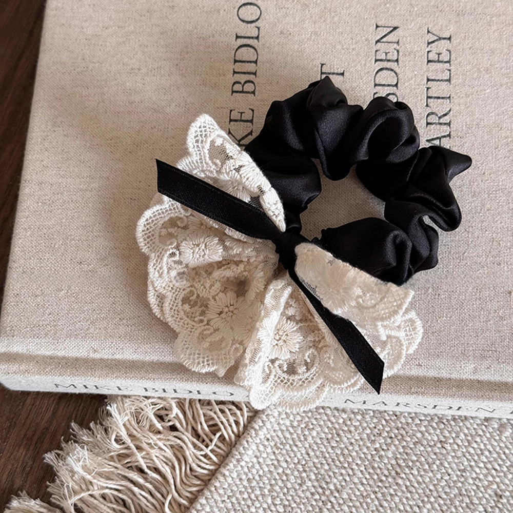 프랑스 복고풍 레이스 활 대장 헤어 링 그물 레드 2024 새로운 헤어 로프 헤어 액세서리 도매