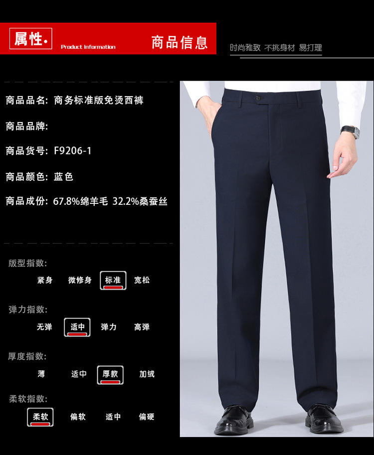 카운터 남성용 비 접이식 울 바지 2024 두꺼운 비즈니스 비 다림질 조커 중년 아빠 스트레이트 팬츠 도매스토어 가기