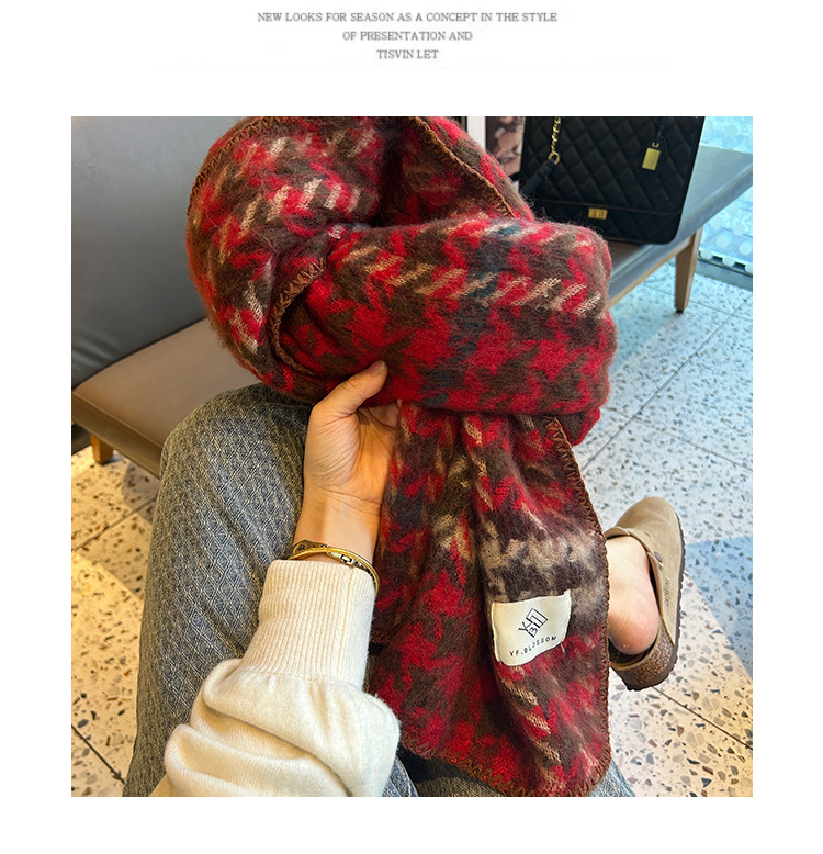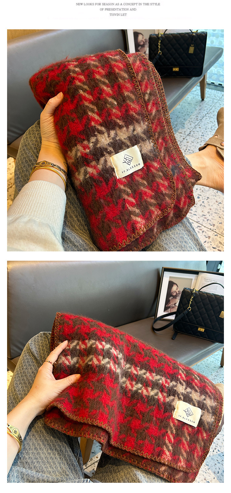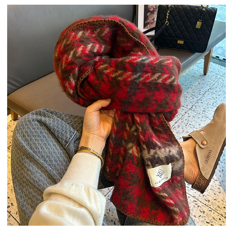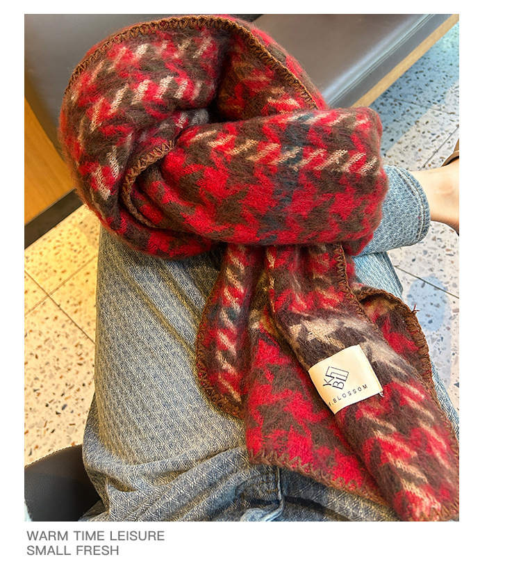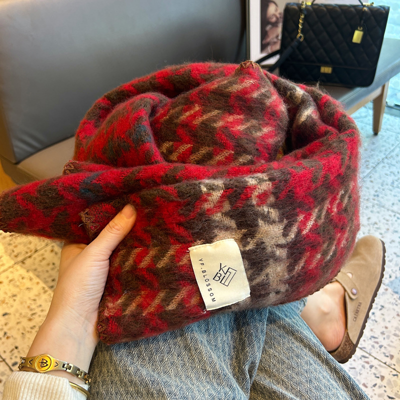 한국 싱글 레드 스카프 여자 겨울 격자 무늬 올매치 따뜻한 하이 엔드 유행 새해 선물 크리스마스 스카프 목도리