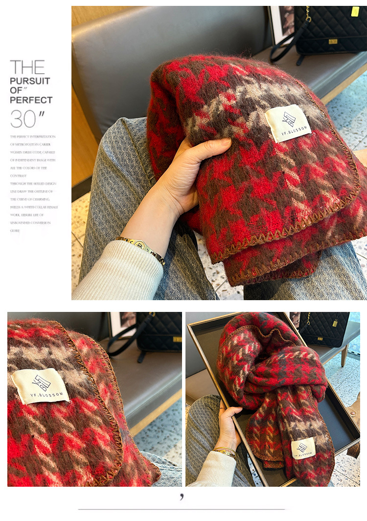 围巾女冬季2024新款韩版百搭红色几何包边披肩亲肤保暖仿羊绒围脖