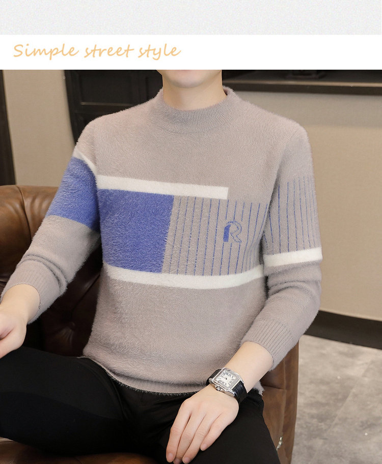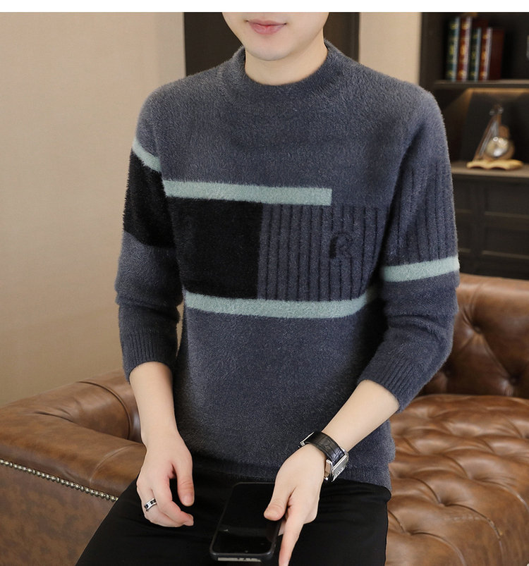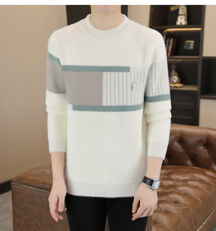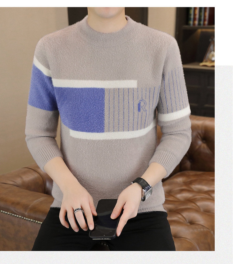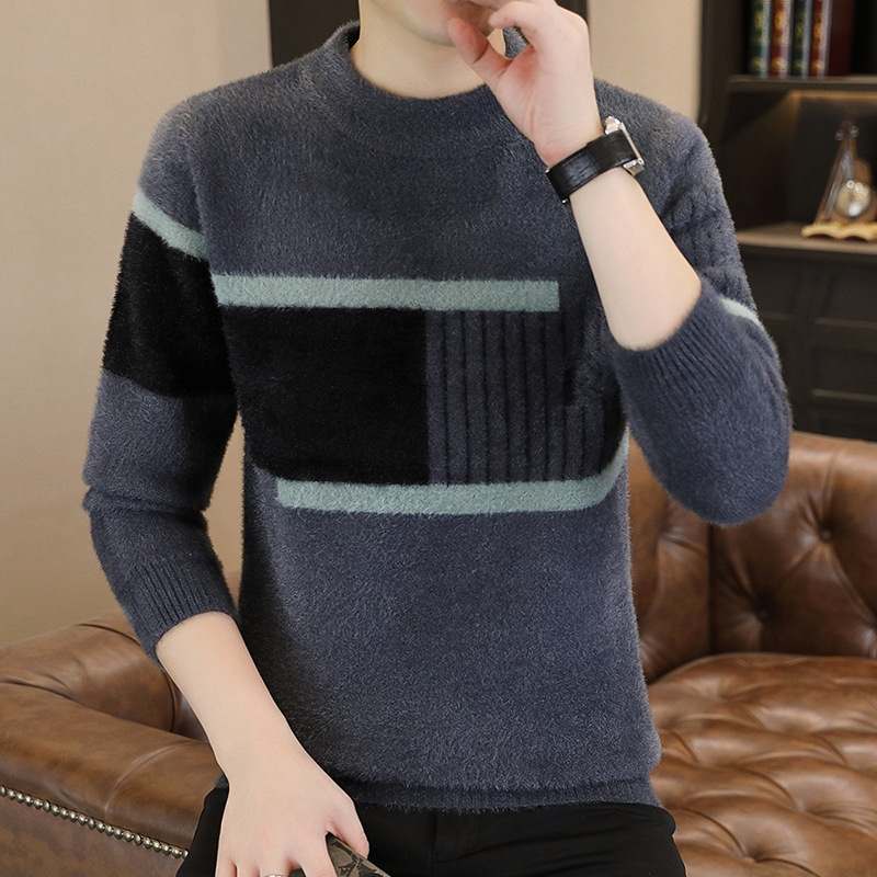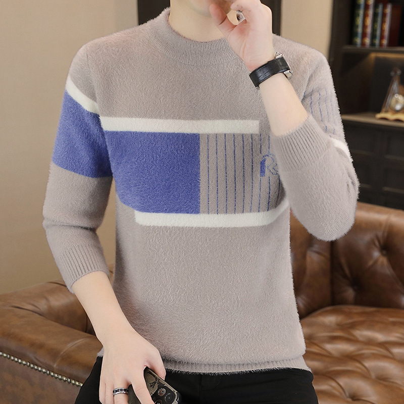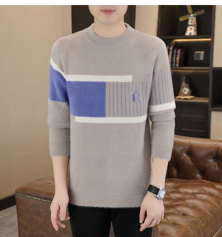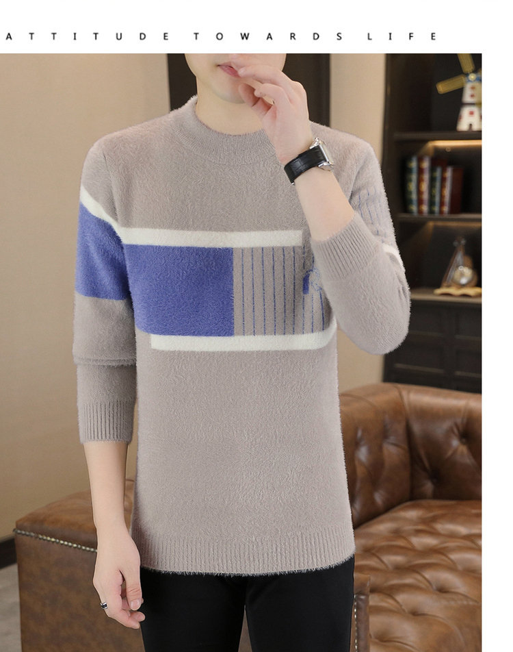 국경 간 대외 무역 AliExpress 폭발 니트 스웨터 남자 하프 터틀넥 모방 밍크 벨벳 옐로우 골든 밍크 스웨터 남자스토어 가기