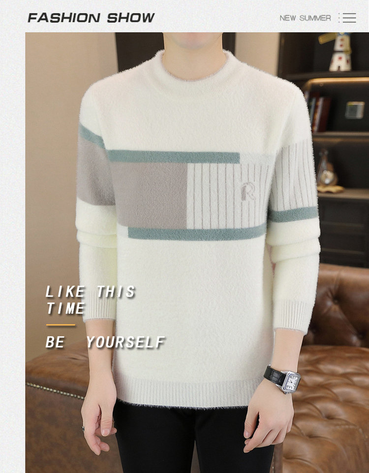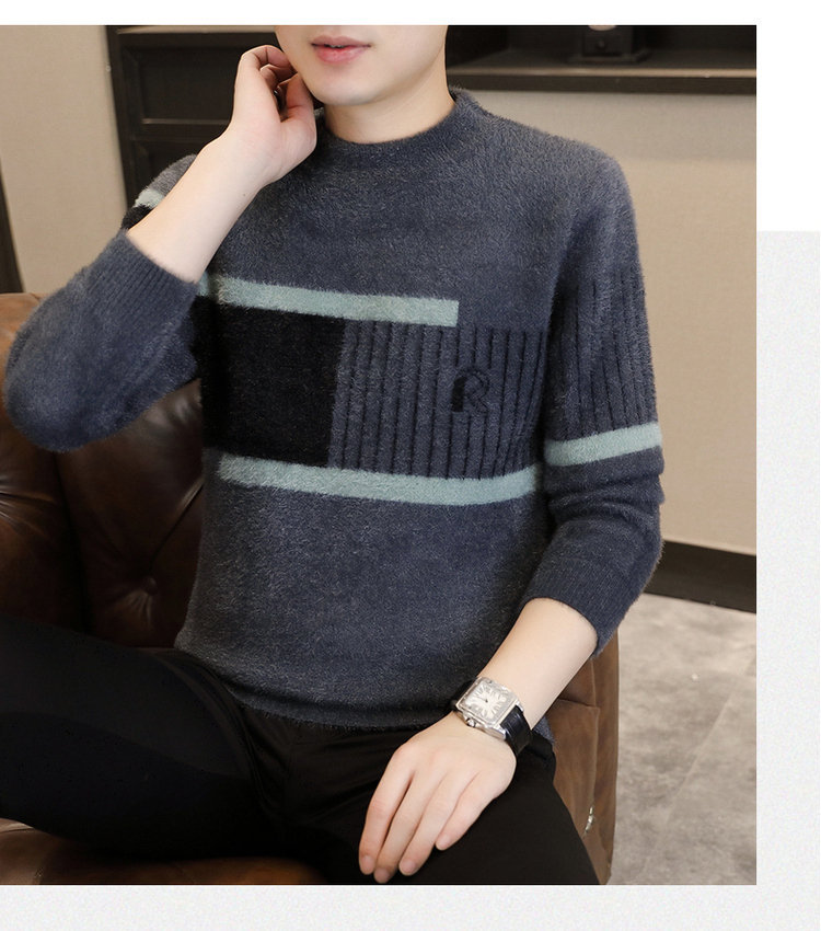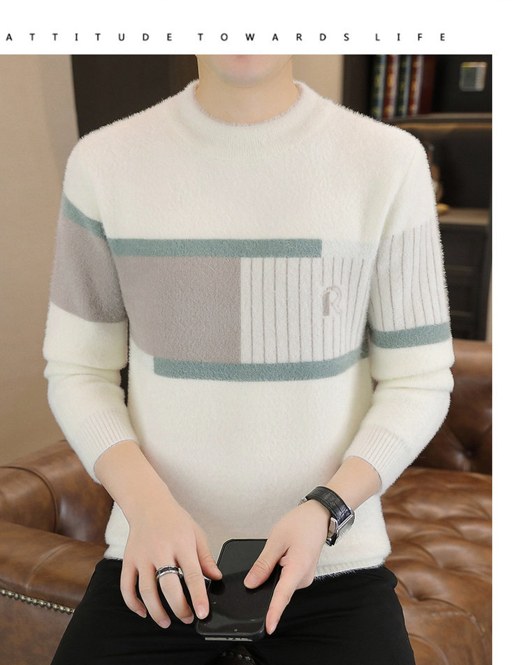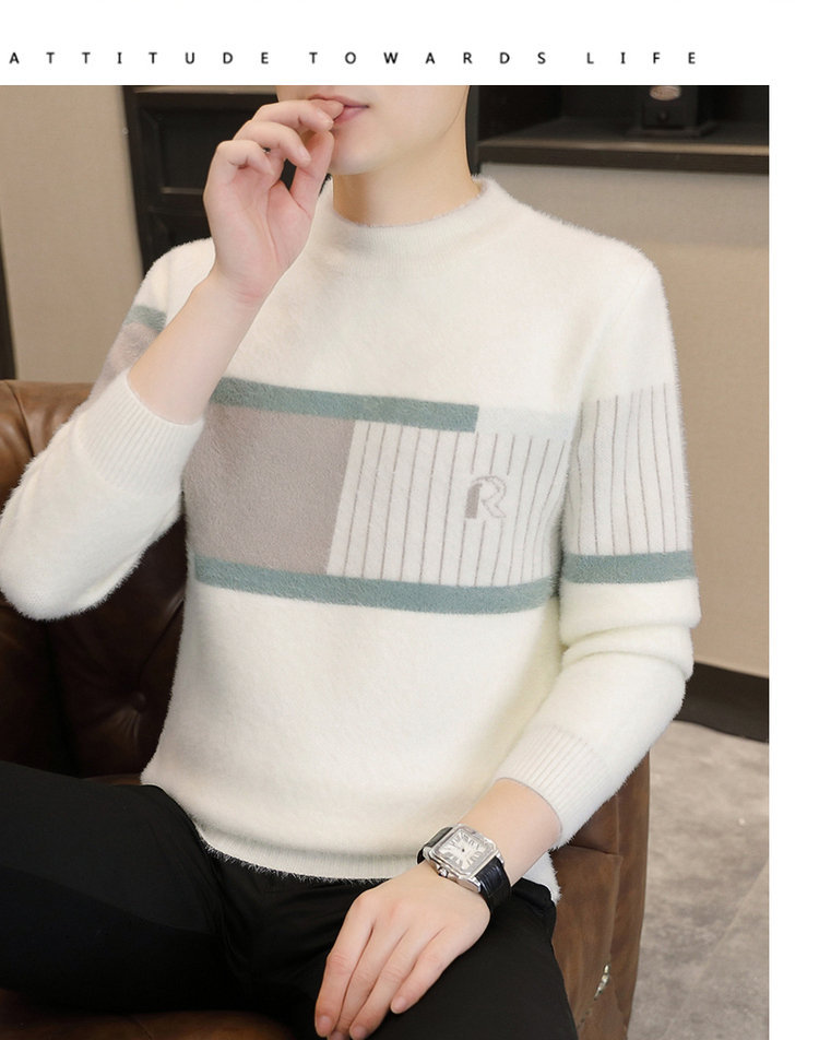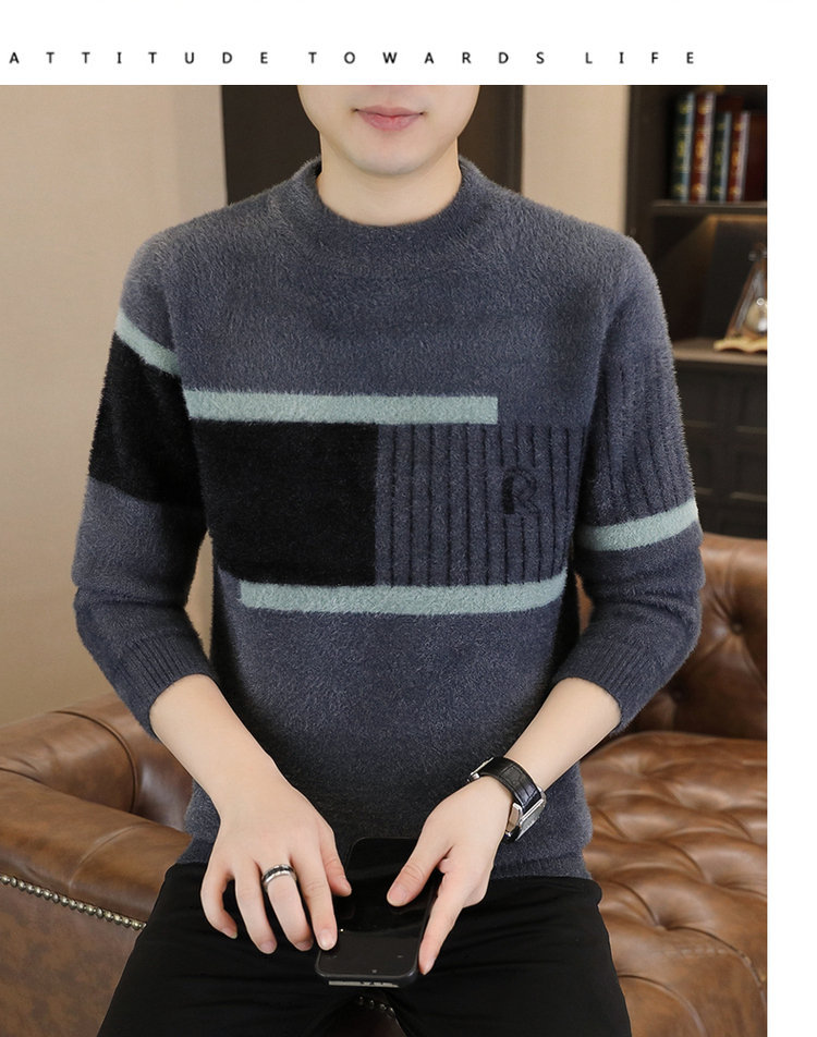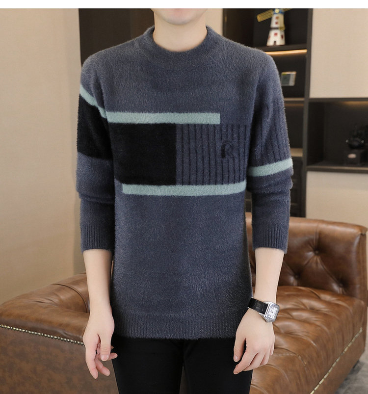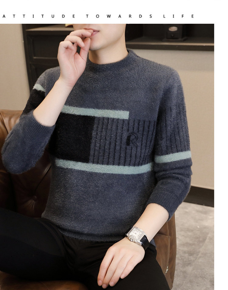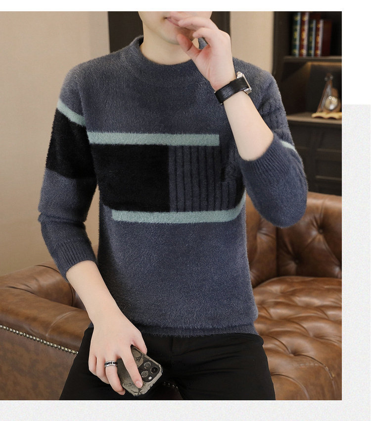 국경 간 대외 무역 AliExpress 폭발 니트 스웨터 남자 하프 터틀넥 모방 밍크 벨벳 옐로우 골든 밍크 스웨터 남자스토어 가기