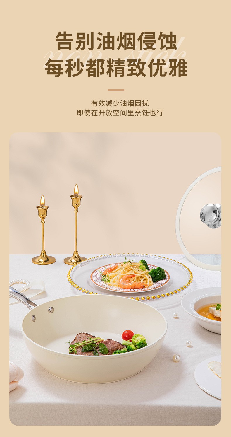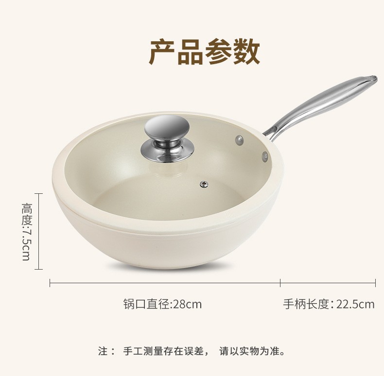 화이트 페블 가정용 팬 다기능 솔리드 컬러 스틱 팬 쉘 도자기 프라이팬 스틱 워크