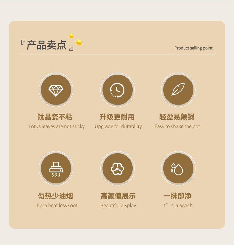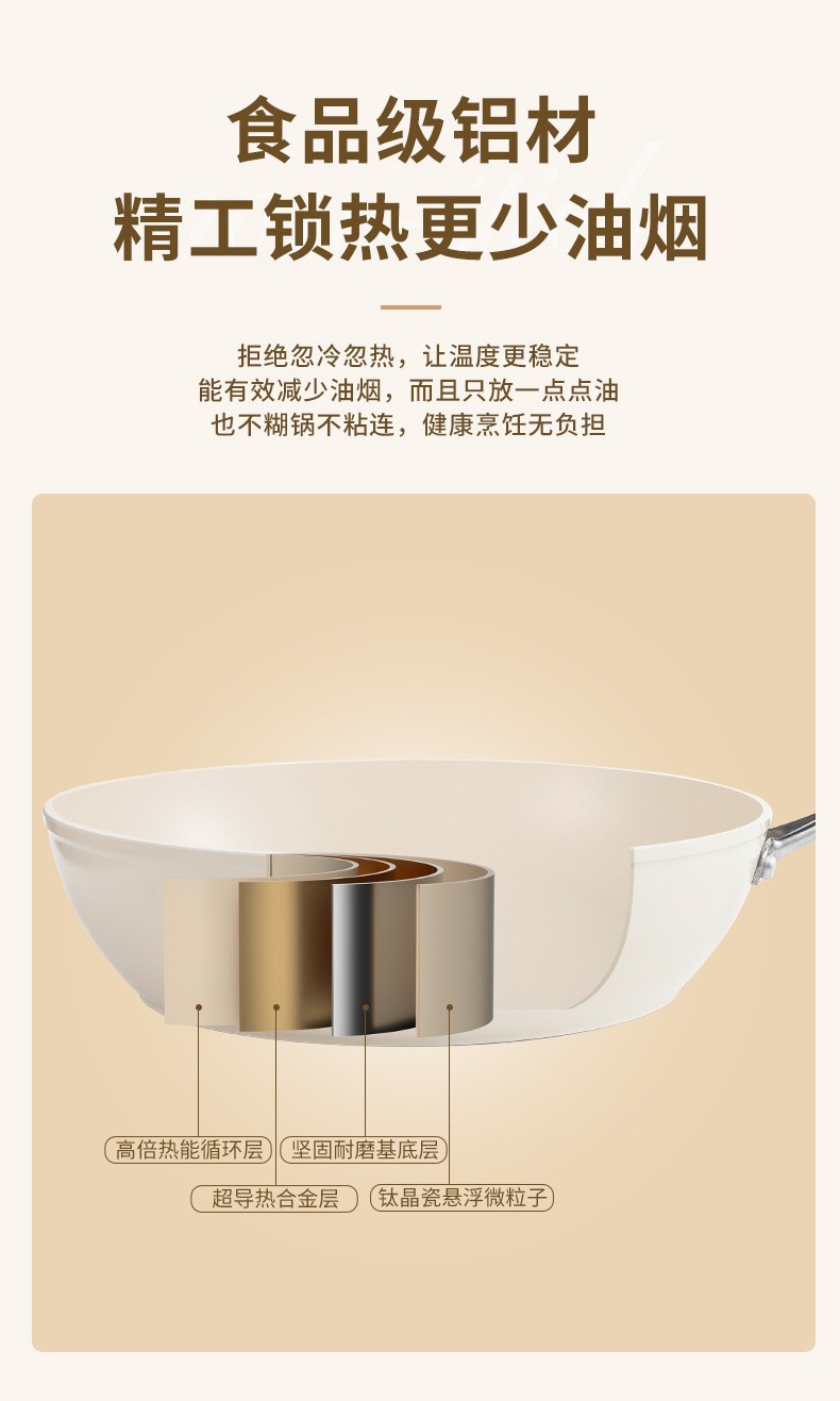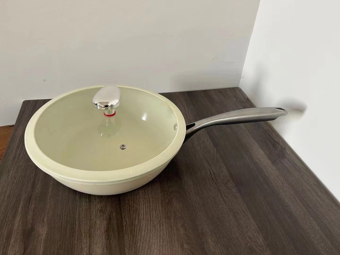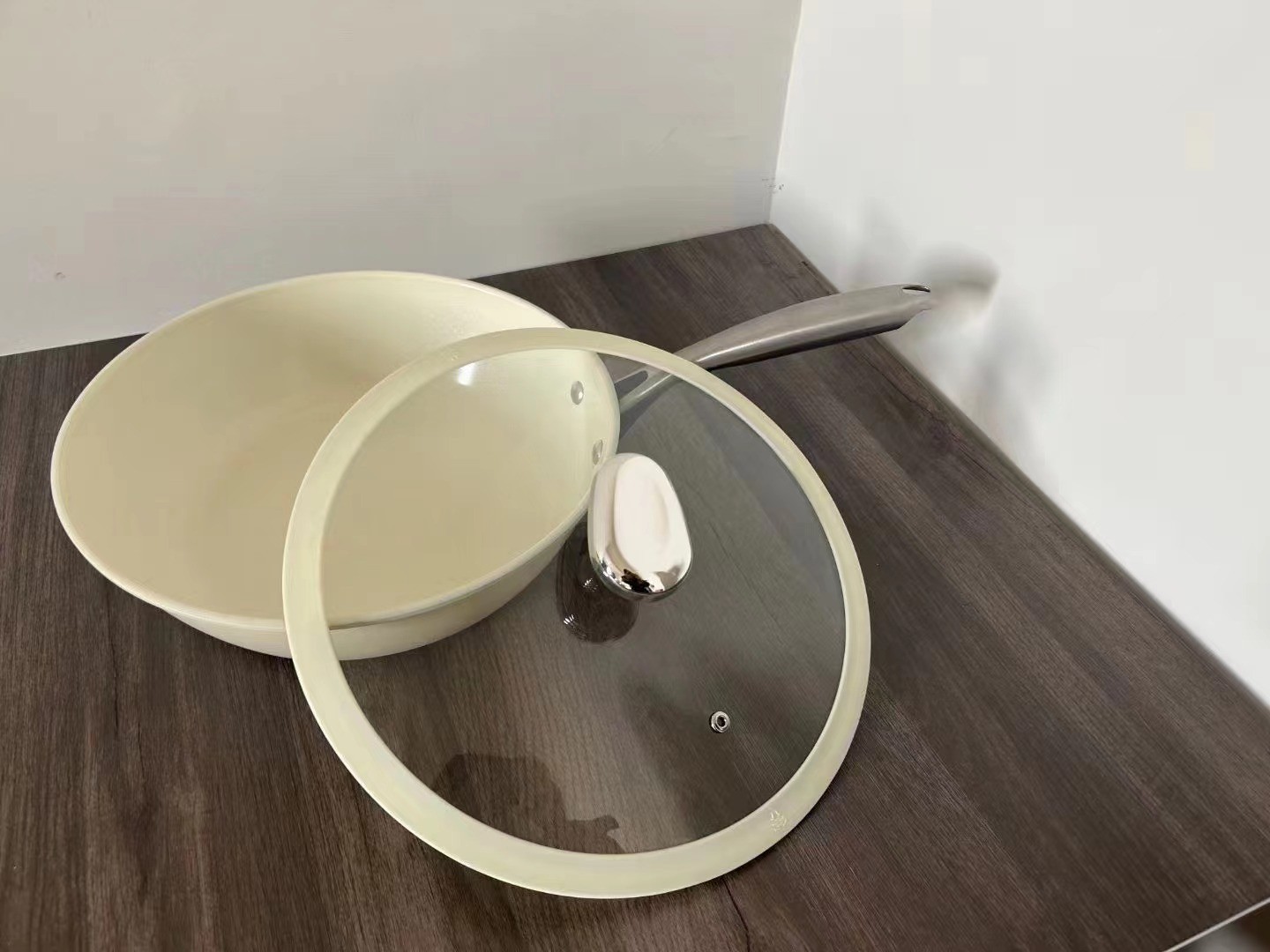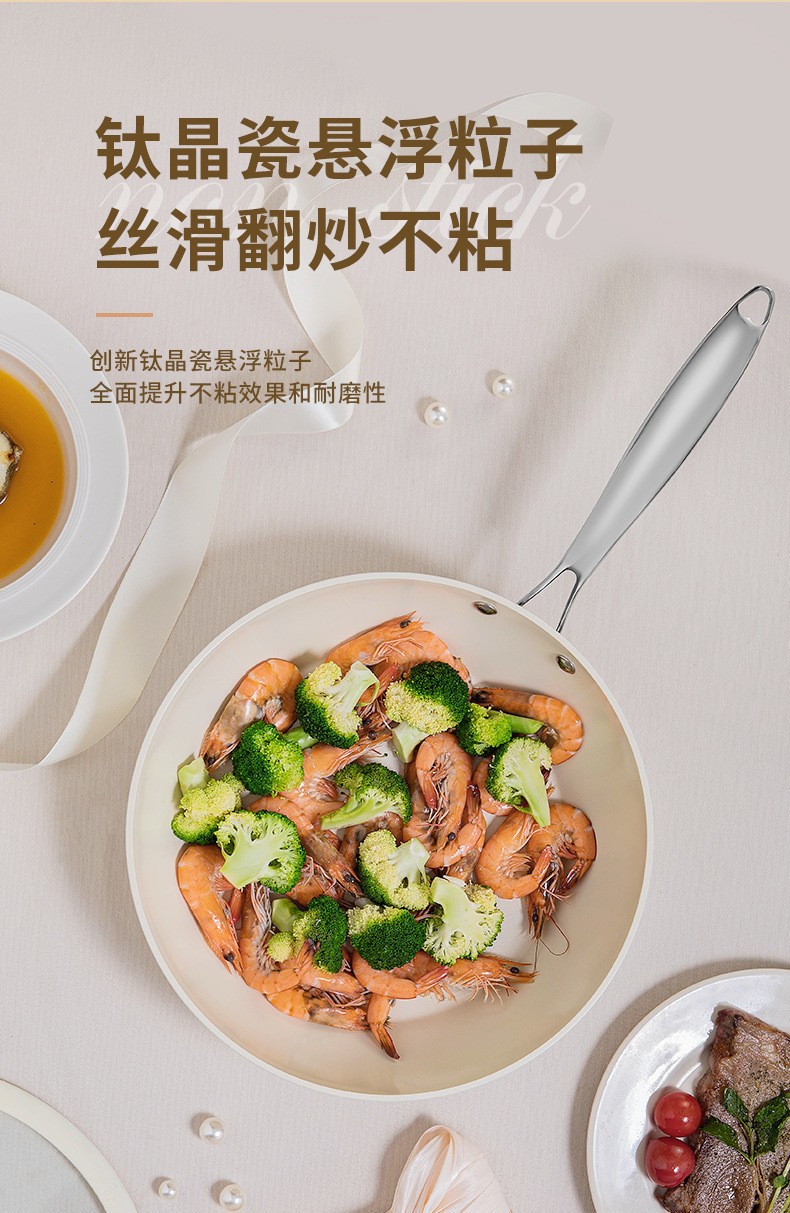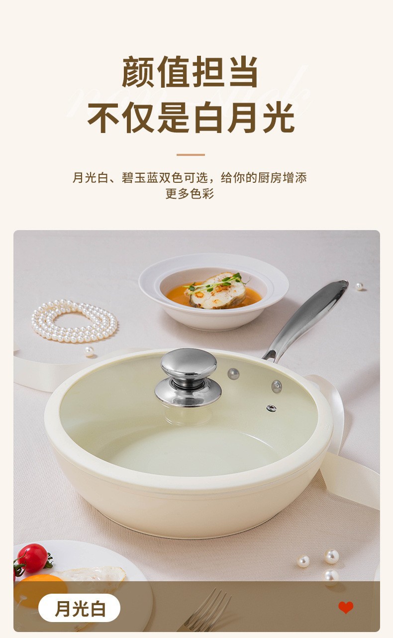 화이트 페블 가정용 팬 다기능 솔리드 컬러 스틱 팬 쉘 도자기 프라이팬 스틱 워크스토어 가기