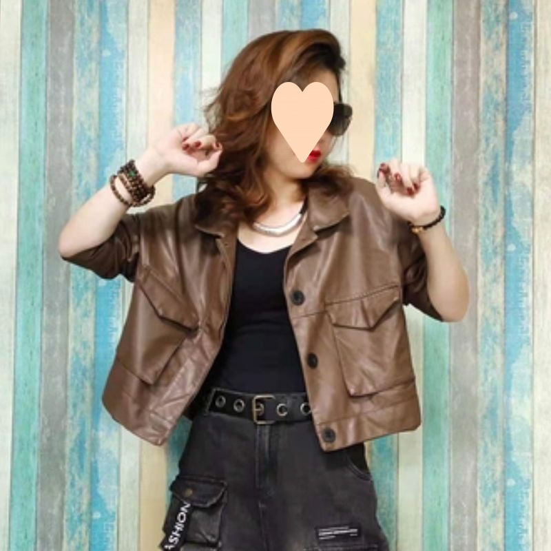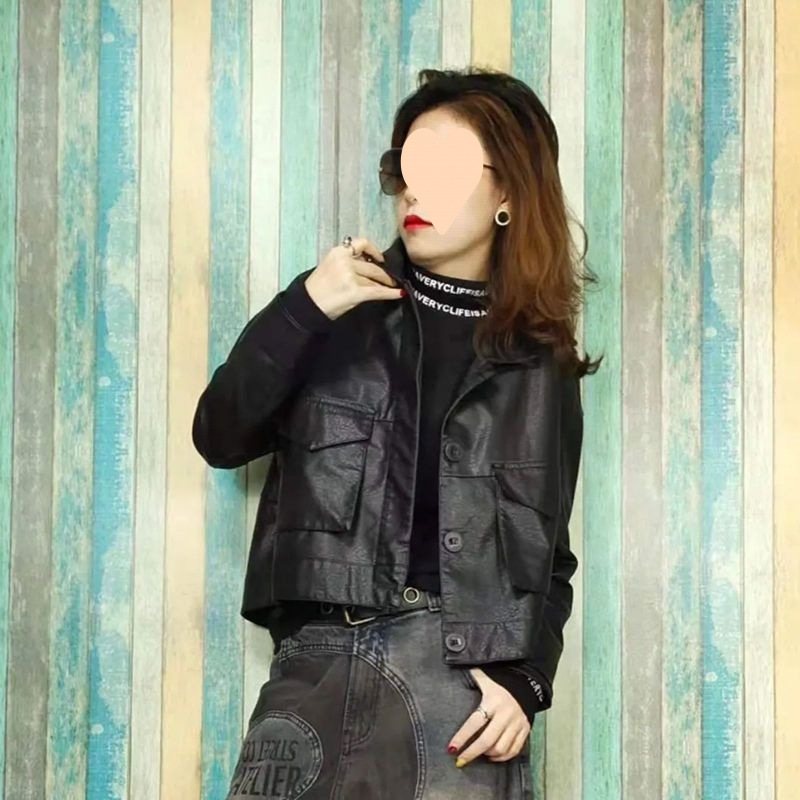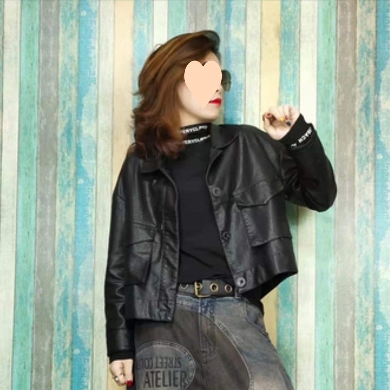유럽 역 2024 가을과 겨울 새로운 패션 올 매치 간단한 단색 짧은 가죽 오토바이 재킷 코트 여성 패션스토어 가기