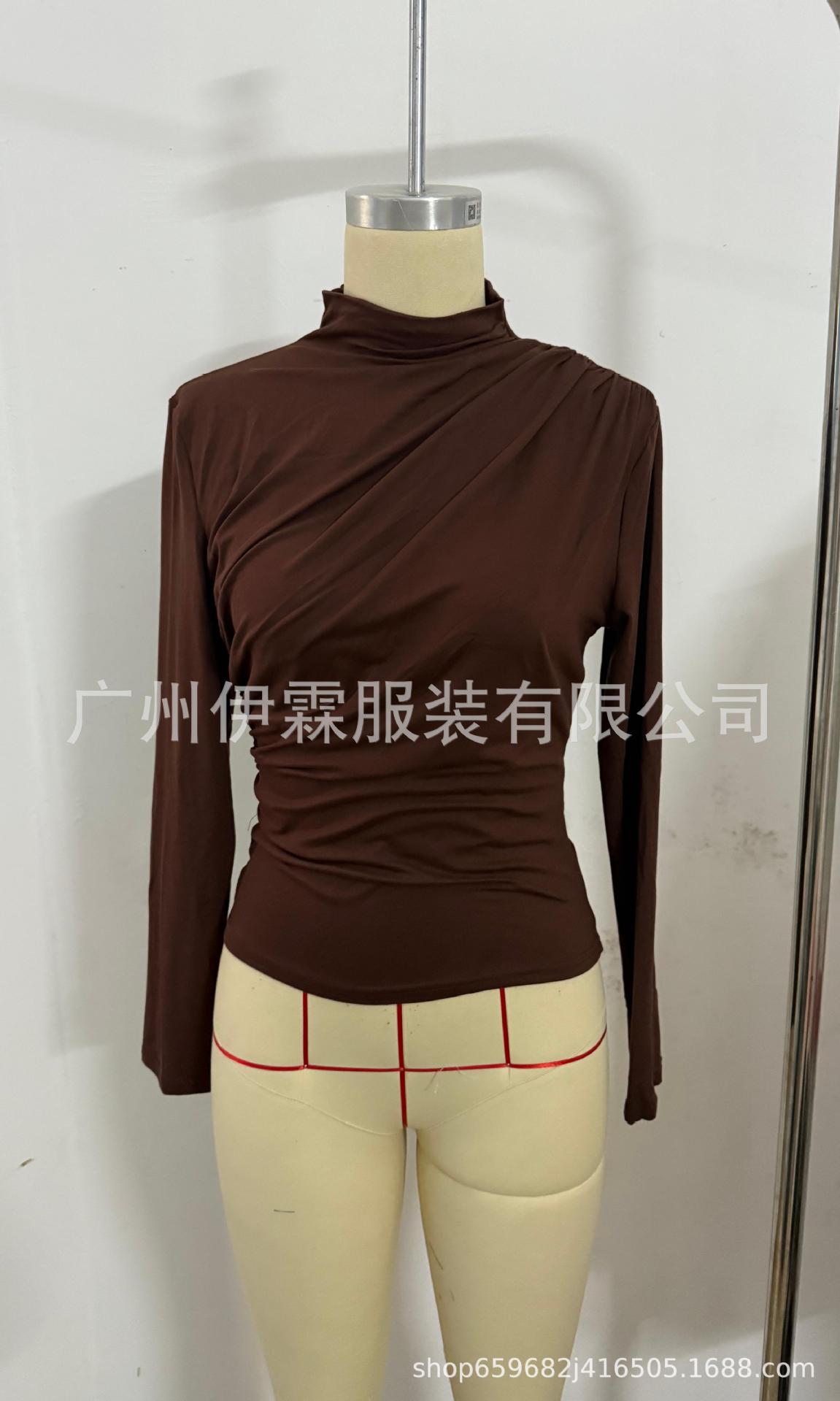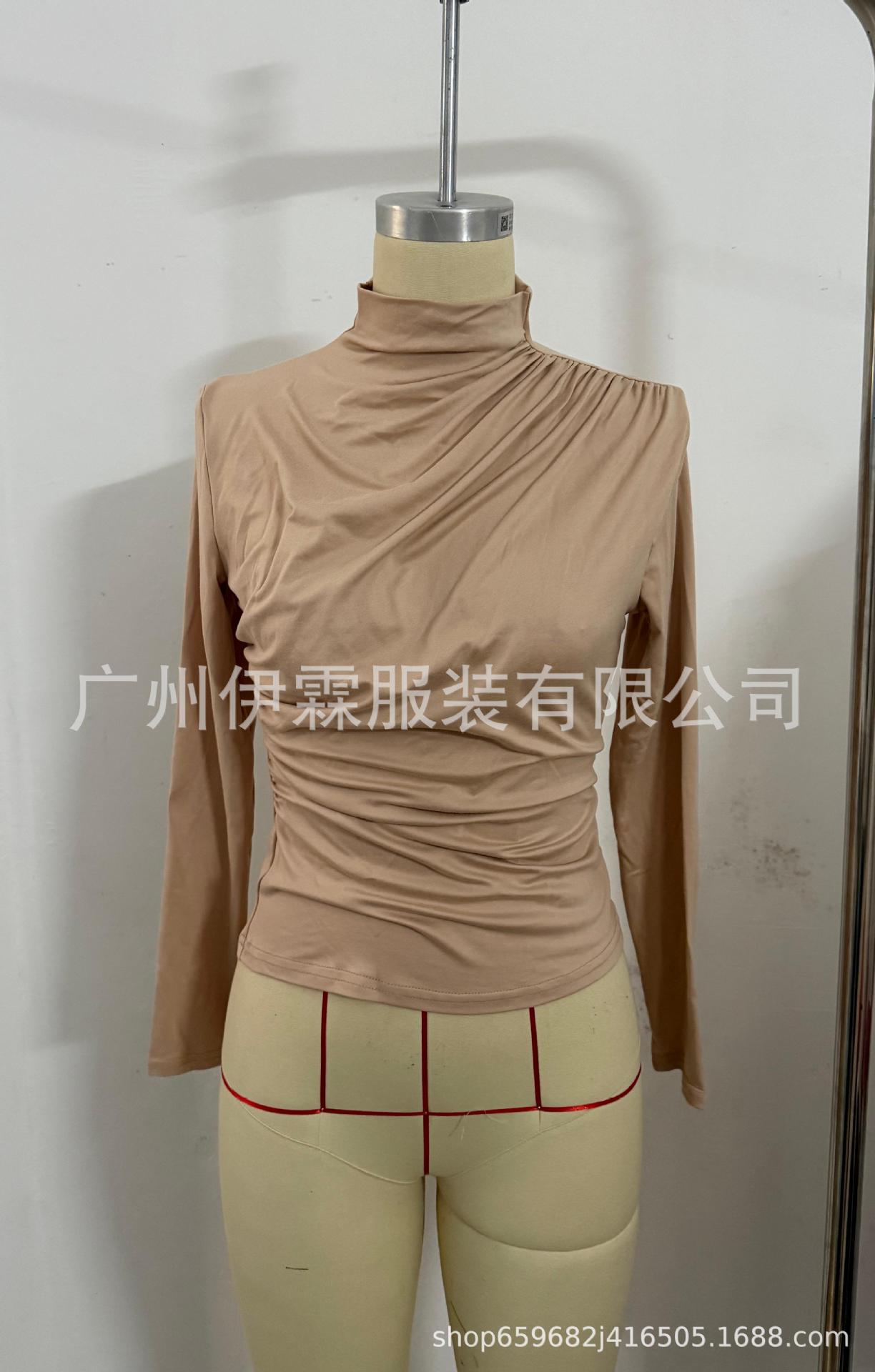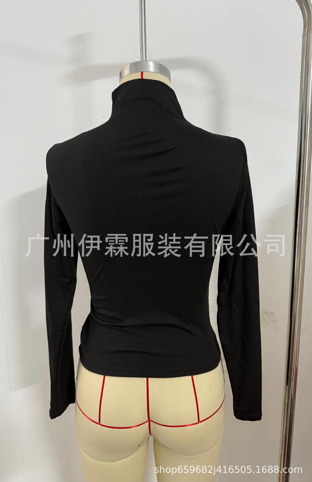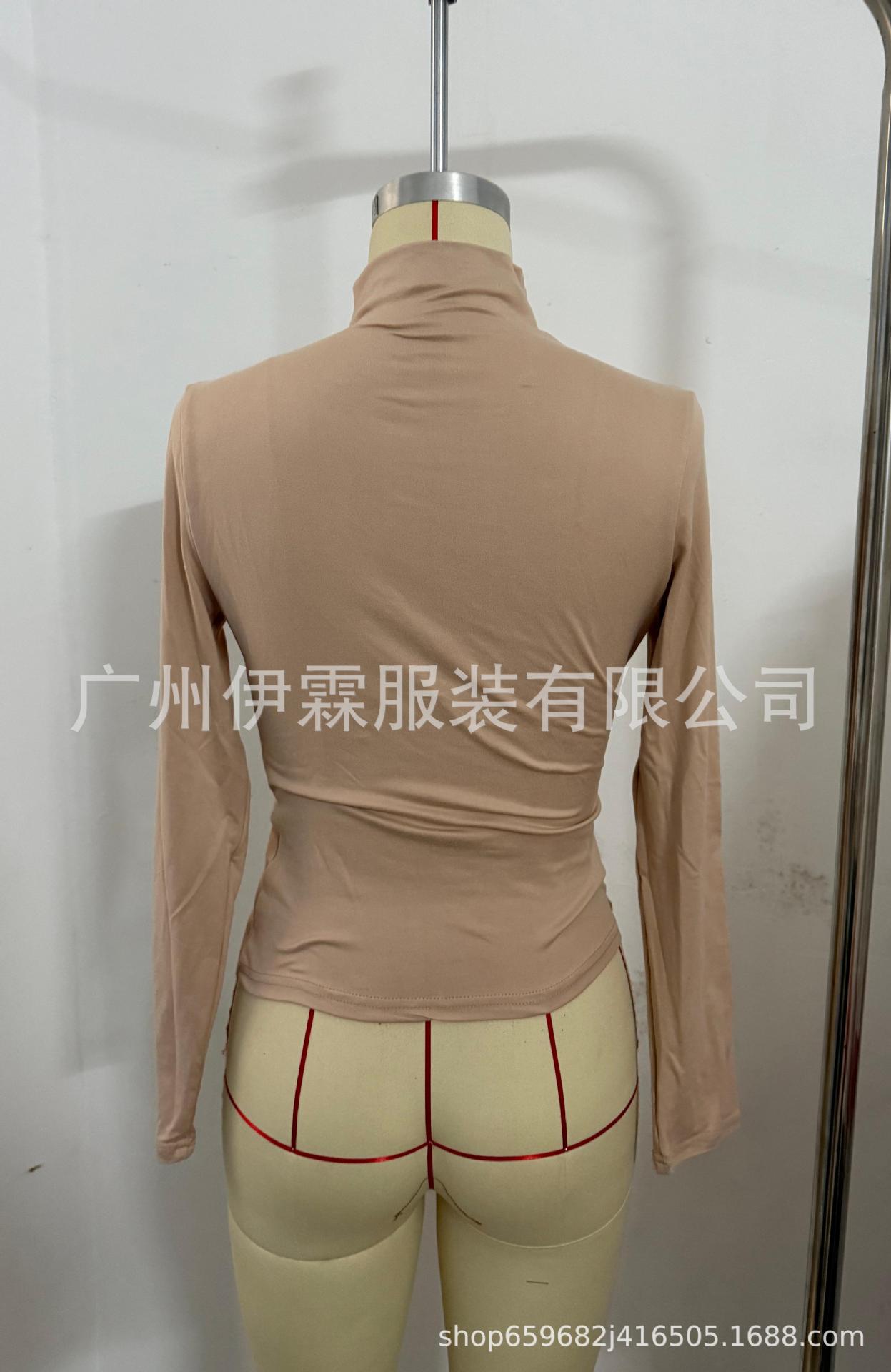 2024 유럽 및 미국 국경을 넘는 아마존 가을 겨울 신상 긴팔 하의 셔츠 탑 슬림핏 티셔츠 여성 캐주얼 및 다용도