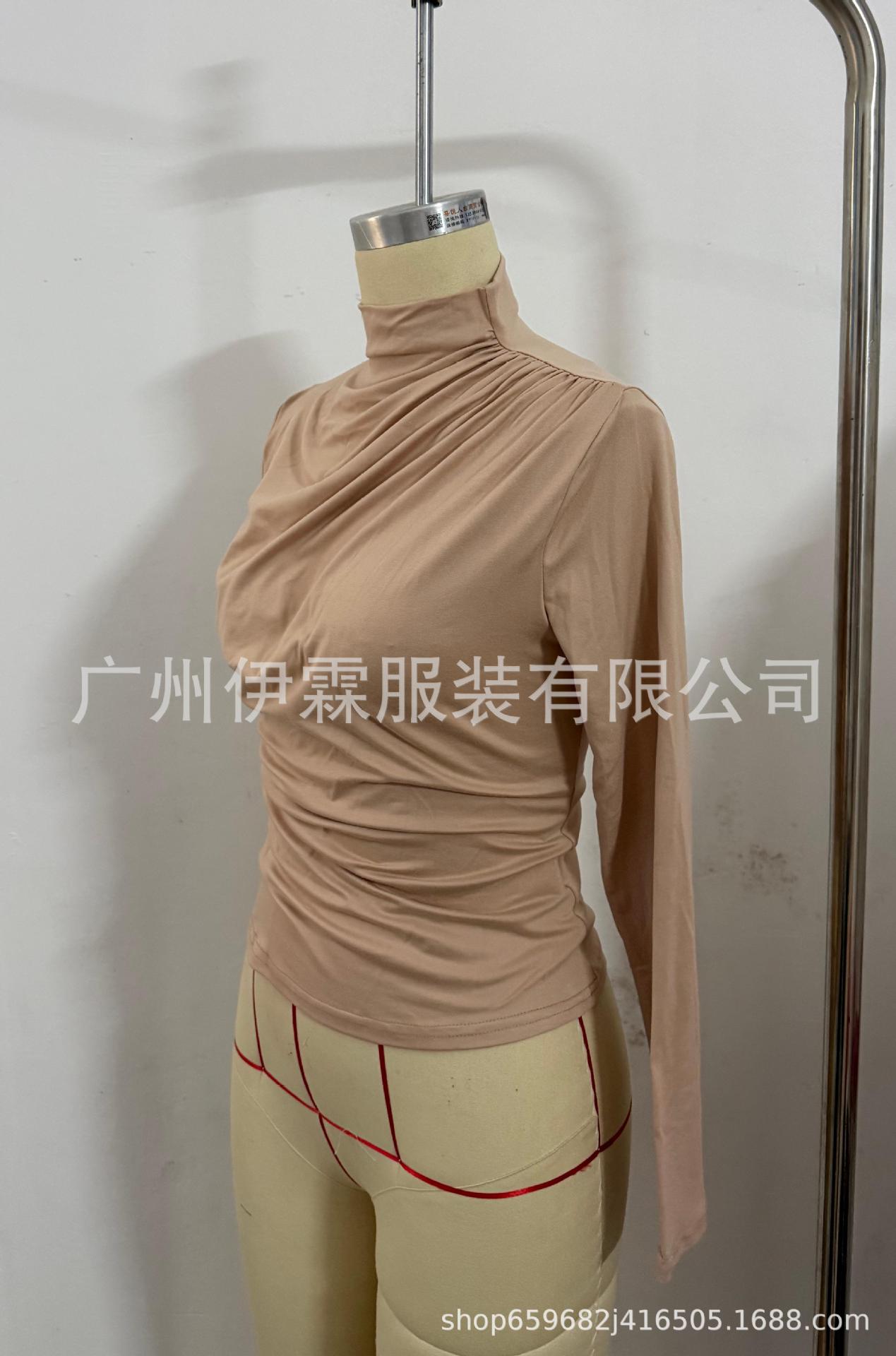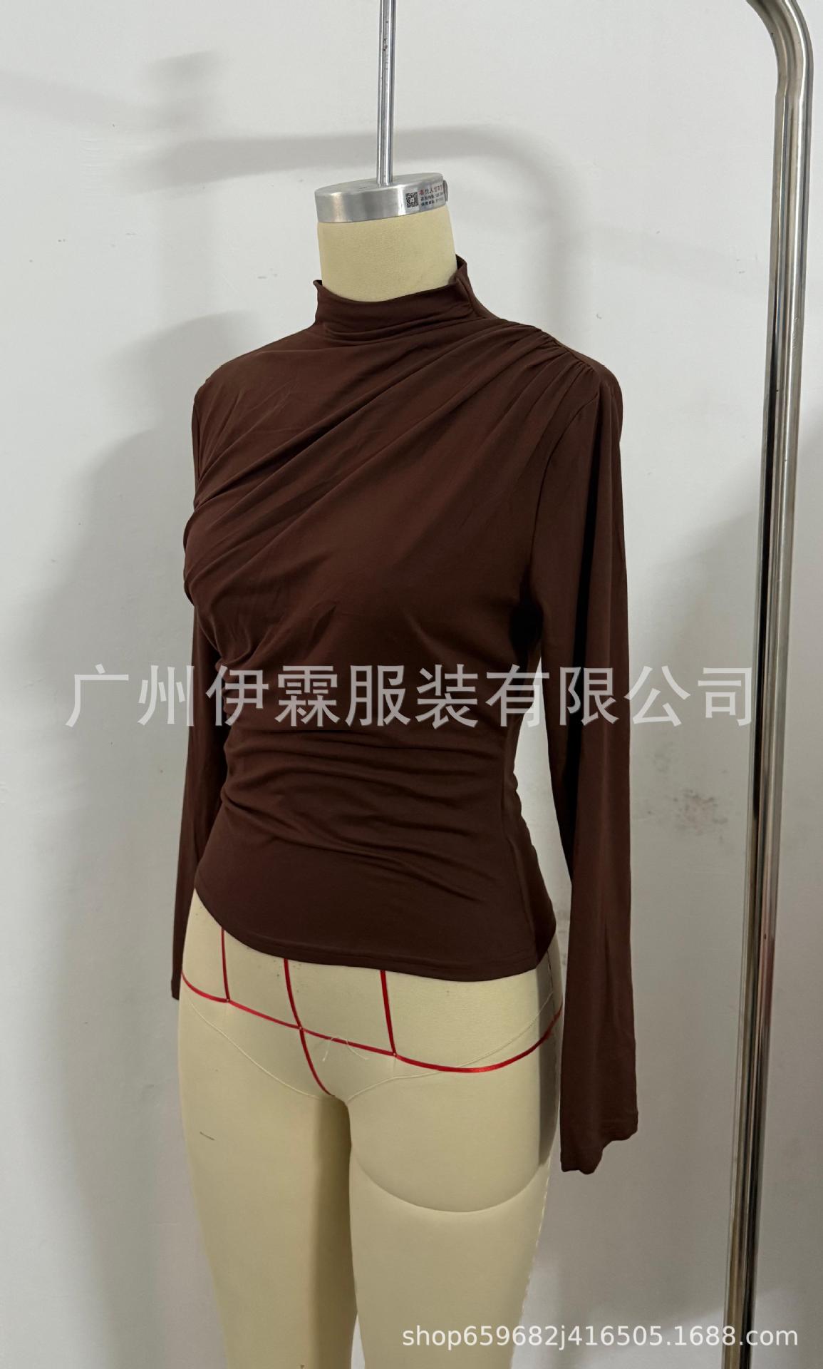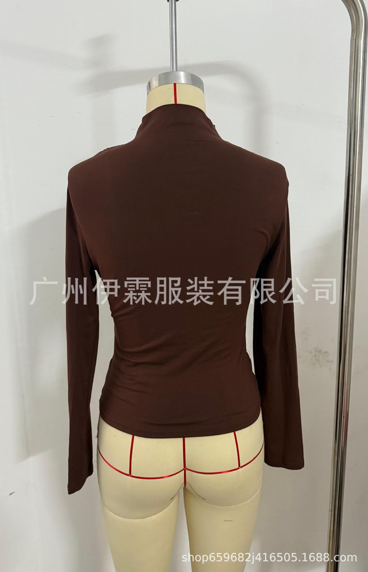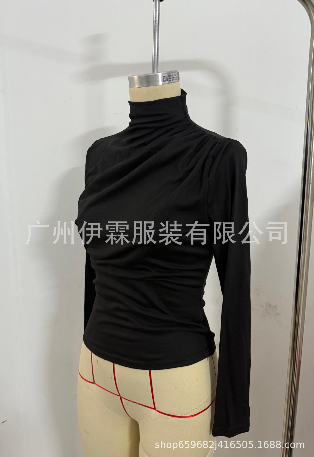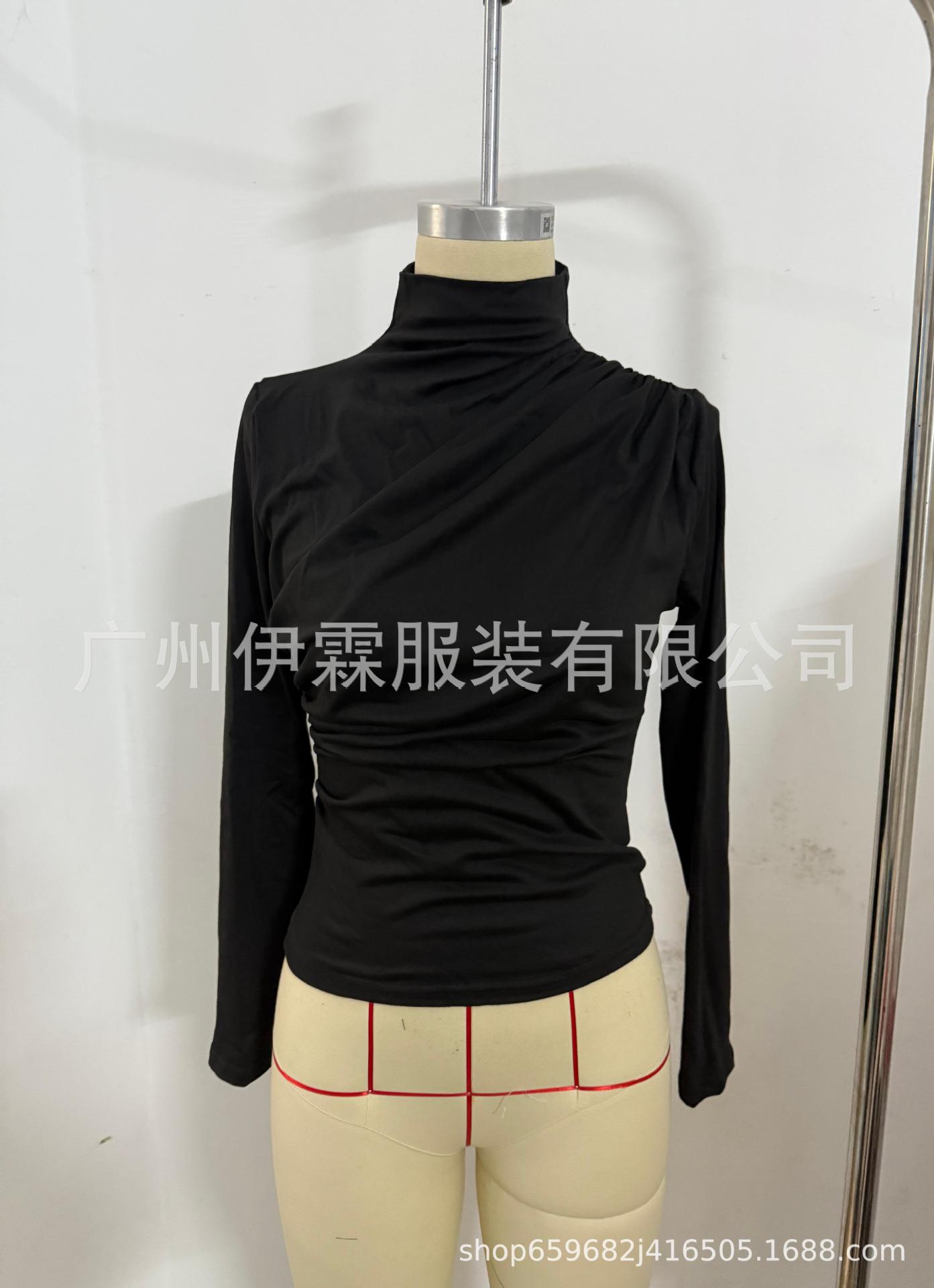 2024 유럽 및 미국 국경을 넘는 아마존 가을 겨울 신상 긴팔 하의 셔츠 탑 슬림핏 티셔츠 여성 캐주얼 및 다용도