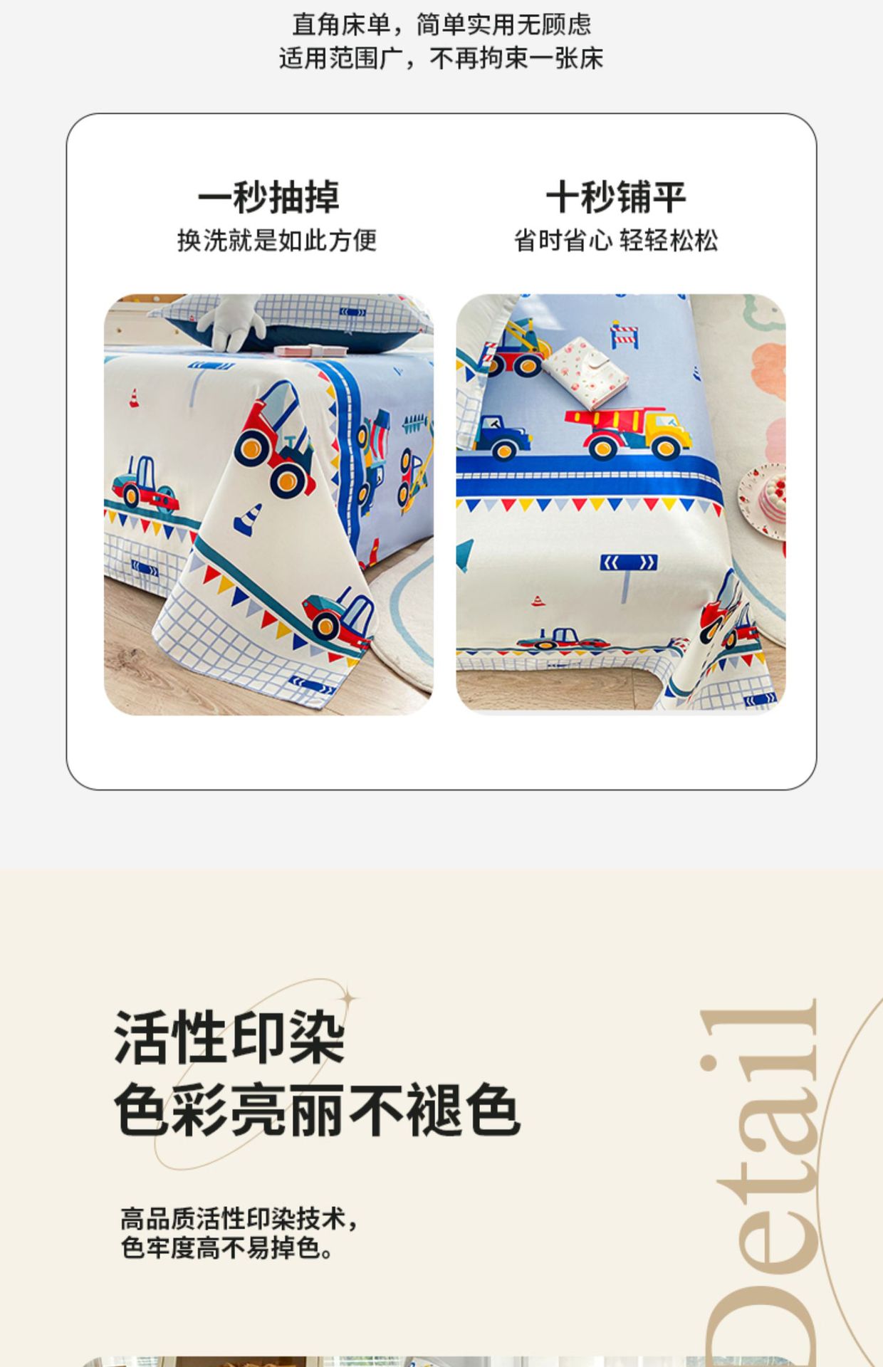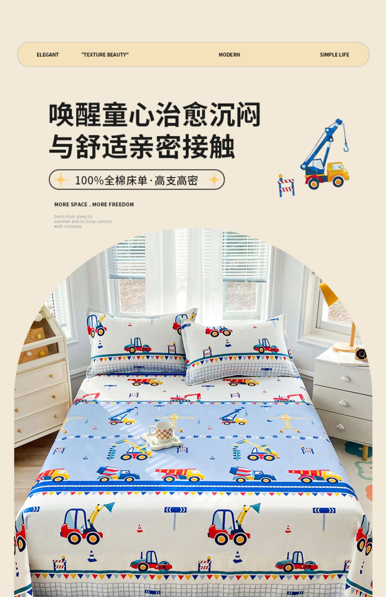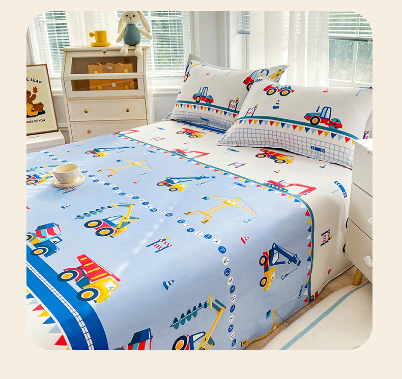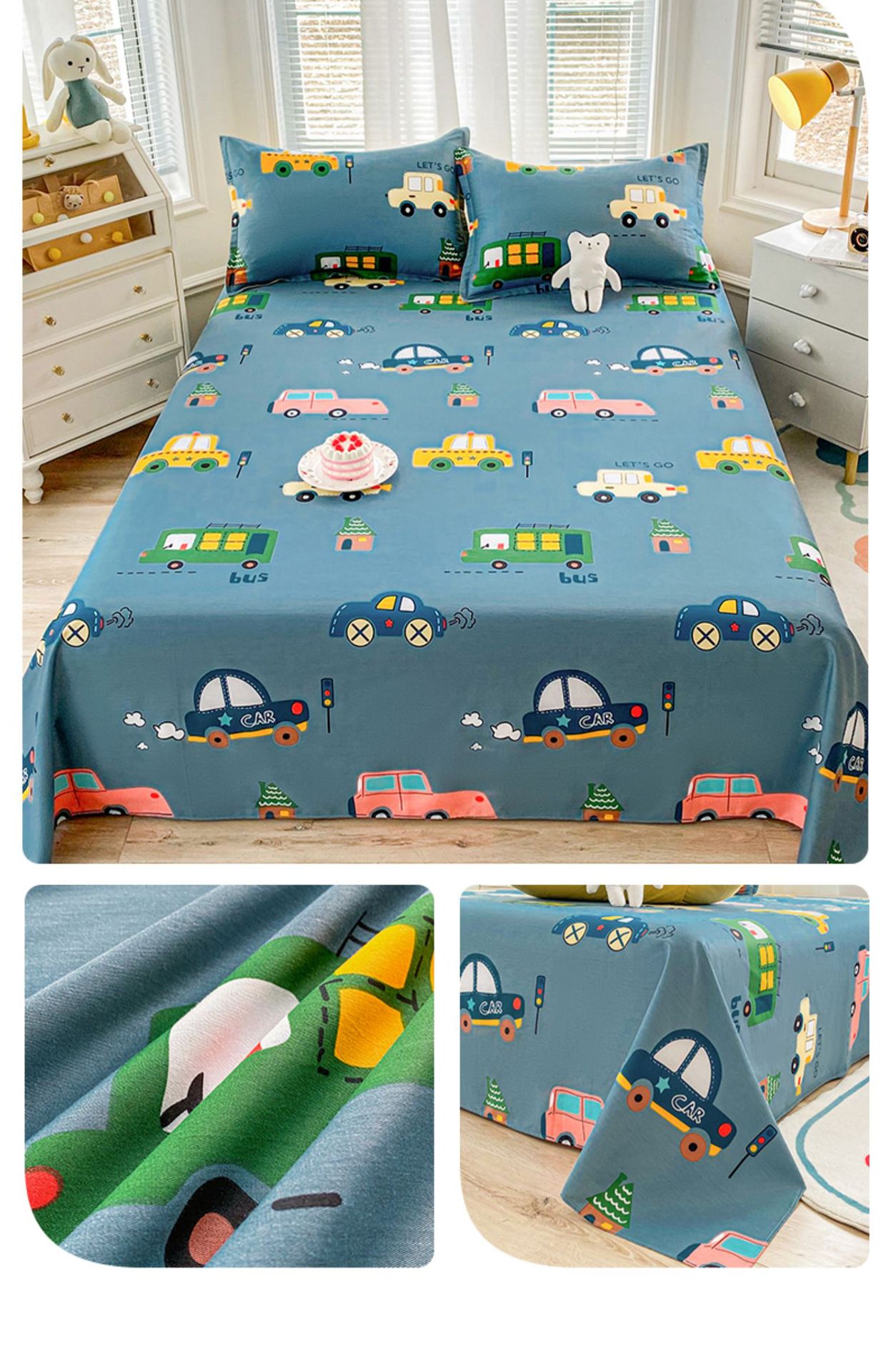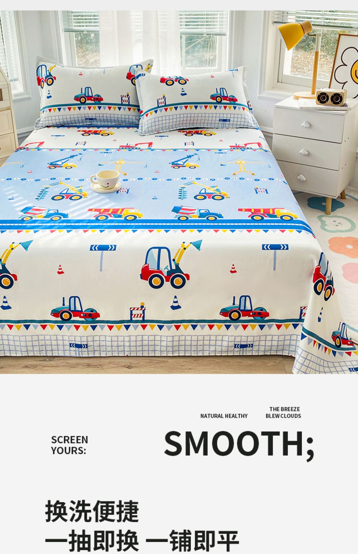 어린이 만화 자동차 순면 침대 시트 원피스 면 100 침대 베개 두 조각 세트 1.2 싱글 침대 1.5m스토어 가기