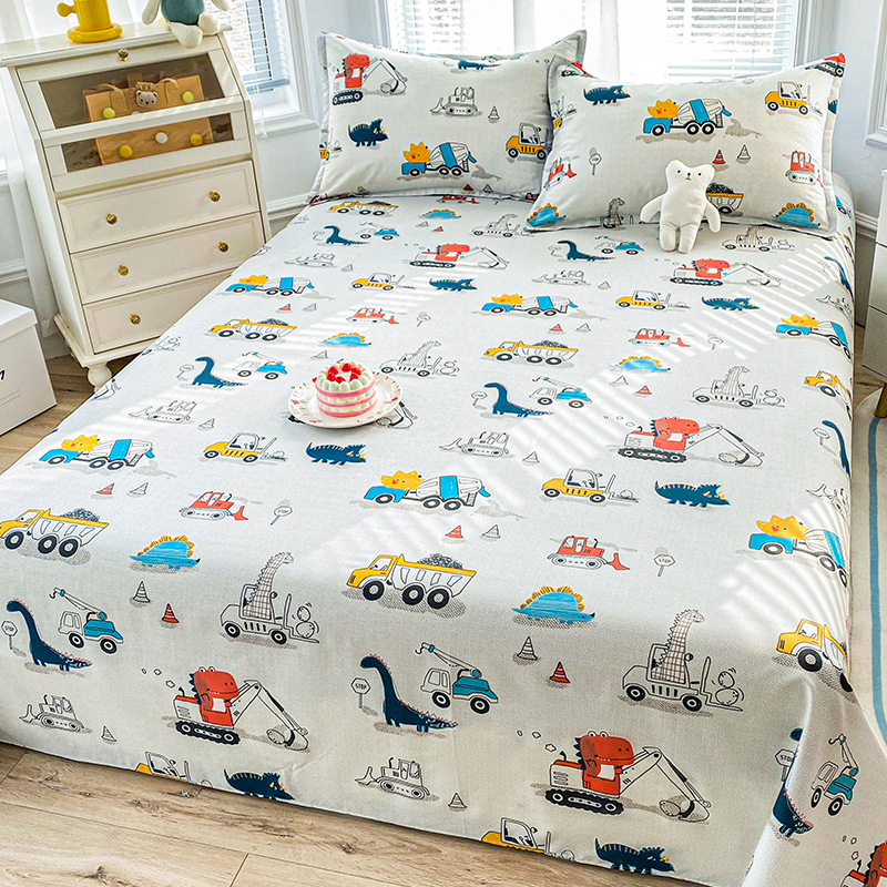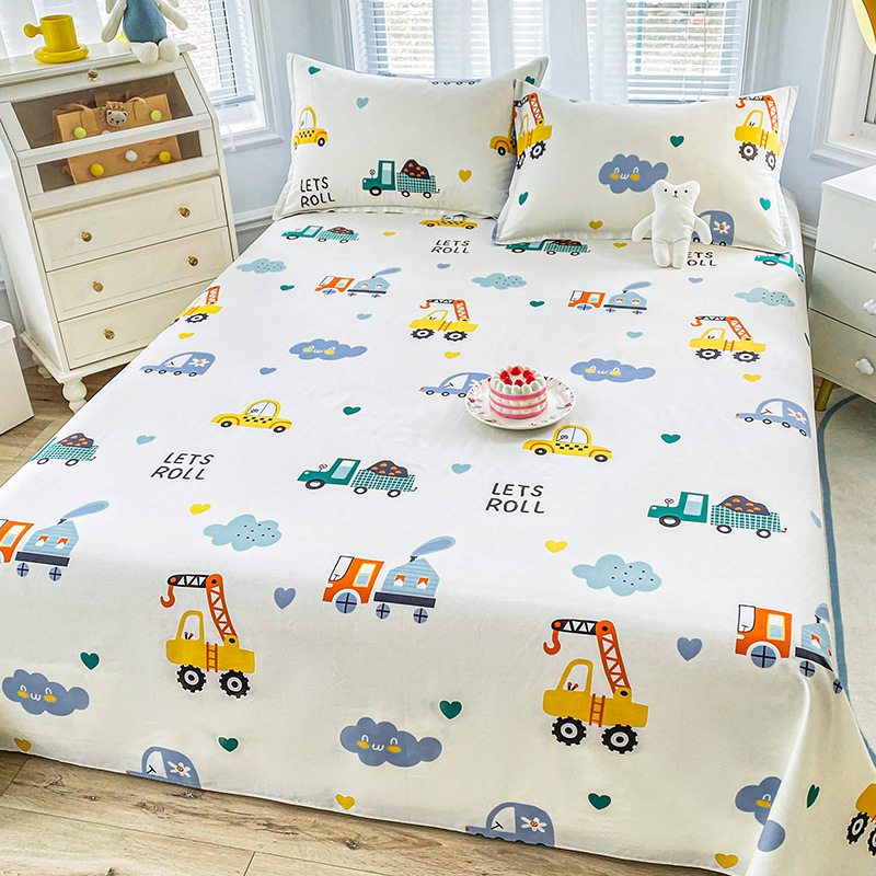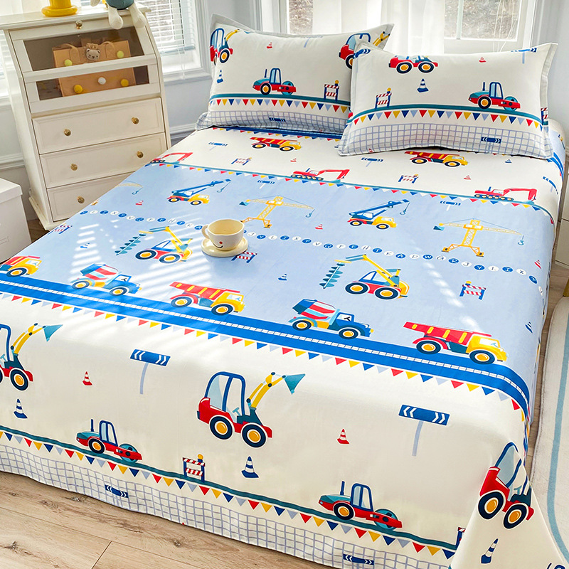 어린이 만화 자동차 순면 침대 시트 원피스 면 100 침대 베개 두 조각 세트 1.2 싱글 침대 1.5m