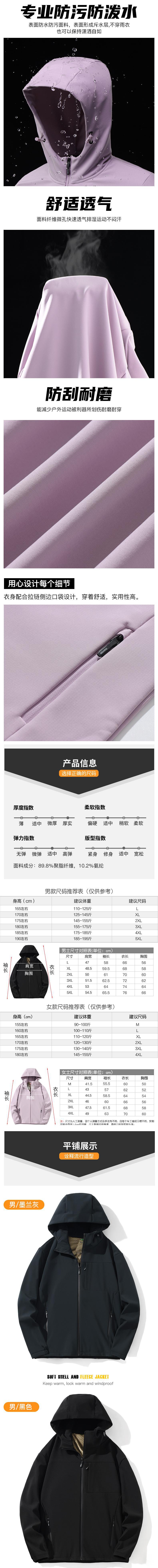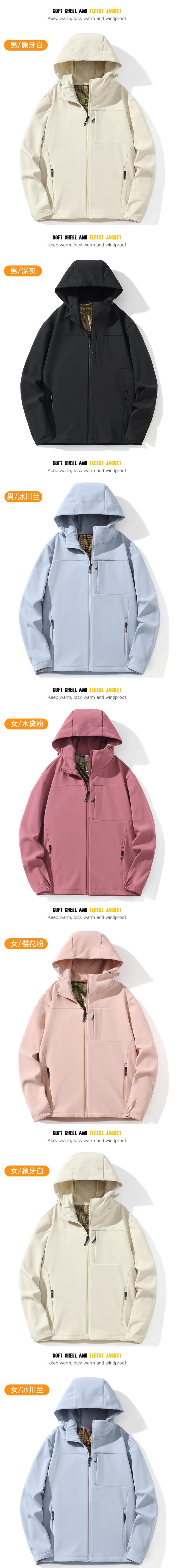 봄과 가을 새로운 소프트 쉘 의류 남성용 야외 싱글 레이어 충전 의류 여성용 방풍 방수 양털 옷 후드 카디건 재킷