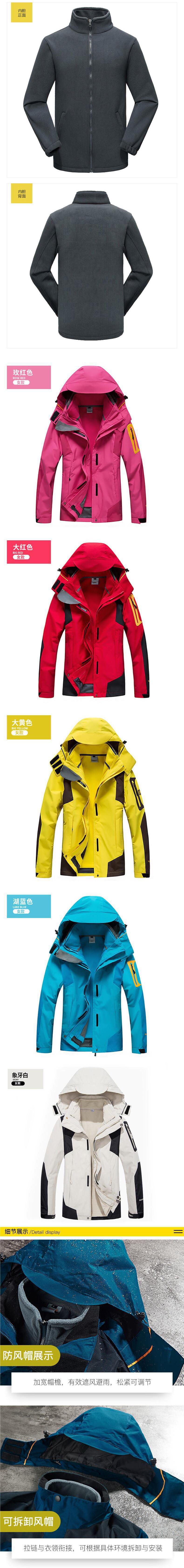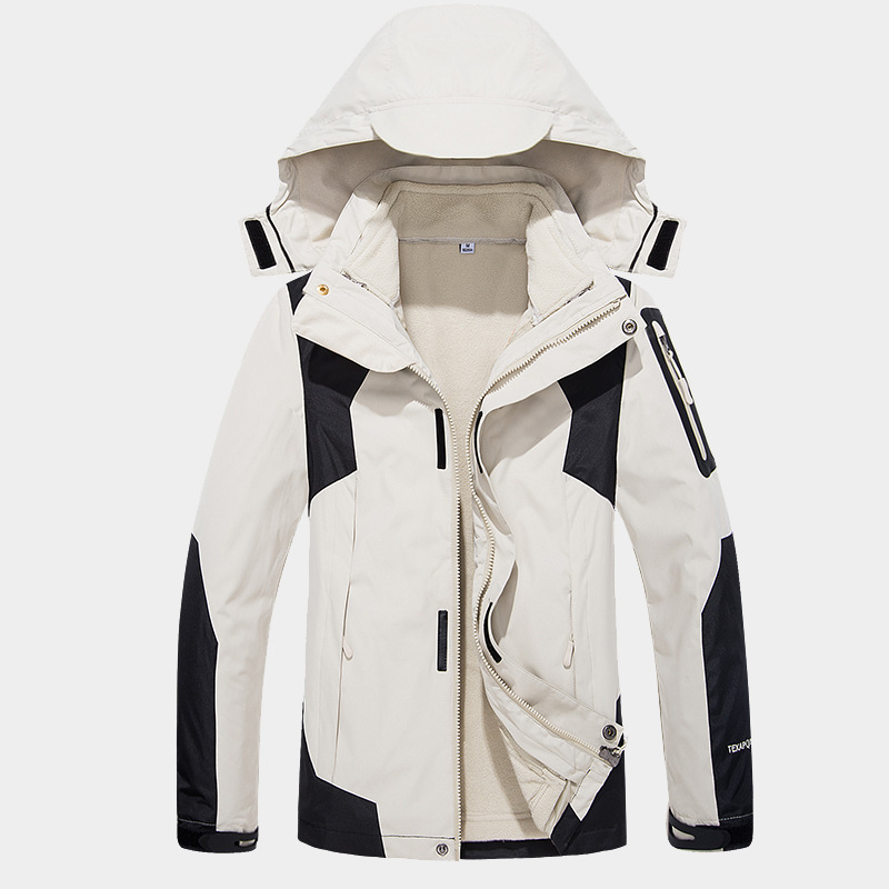 국경 간 야외 등산 세트 기모 두꺼운 라이너 분리 가능한 러시 워크 의류 남성 3 대 1 패션 브랜드 투피스 세트