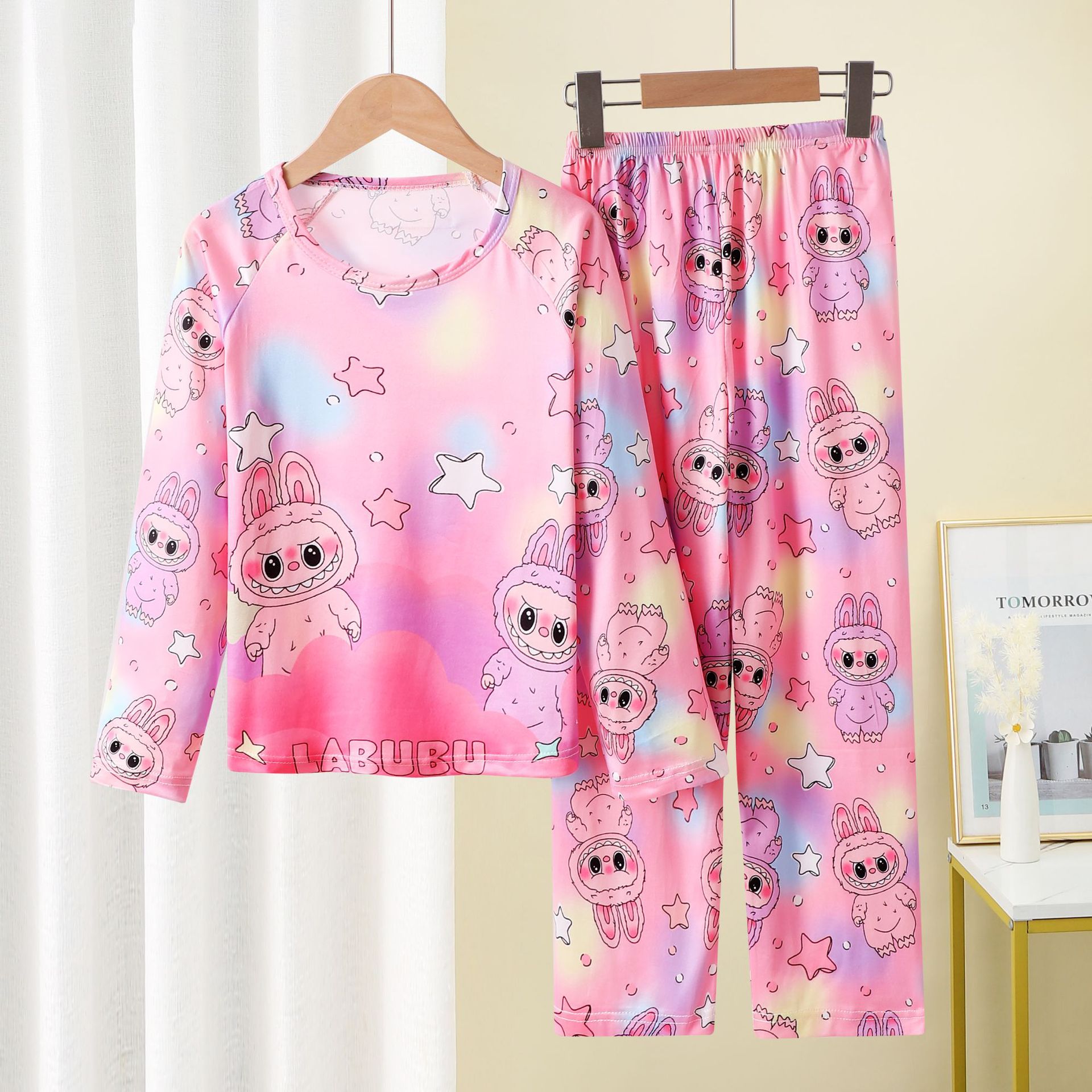 국경 간 소녀 잠옷 얇은 긴팔 어린이 2024 새로운 봄과 가을 소녀 큰 소년 가을 서양식