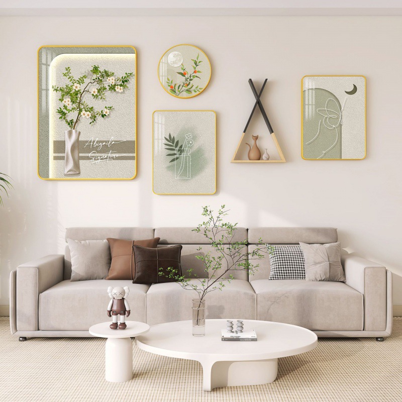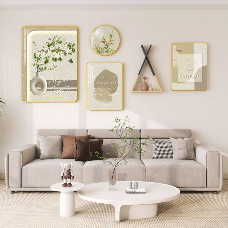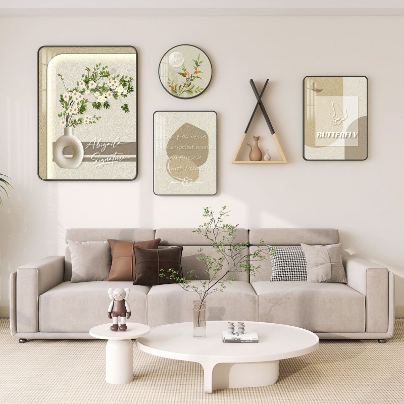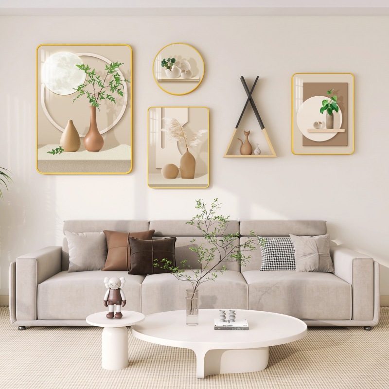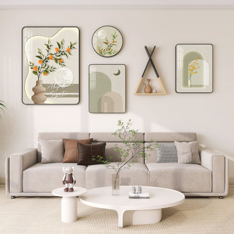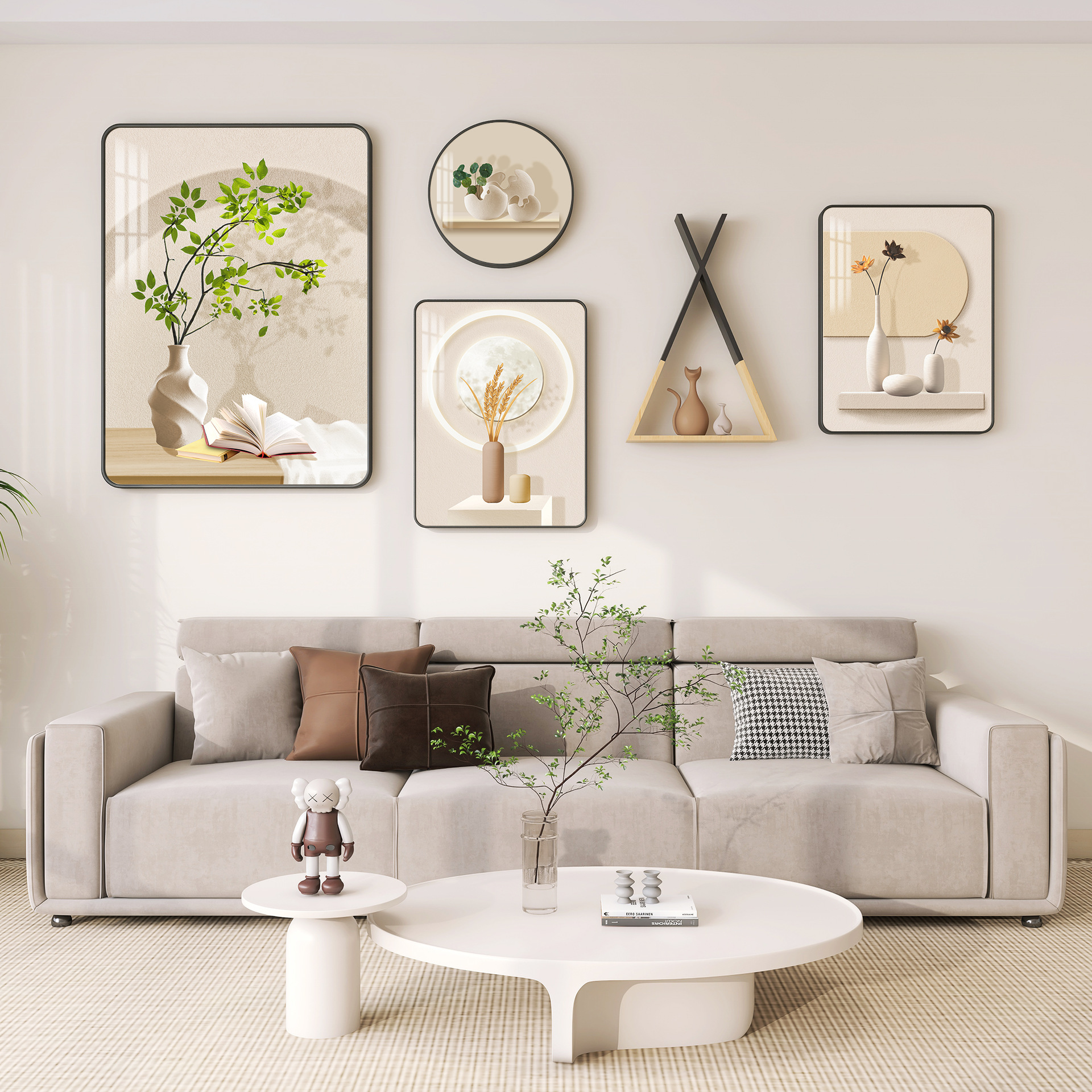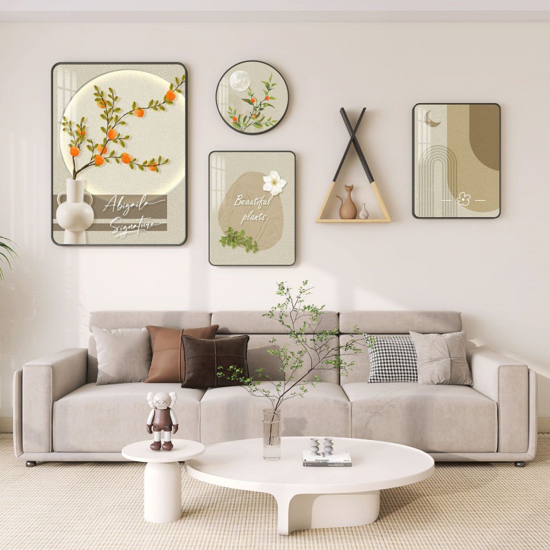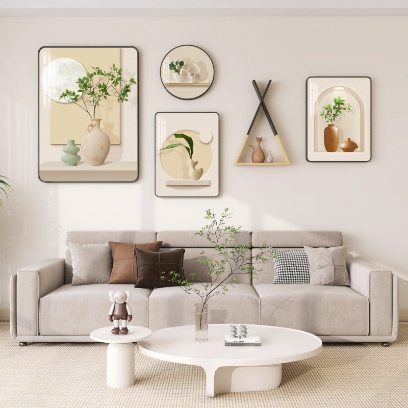 크림 스타일 거실 장식 고급 감각 소파 배경 벽 녹색 식물 교수형 그림 북유럽 간단한 모란디 그림스토어 가기