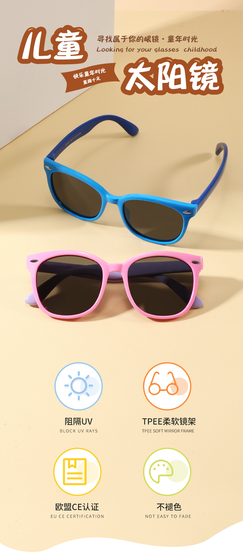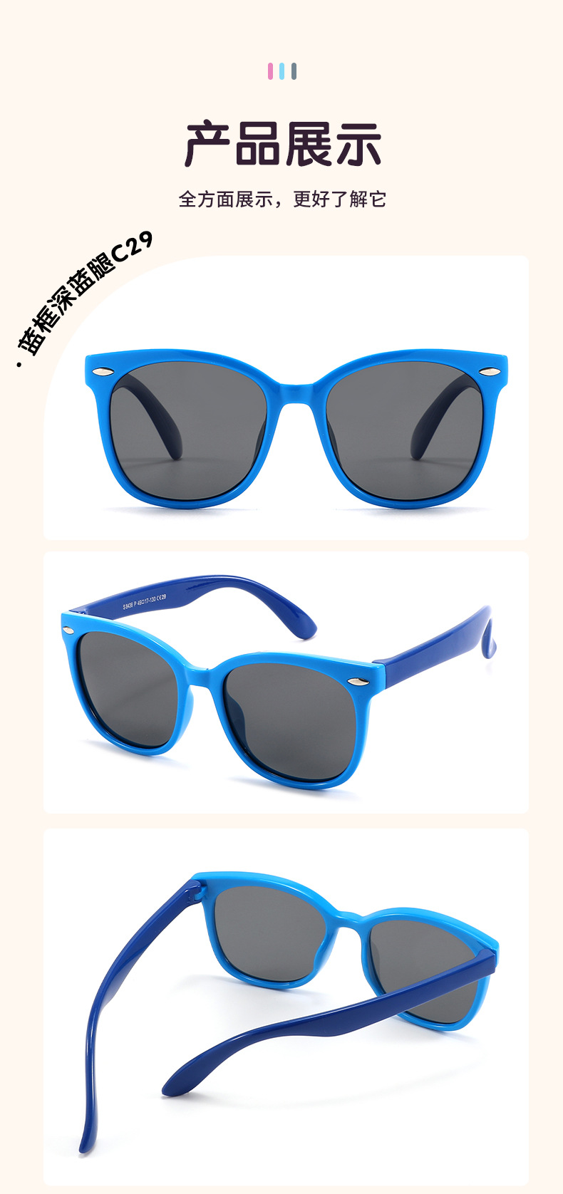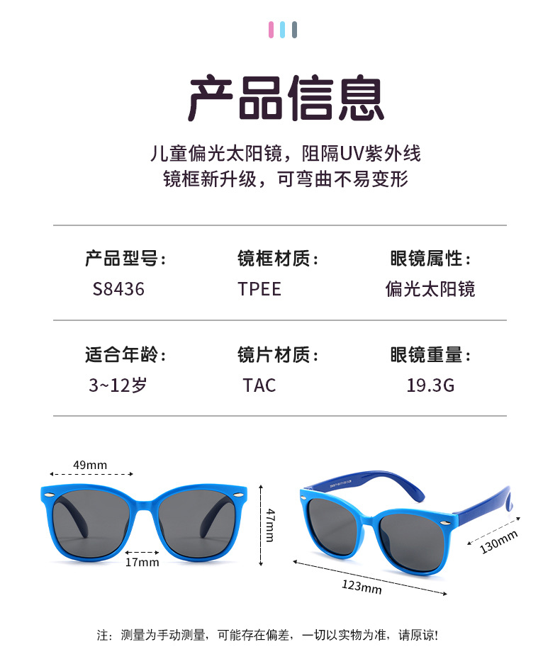 3~12세 어린이용 실리콘 편광 타원형 프레임 패션 트렌드 야외 자외선 방지 선글라스 s8436스토어 가기