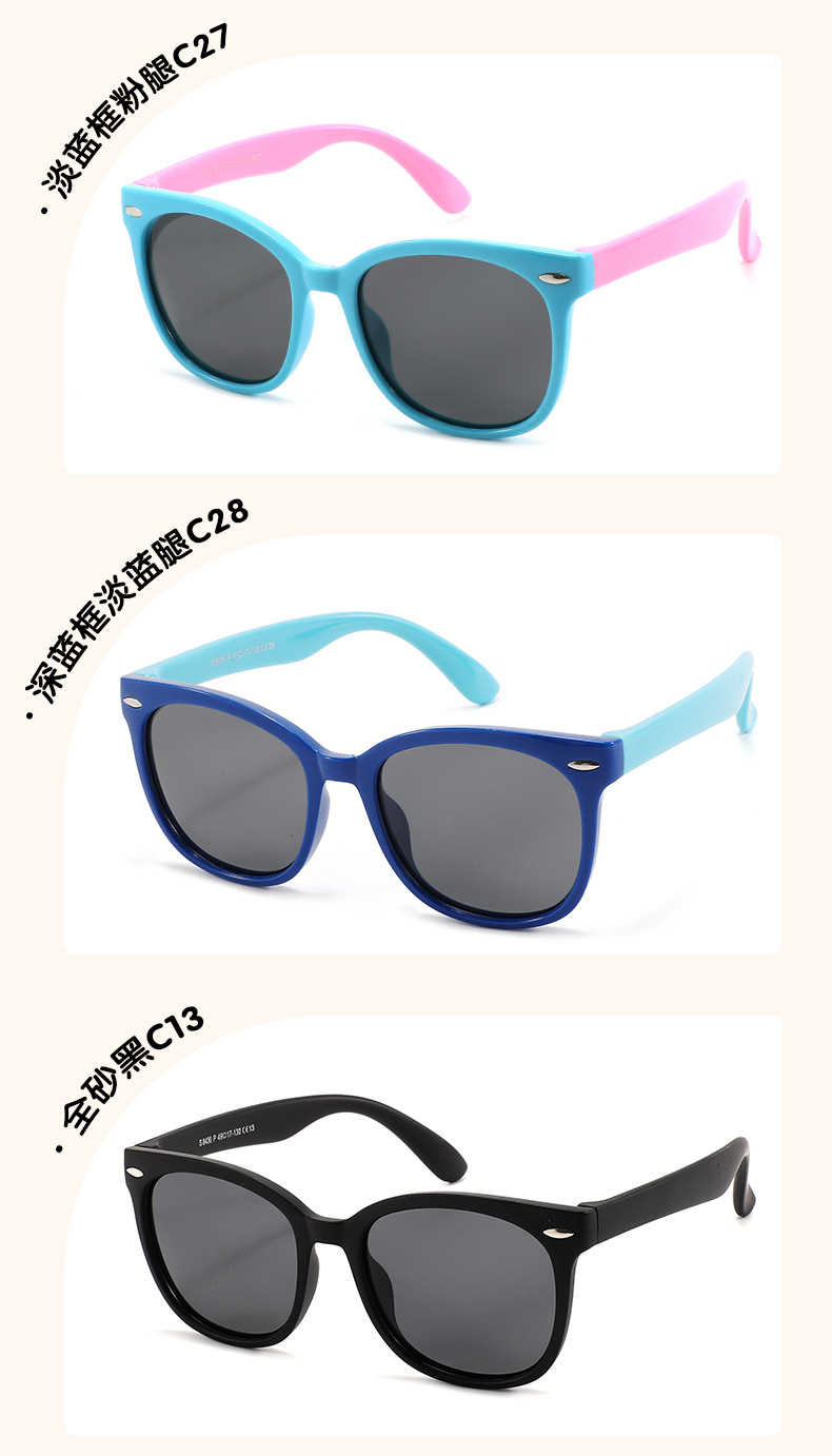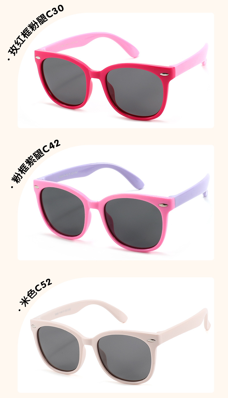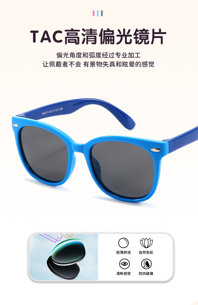 3~12세 어린이용 실리콘 편광 타원형 프레임 패션 트렌드 야외 자외선 방지 선글라스 s8436