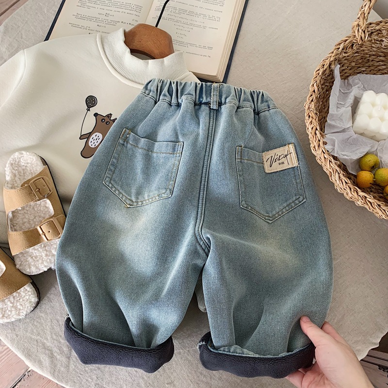 남학생 원피스 벨벳 청바지에 가을과 겨울 2024 새로운 어린이 한국식 느슨한 바지 중소 어린이 부드러운 바지스토어 가기