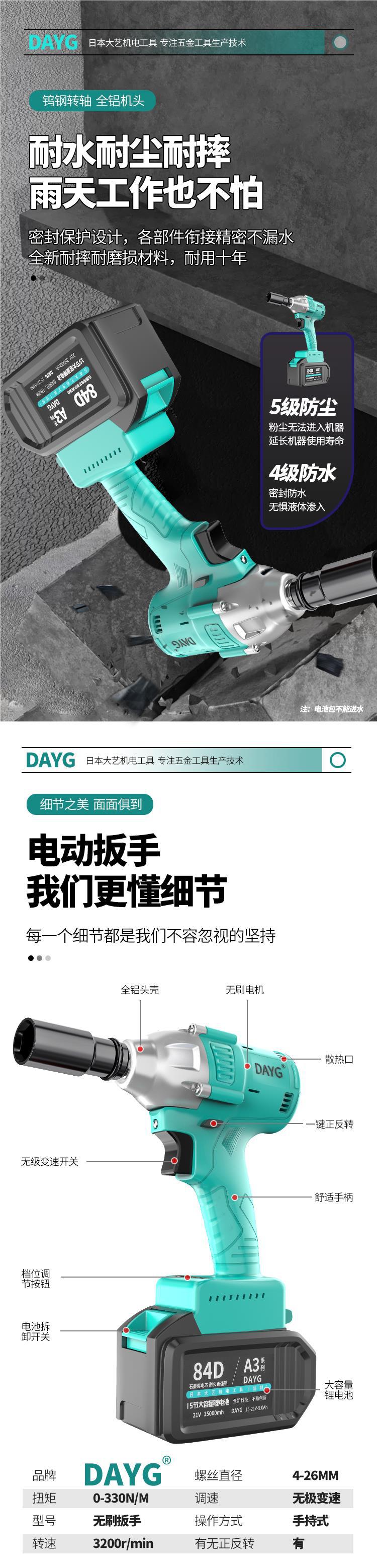 일본 Daoyi 전기 렌치 2106 브러시리스 충격 렌치 비계 목공 자동 수리 공기 대포 렌치 기타