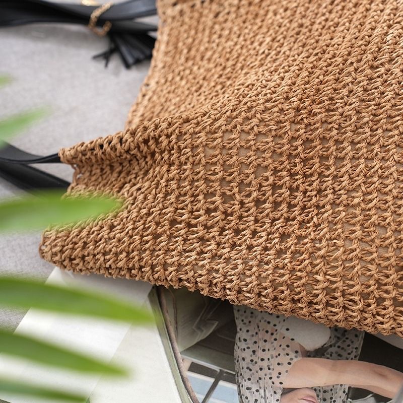 대용량 프랑스 복고풍 밀짚 짠 가방 새로운 술 어깨 손으로 짠 가방 해변 해변 가방
