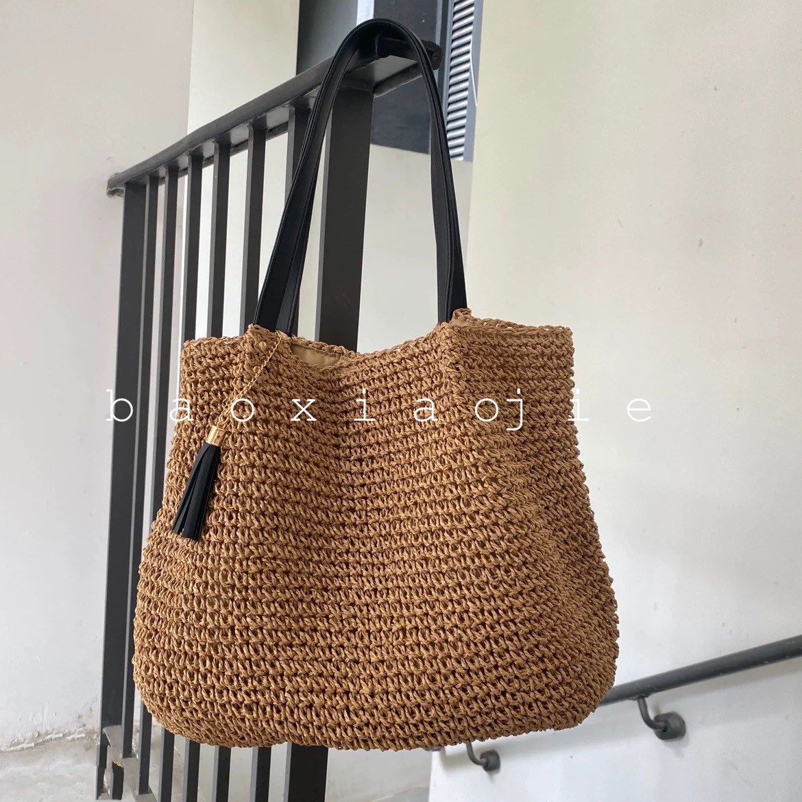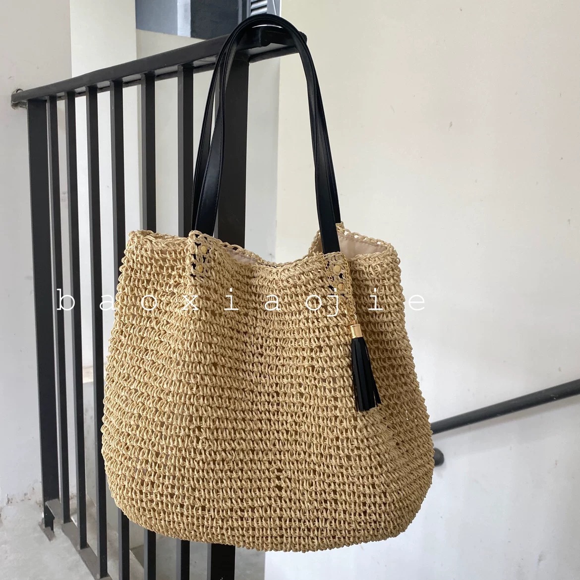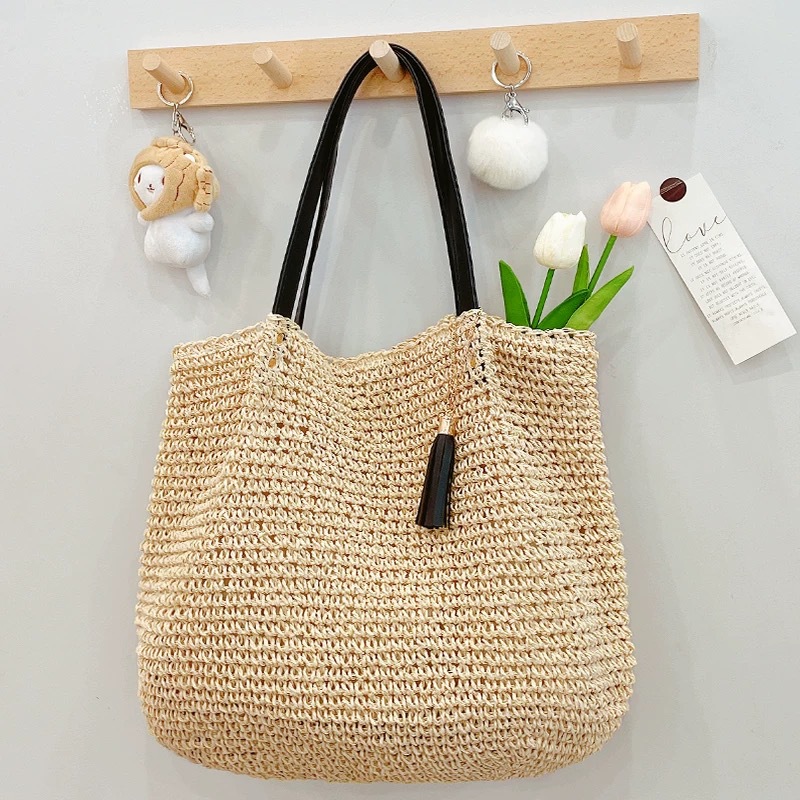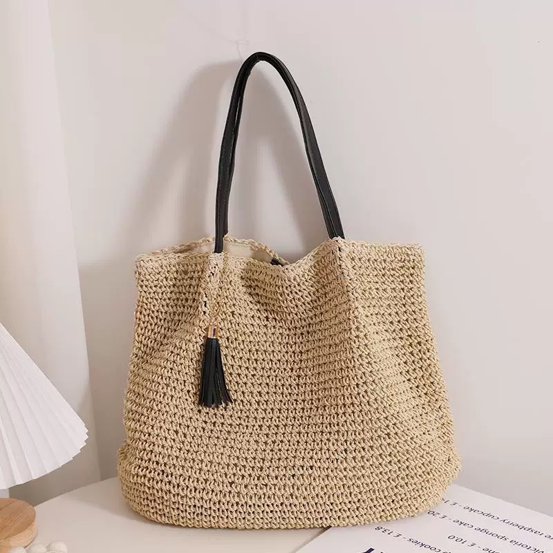 대용량 프랑스 복고풍 밀짚 짠 가방 새로운 술 어깨 손으로 짠 가방 해변 해변 가방스토어 가기